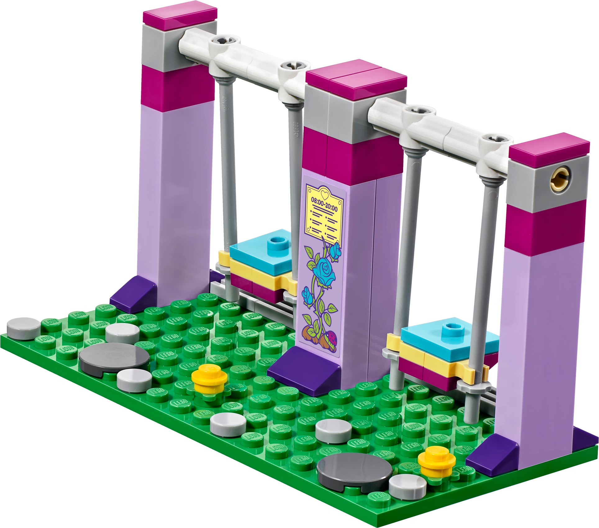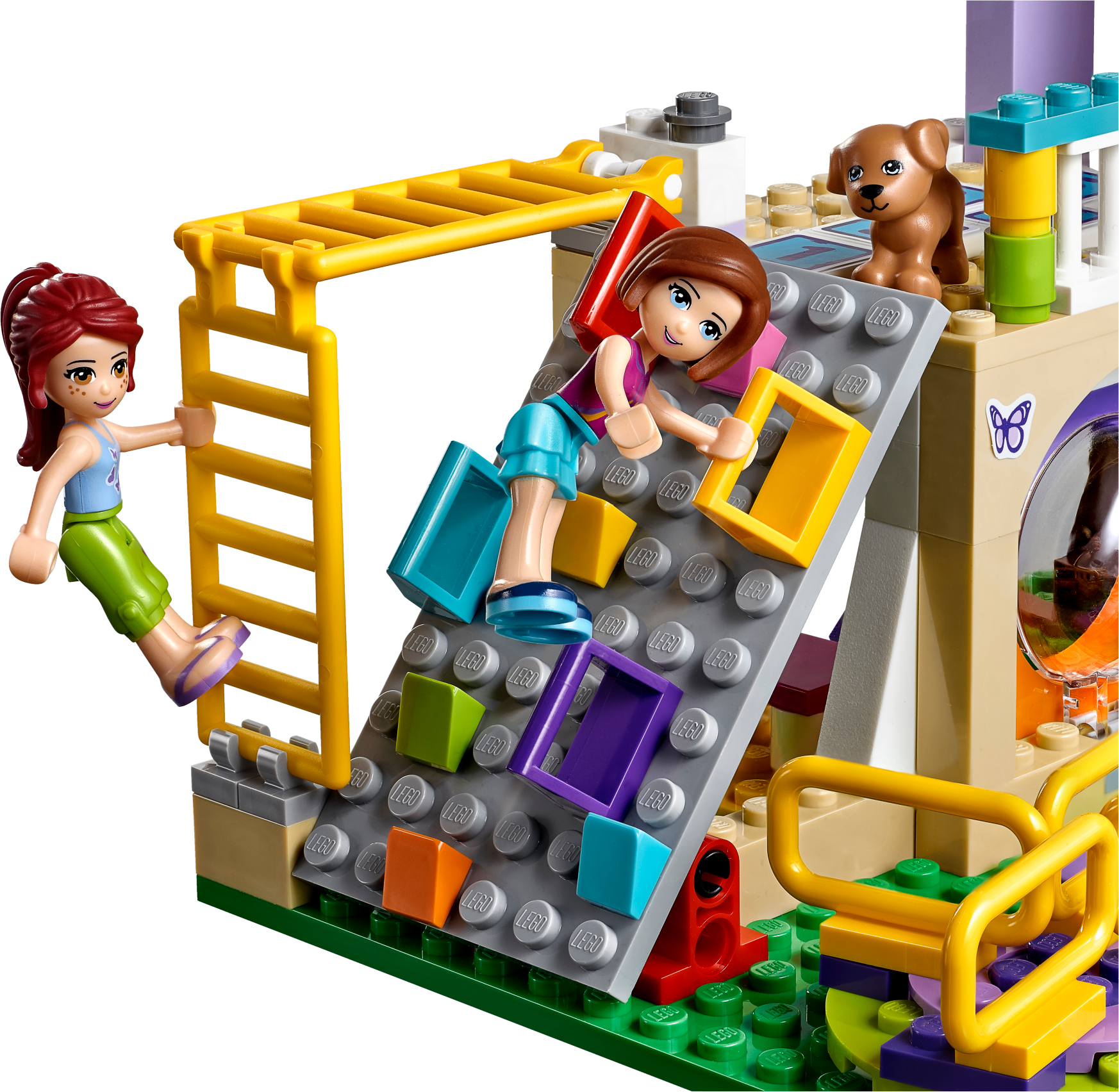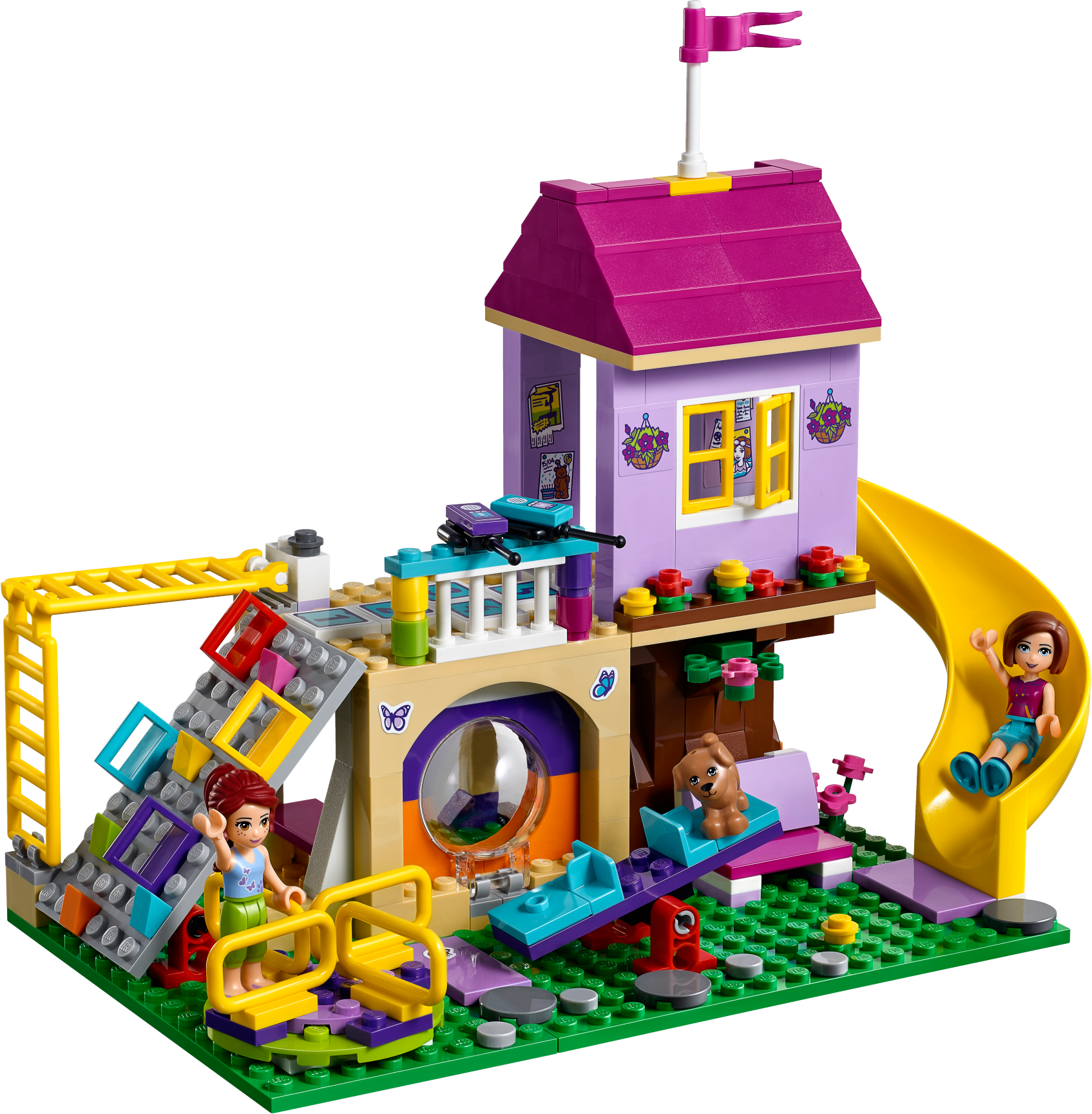 Designed by 9 year old Sienna – winner of the LEGO® Friends Designer contest. Learn more LEGO® Friends Heartlake City Playground is the perfect place to have a blast with your besties. Centered around a tree house, it includes a climbing wall with colored holds and a twister slide. Push the functioning swings to make them go back and forth, spin the merry-go-round and make the 2 mini-doll figures go up and down on the seesaw. Help them take a seat on the benches as they watch Pippa the dog stretch her legs, then use the walkie-talkies to invite more friends to come out and play! Includes Mia and Sienna mini-doll figures, plus a Pippa the dog figure. Features a tree house playground with slide, climbing wall, swings, merry-go-round, seesaw, hopscotch, monkey bars, benches, fountain and an ice cream cart. Accessory elements include 2 walkie-talkies, ice cream, popsicle and a coin. Meet up with friends at the playground and have fun pushing the swings, spinning the merry-go-round and working the seesaw! Climb up the climbing wall to the tree house and enjoy the view from up high. Buy an ice cream from the cart and enjoy it as you relax by the fountain. This set is suitable for ages 6-12. Playground measures over 7” (19cm) high, 9” (23cm) wide and 4” (12cm) deep.