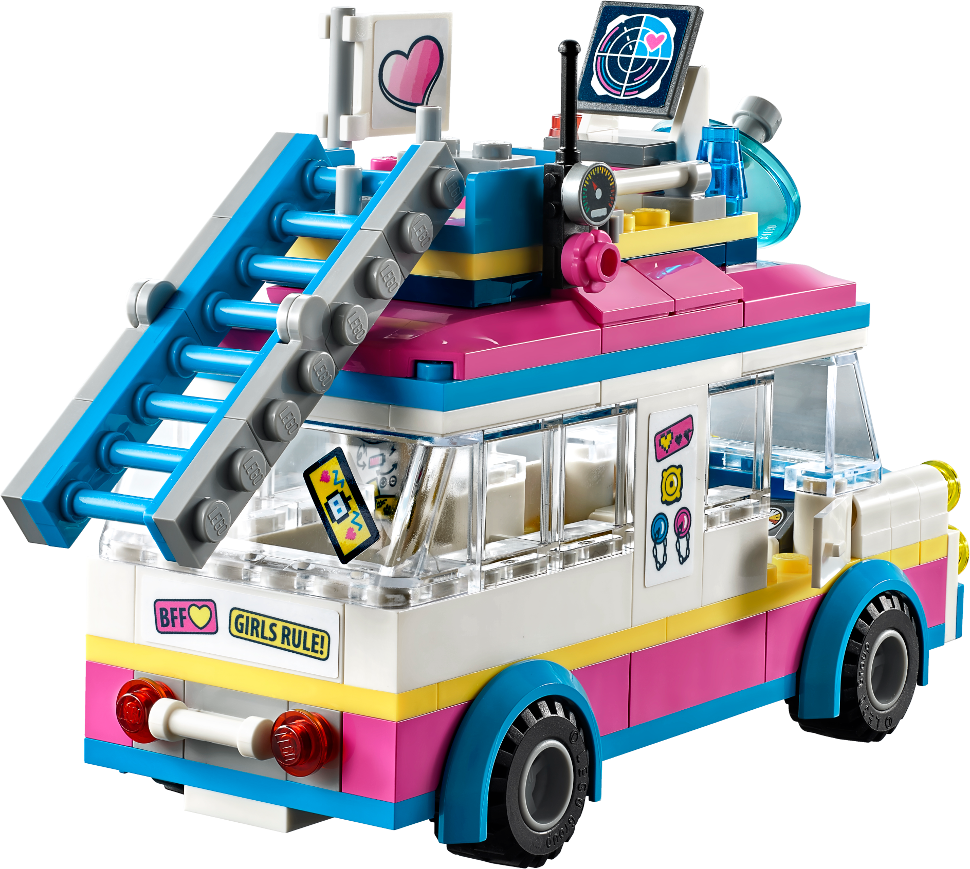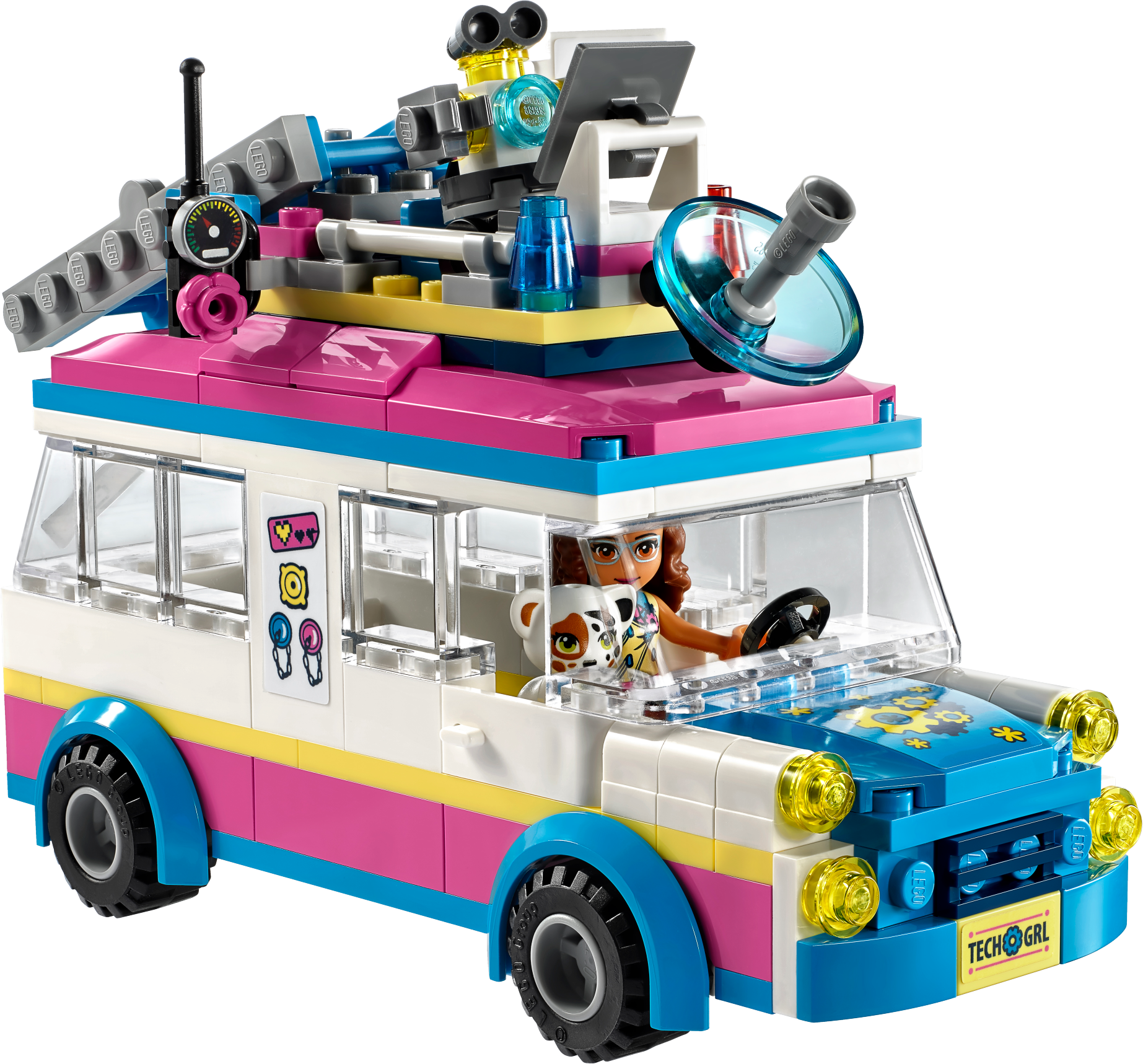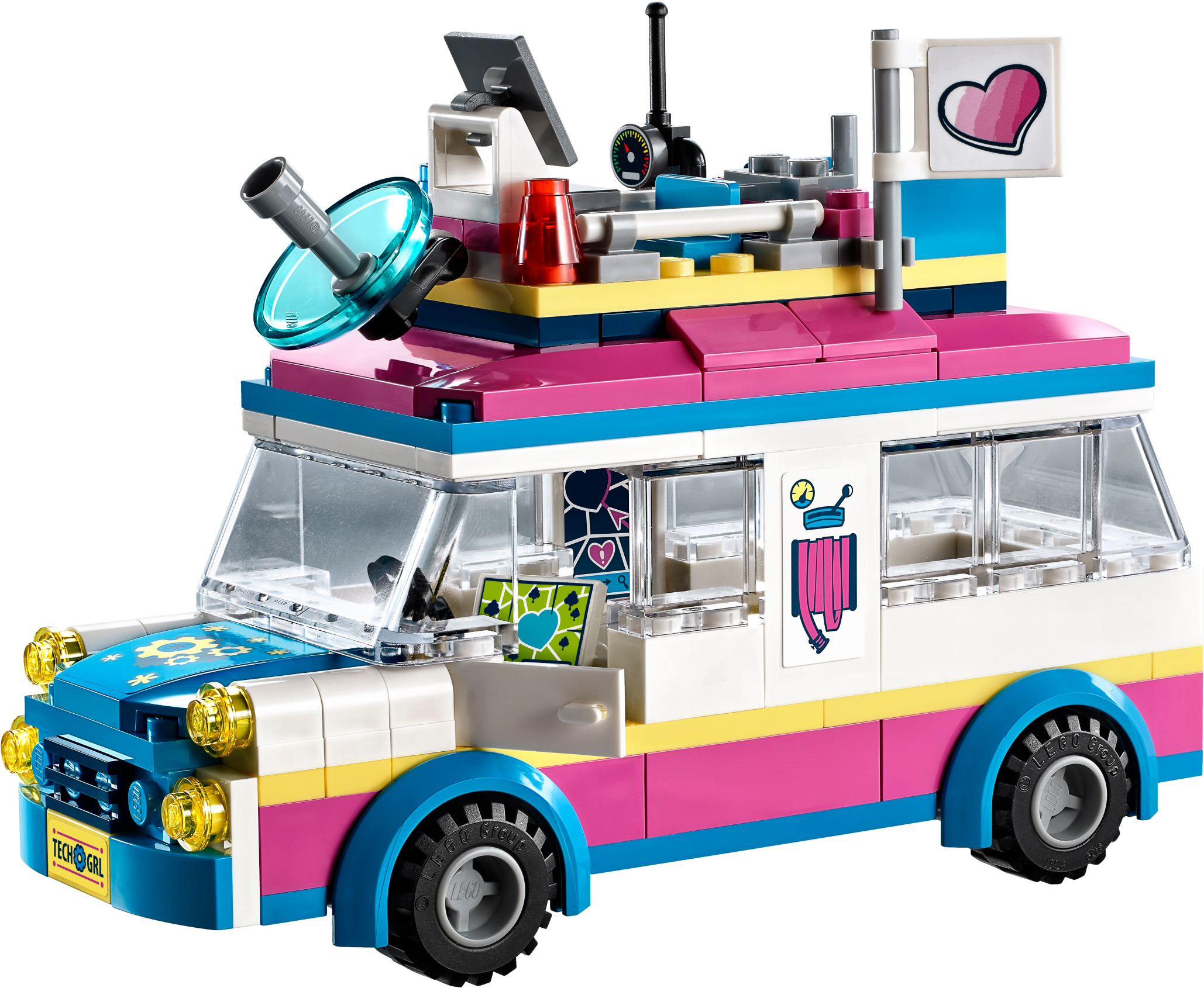 Head to Heartlake City Park in Olivia’s Mission Vehicle—there’s a cat who needs her help! Olivia and her robot Zobo have everything they need to make sure all is well in Heartlake City. Put Zobo in his rooftop control center to monitor the situation, while Olivia sets up the ladder to rescue the little cat from the tree. When he's safe and sound, drive off to find Olivia's friends—there's room for them all inside! Includes an Olivia mini-doll figure, plus a buildable Zobo figure and a Vega the cat figure. Features a truck-style vehicle with rooftop control center, computer, secret compartment and a removable roof with room inside for 5 mini-doll figures, plus a small park scene with a tree. Accessory elements include a Heartlake City Park map, ladder and a cookie. Jump into the mission vehicle with Olivia and Zobo, and rush to anyone who needs their help around Heartlake City. Use the ladder to rescue the little cat from the tree in Heartlake City Park. Help Zobo keep on top of any situation from his rooftop control center. Lift off the control center to discover the secret compartment under the roof of this popular kids’ toy! Suitable for ages 6-12. Olivia's mission vehicle measures over 3” (10cm) high, 5” (13cm) long and 1” (5cm) wide. Park scene measures over 1” (3cm) high, 1” (3cm) wide and 1” (4cm) deep. Combine with 41331 Stephanie's Soccer Practice, 41332 Emma's Art Stand, 41334 Andrea’s Park Performance and 41335 Mia’s Tree House for more fun in Heartlake City Park. Remove Zobo’s control center to park Olivia’s mission vehicle in the garage of the 41340 Friendship House.