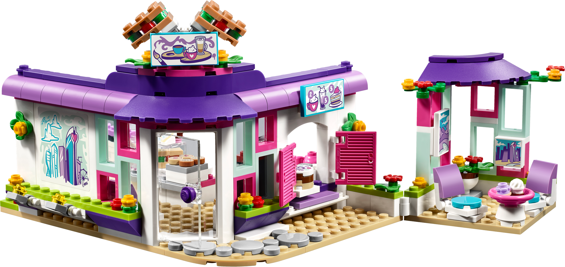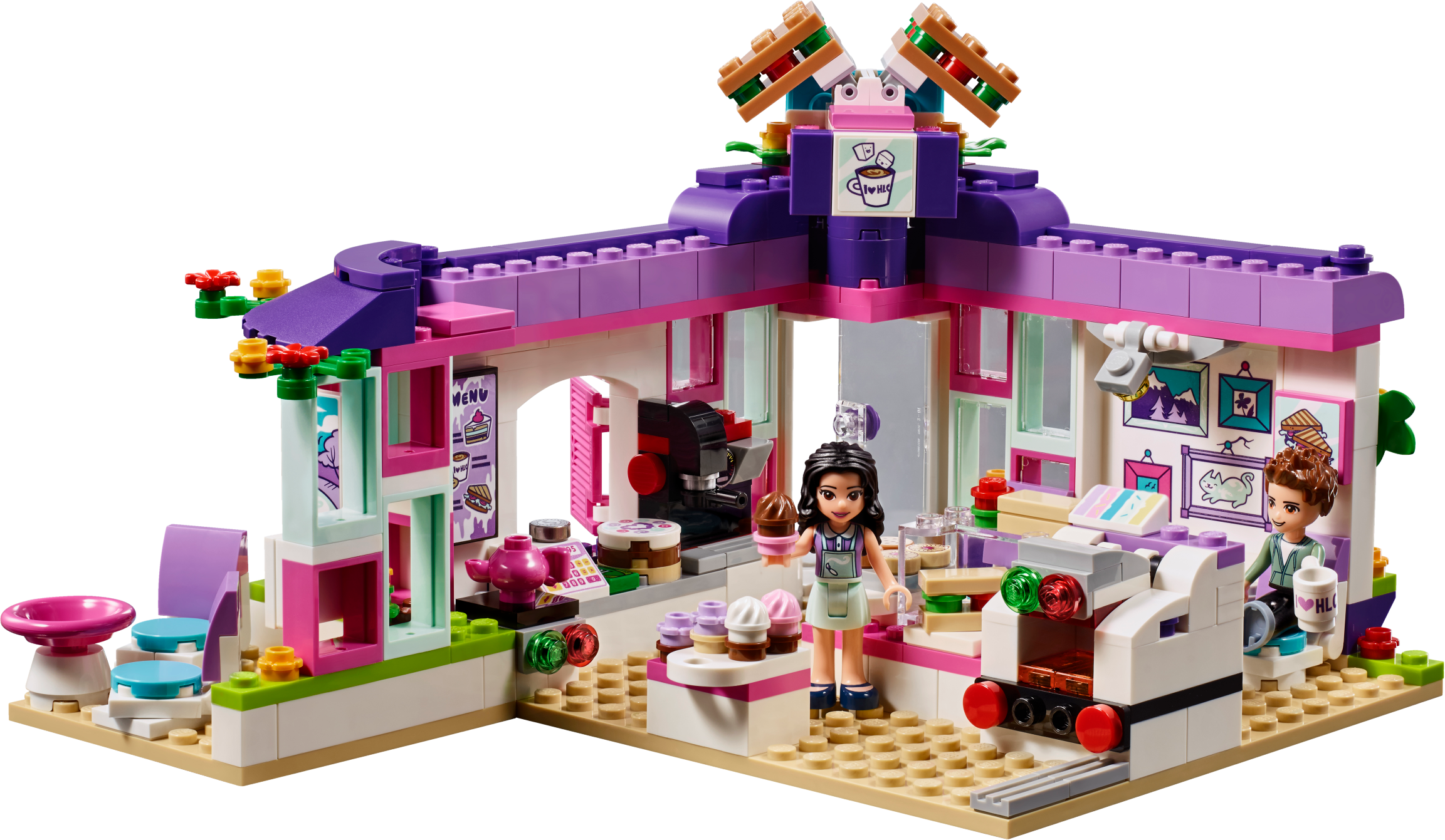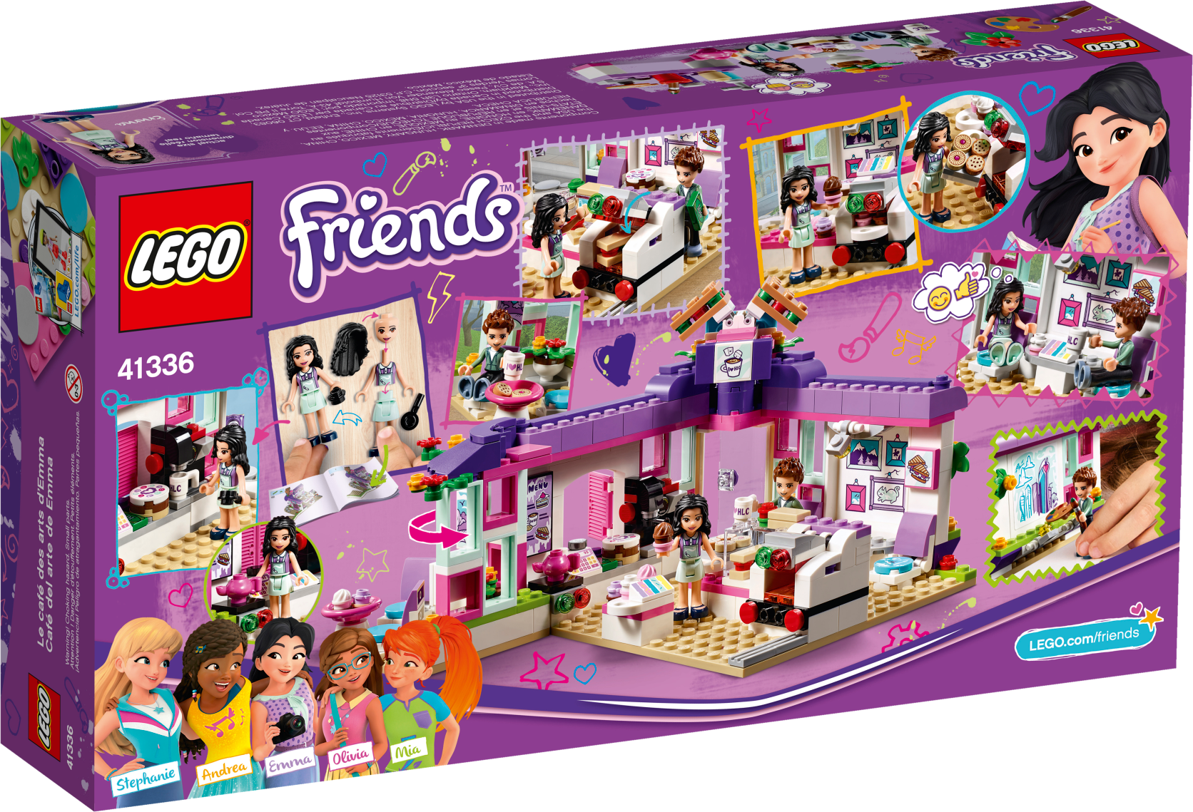 Emma loves stopping by the Art Café for lunch to bring out her creative side and find inspiration for her next piece of work. Help her friend Prankzy complete his graffiti art on the wall outside, and then head inside to toast a delicious panini in the machine. Grab a cup of coffee and some cake, pay at the cash register and then eat inside or in the alfresco art corner. Includes Emma and Prankzy mini-doll figures. Features a café with hinged art area, panini machine, coffee machine, cash register, seating area, opening shutters, artwork, price list and a bench outside. Accessory elements include paint bottles, spray paint bottle, palette, paintbrush, cake, cupcakes, paninis, ‘I love Heartlake City' mug, bill and a coin. Head to the Art Café and see Prankzy's graffiti masterpiece on the wall outside. Toast a panini in the machine and check the price list before paying at the cash register with this fun toy. Enjoy coffee and cake with Emma as she thinks about new ideas for her latest art project. Suitable for ages 6-12. Art Café measures over 6” (16cm) high, 7” (19cm) wide and 7” (19cm) deep.