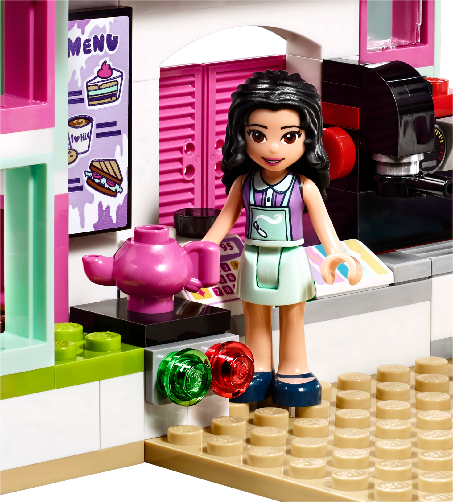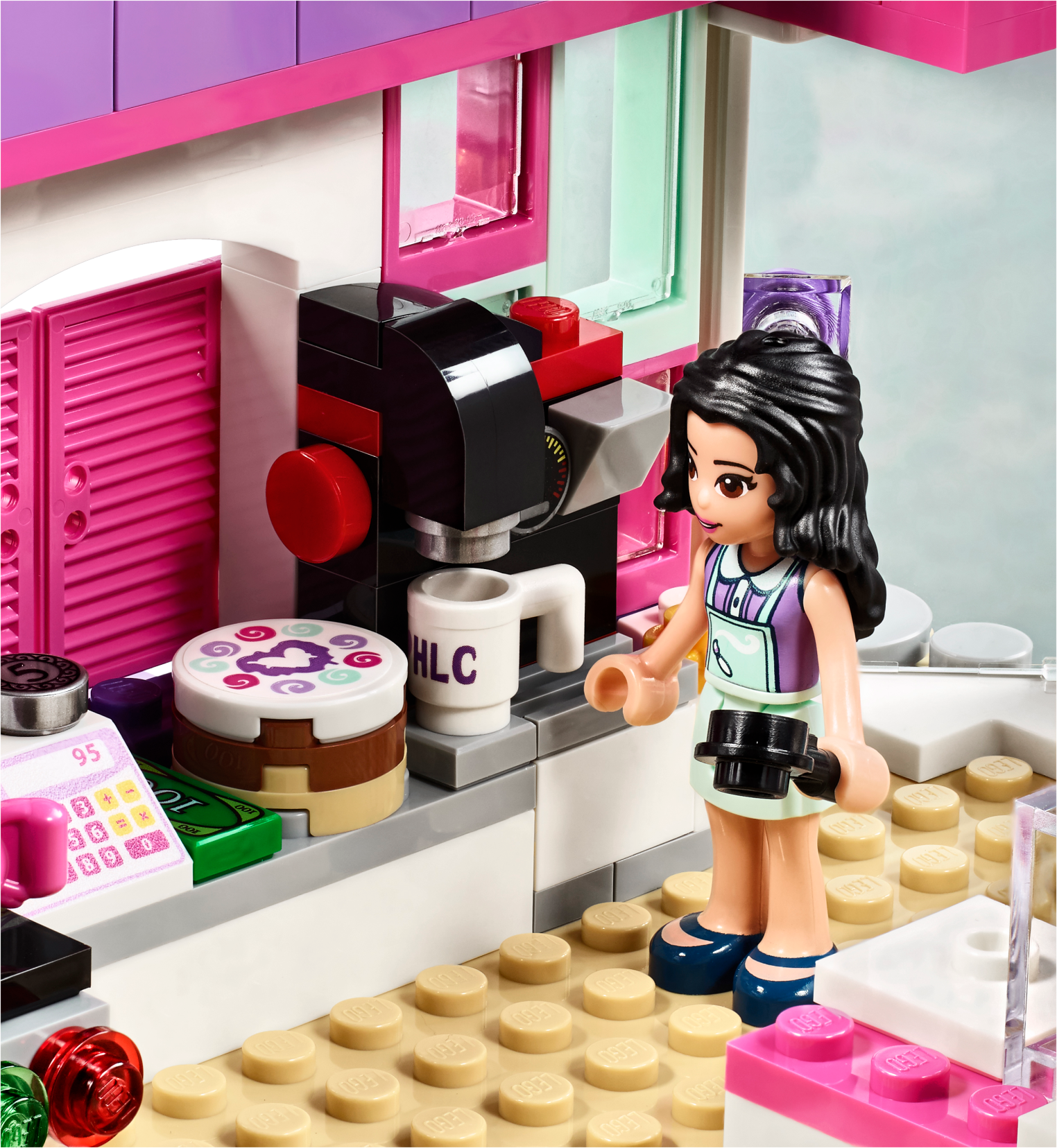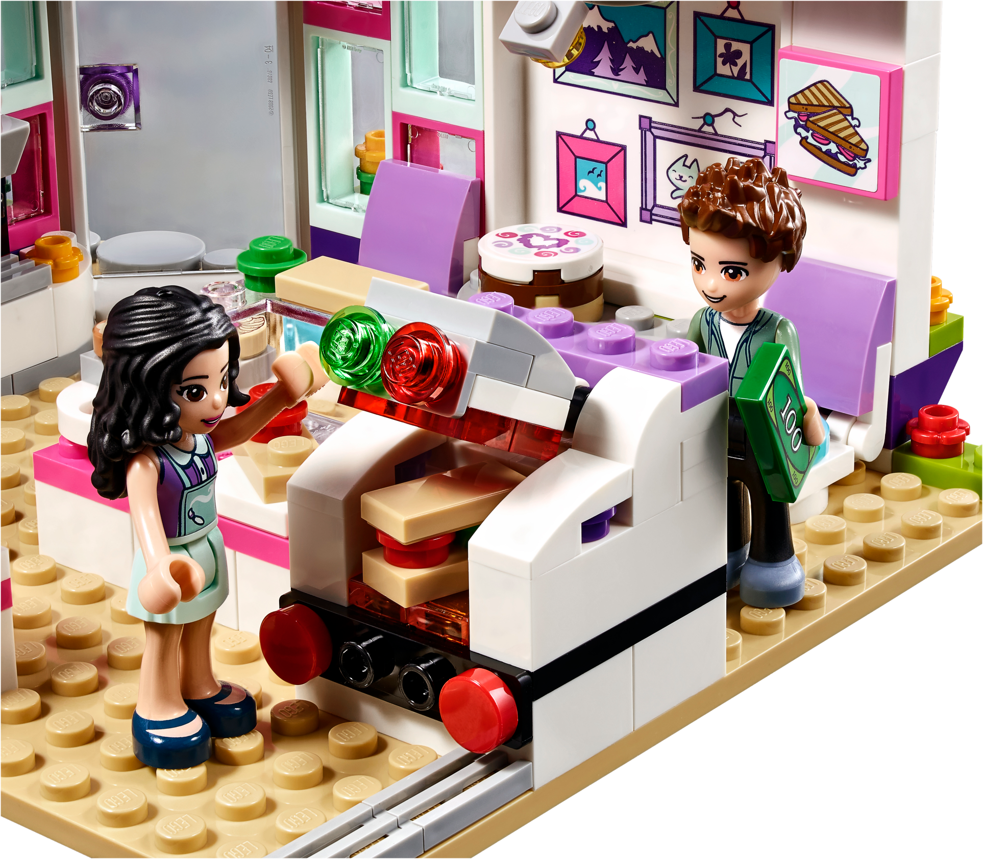 Emma loves stopping by the Art Café for lunch to bring out her creative side and find inspiration for her next piece of work. Help her friend Prankzy complete his graffiti art on the wall outside, and then head inside to toast a delicious panini in the machine. Grab a cup of coffee and some cake, pay at the cash register and then eat inside or in the alfresco art corner. Includes Emma and Prankzy mini-doll figures. Features a café with hinged art area, panini machine, coffee machine, cash register, seating area, opening shutters, artwork, price list and a bench outside. Accessory elements include paint bottles, spray paint bottle, palette, paintbrush, cake, cupcakes, paninis, ‘I love Heartlake City' mug, bill and a coin. Head to the Art Café and see Prankzy's graffiti masterpiece on the wall outside. Toast a panini in the machine and check the price list before paying at the cash register with this fun toy. Enjoy coffee and cake with Emma as she thinks about new ideas for her latest art project. Suitable for ages 6-12. Art Café measures over 6” (16cm) high, 7” (19cm) wide and 7” (19cm) deep.