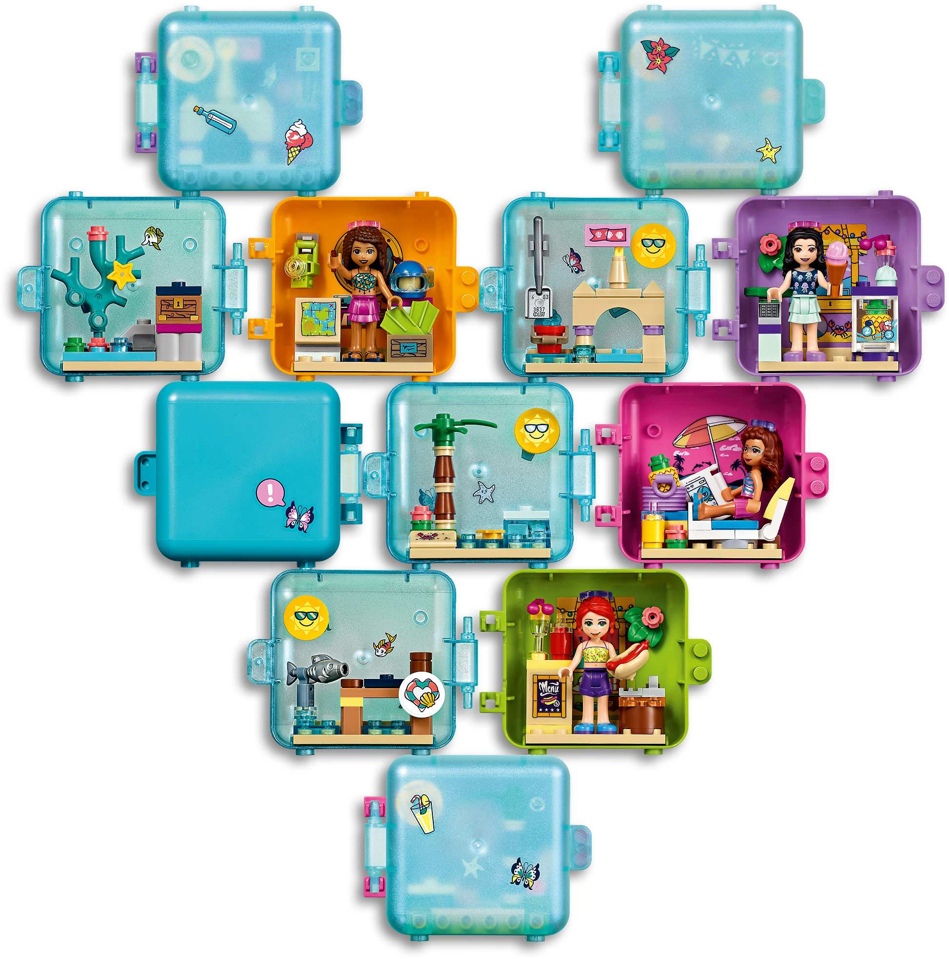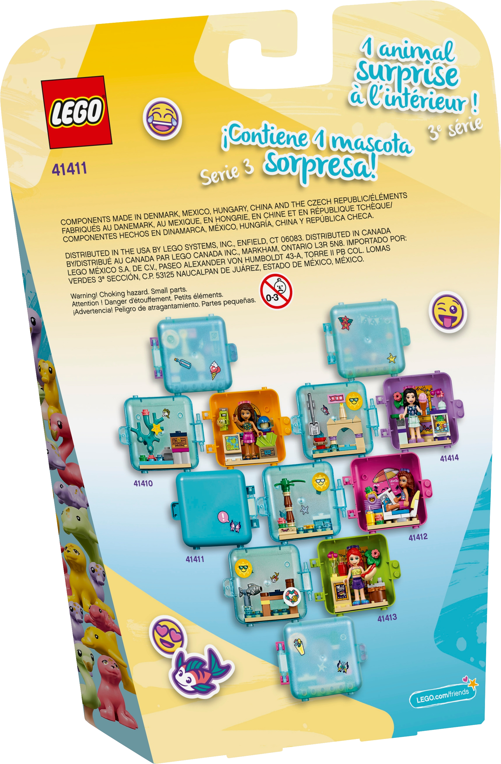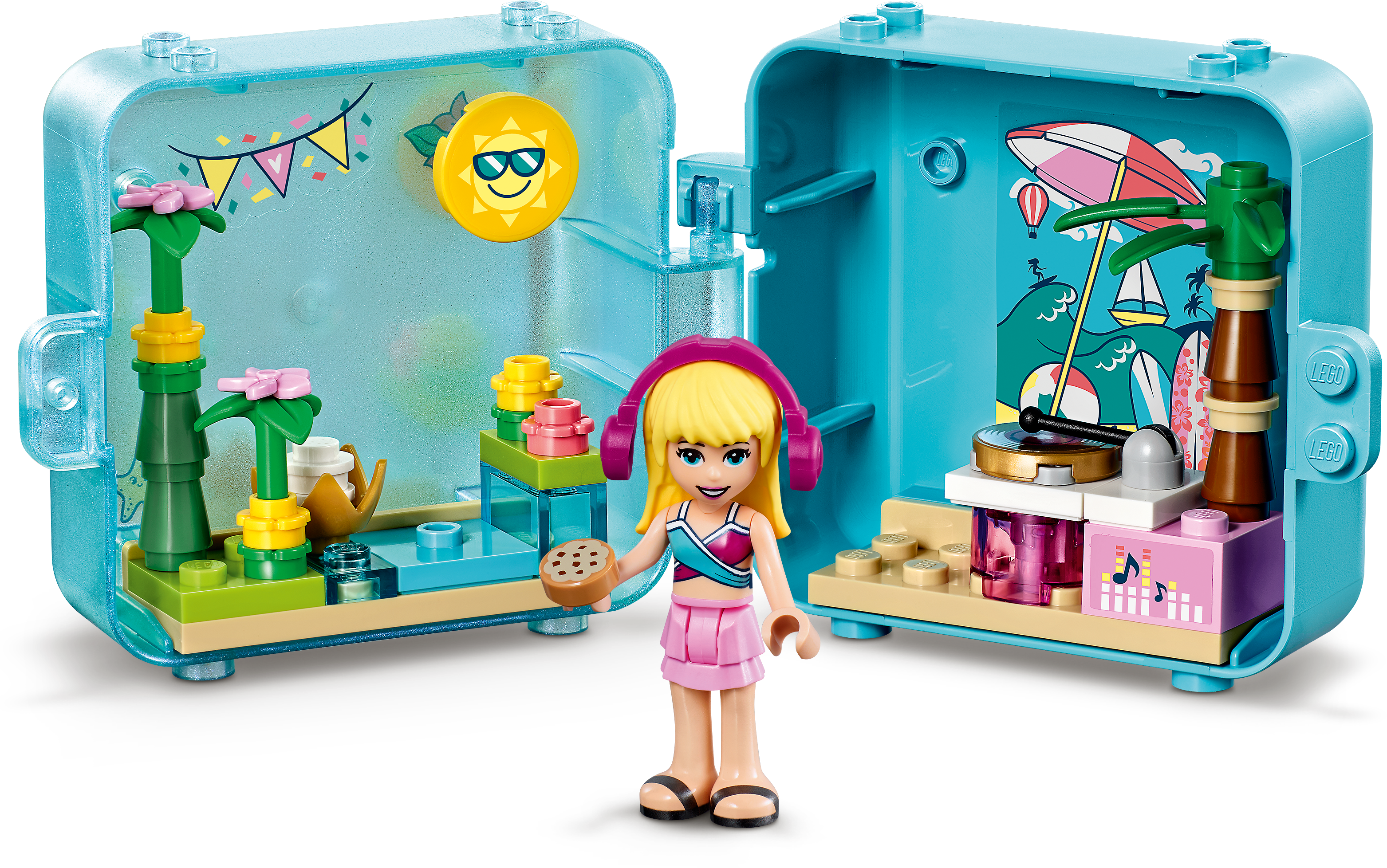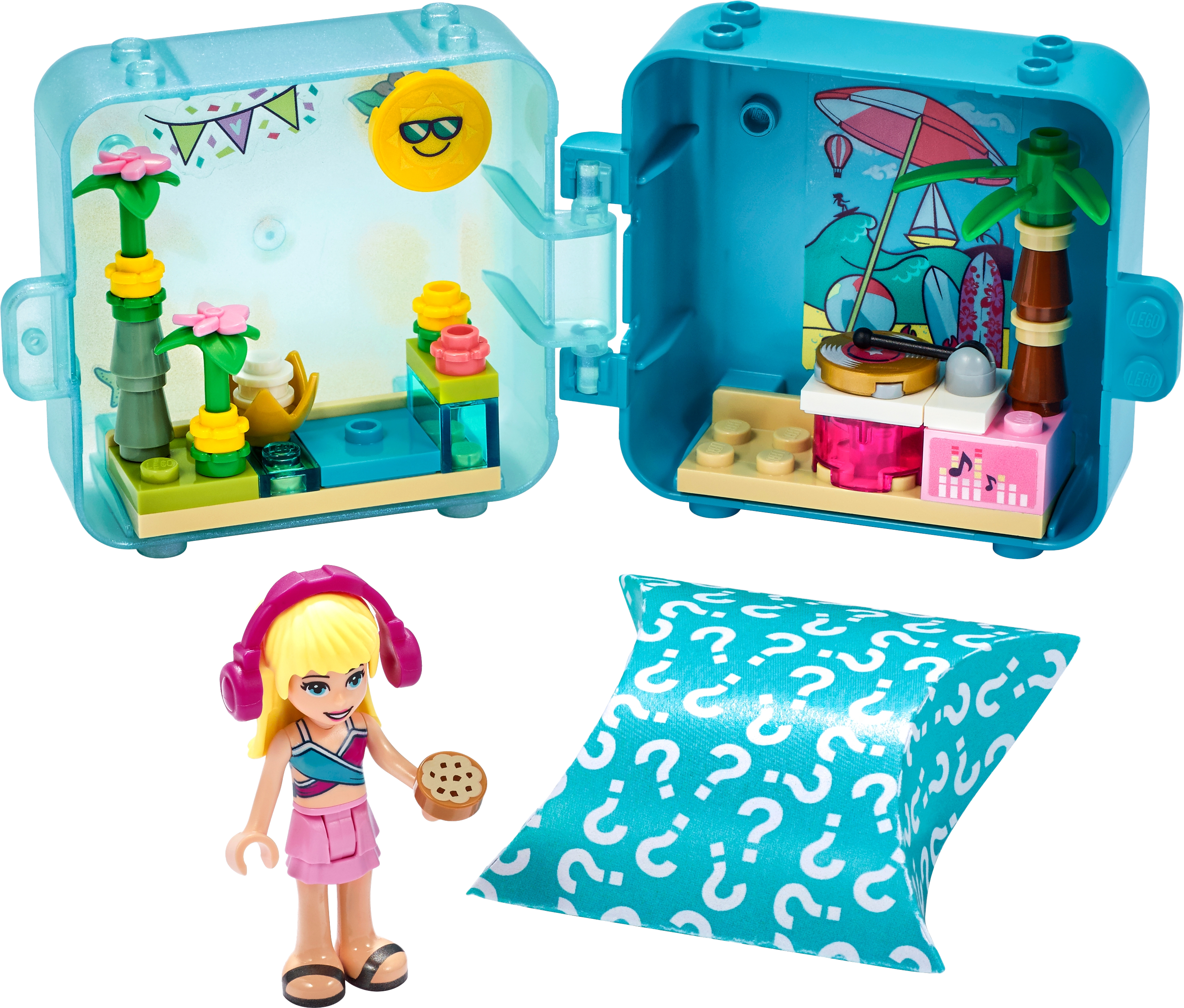 Looking for a great new toy for a little performer? Look no further Stephanie s Summer Play Cube (41411) is the ideal gift for creative kids who like to take their show on tour. Let children loose in a world of vacation role play with this LEGO Friends cube, as they imagine being a DJ spinning chilled summer tunes. Box of delights: Each LEGO Friends Summer Play Cube portable toy contains a mystery animal toy in a random color. Kids will love collecting them and watching their menagerie ofcute creatures grow! The buildable LEGO Friends beach scene elements are removable so youngsters can play with them outside of the box. They attach to the cube s base, so no more missing pieces when kids are on the move! The 2 sides also split to share fun with a friend. A taste of something moreCubes give a flavor of the LEGO Friends world. There are 5 to collect and they stack and connect to form cool displays. Introduce kids to Heartlake City a place where they can hang out with fabulous friends! Brighten up long journeys with LEGO® Friends Stephanie playset. This summer toy will transport imaginations to the beach. Small in size, it’s the perfect creative toy for instant entertainment on the go. Inside LEGO® Friends Stephanie’s Summer Play Cube is a mini-doll, a mystery animal and a pretend record player to spark imaginative play. It also comes with a sticker sheet so kids can customize the cube. The beach kit is removable so kids can enjoy creative play outside of the cube, orpack it up for fun on the go. Each one stacks and connects with other LEGO® Friends cubes, or kids can split them to share with a friend. This 47-piece, quick-to-build summer toy makes the perfect impulse reward or birthday gift for kids aged 6 years old and up, or creative kids who are new to LEGO® brick building. The cube measures just over 3” (8cm) wide and 2” (6cm) high, making it a neat, fun toy to take on a playdate and share the flexible fun with friends. These collectible toys arealso great for brightening long journeys. This LEGO® Friends Stephanie set doesn’t need batteries to make the creative play come alive. It splits, stacks and connects with other cubes, and each one hides a mystery animal. They’re buzzing with possibilities! Thinking of buying this vacation playset for someone new to LEGO® toys? No problem – it comes with easy-to-follow, step-by-step building instructions. Open the box and away they go! Introduce kids to LEGO® Friends toys to stretch their imaginations. Heartlake City is a place of exciting imaginative play and everyday heroes. Kids will find characters that are ‘just like them’ and everyone is welcome! LEGO® building bricks and kids’ toys meet the highest industry standards, plus the LEGO Group's own rigorous quality criteria. Kids will find the bricks connect strongly and pull apart easily every time. The LEGO Group has tested the bricks, pieces and toy mini-doll in this LEGO® Friends set in every way imaginable to guarantee it meets the highest global safety and quality standards.