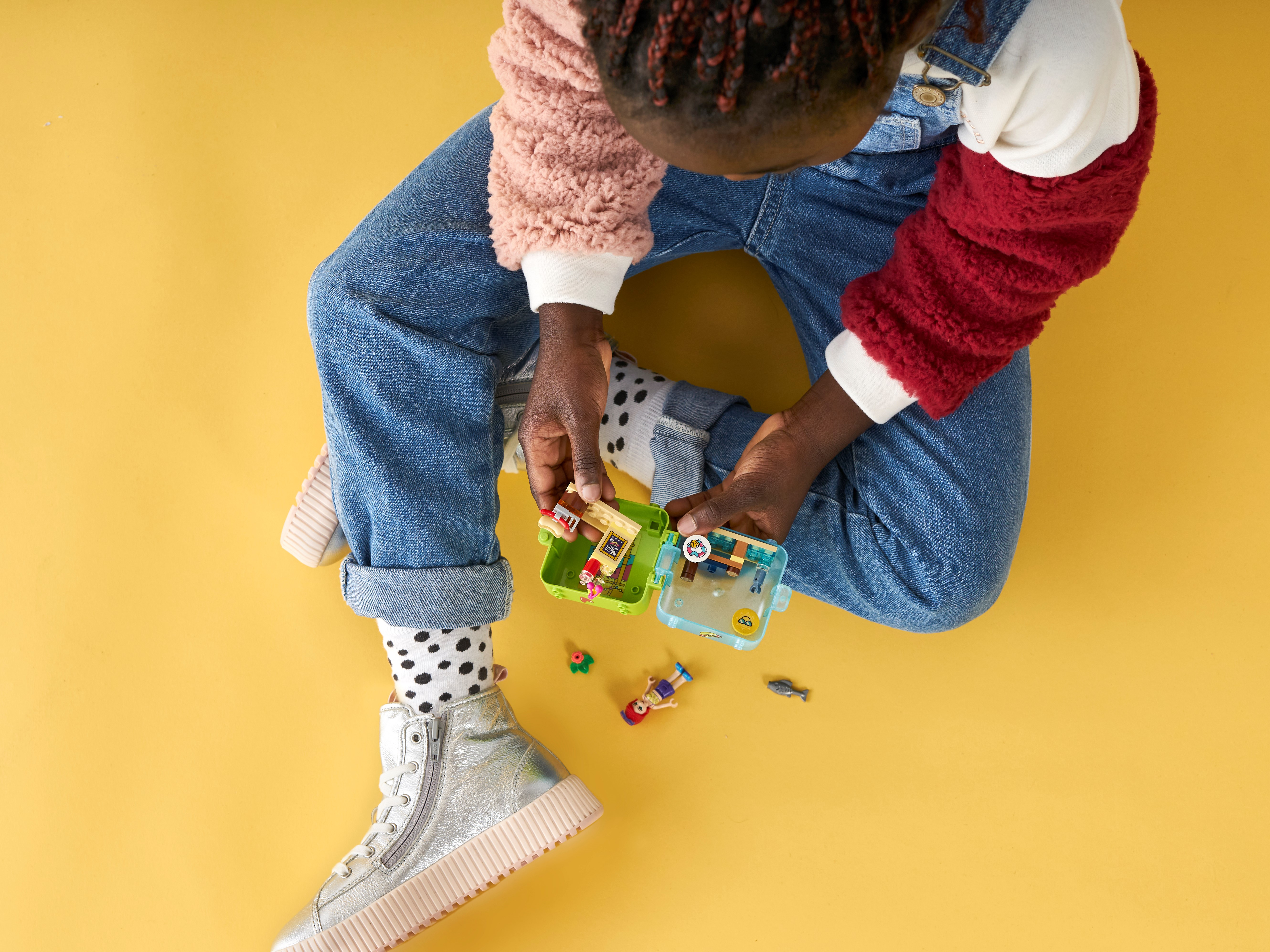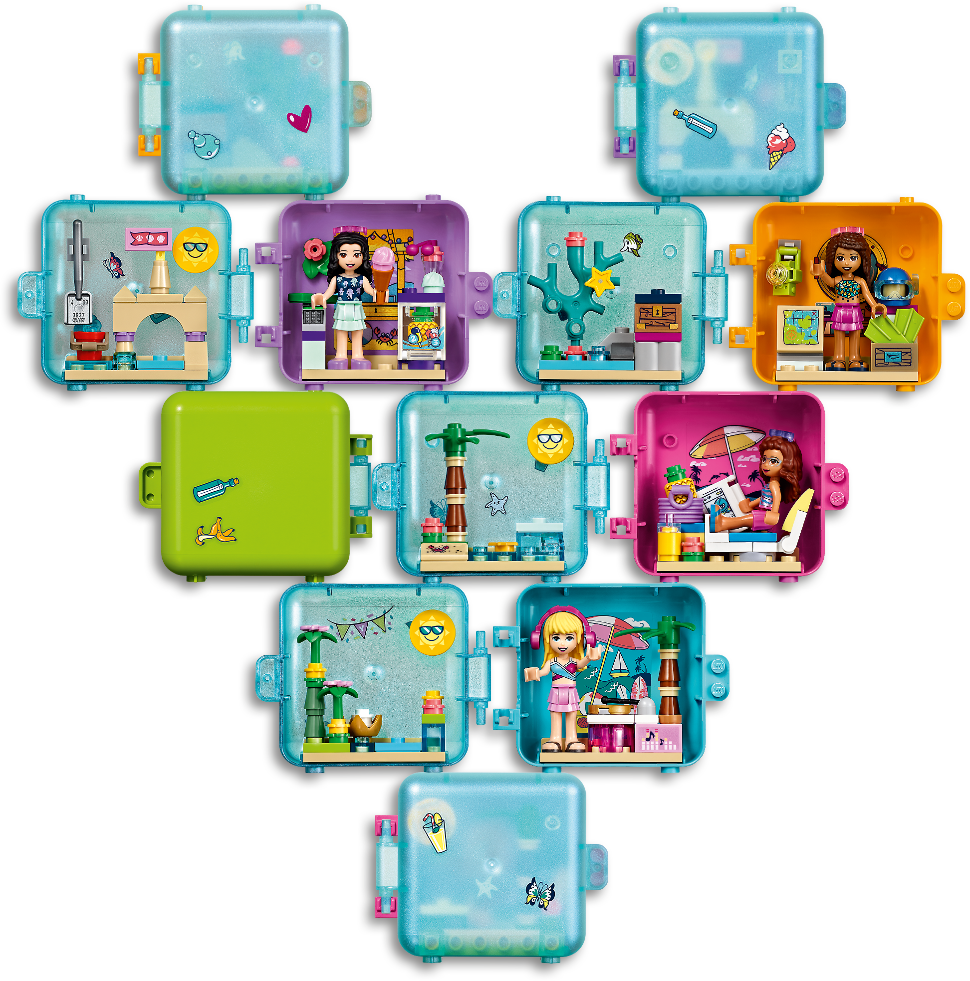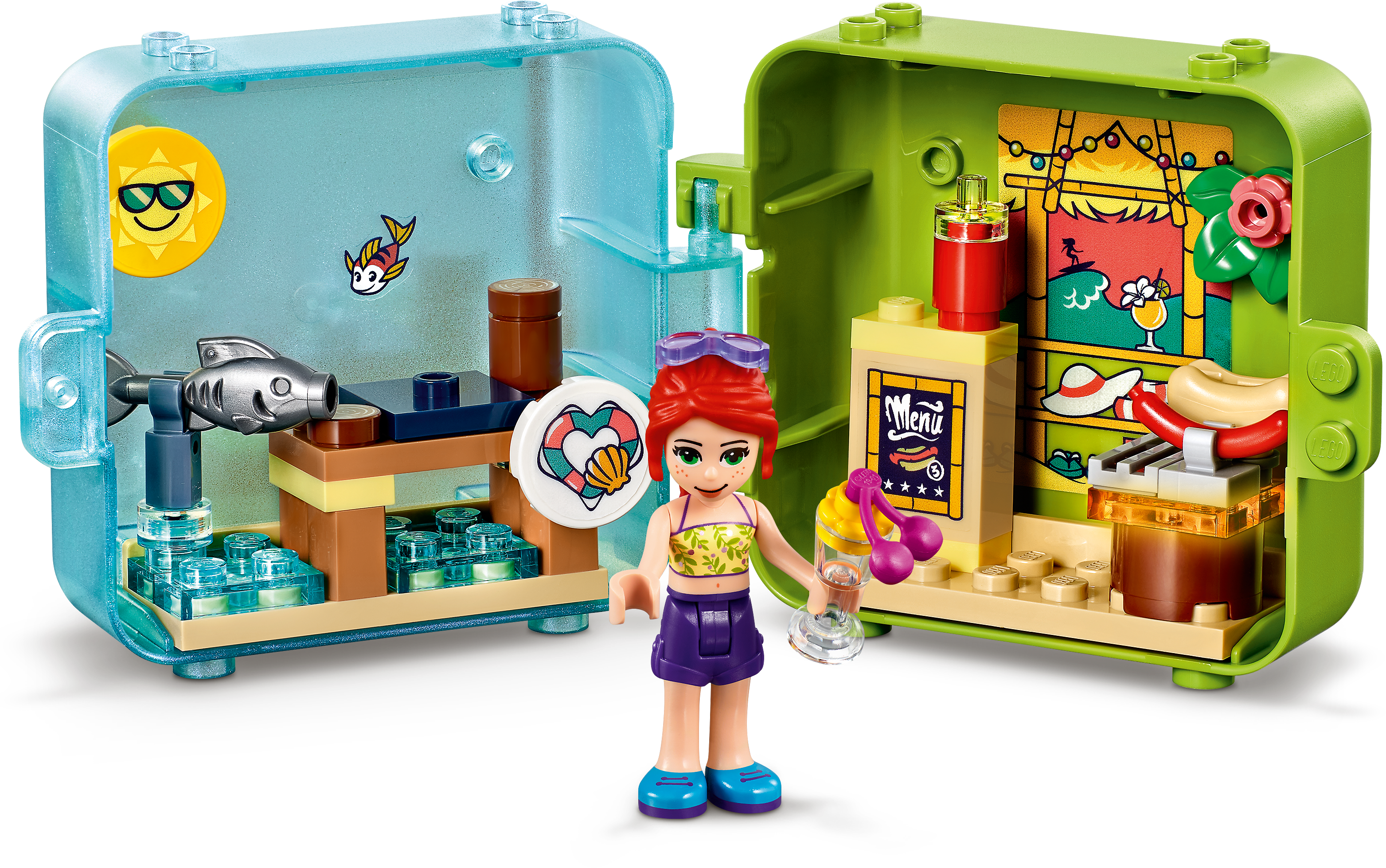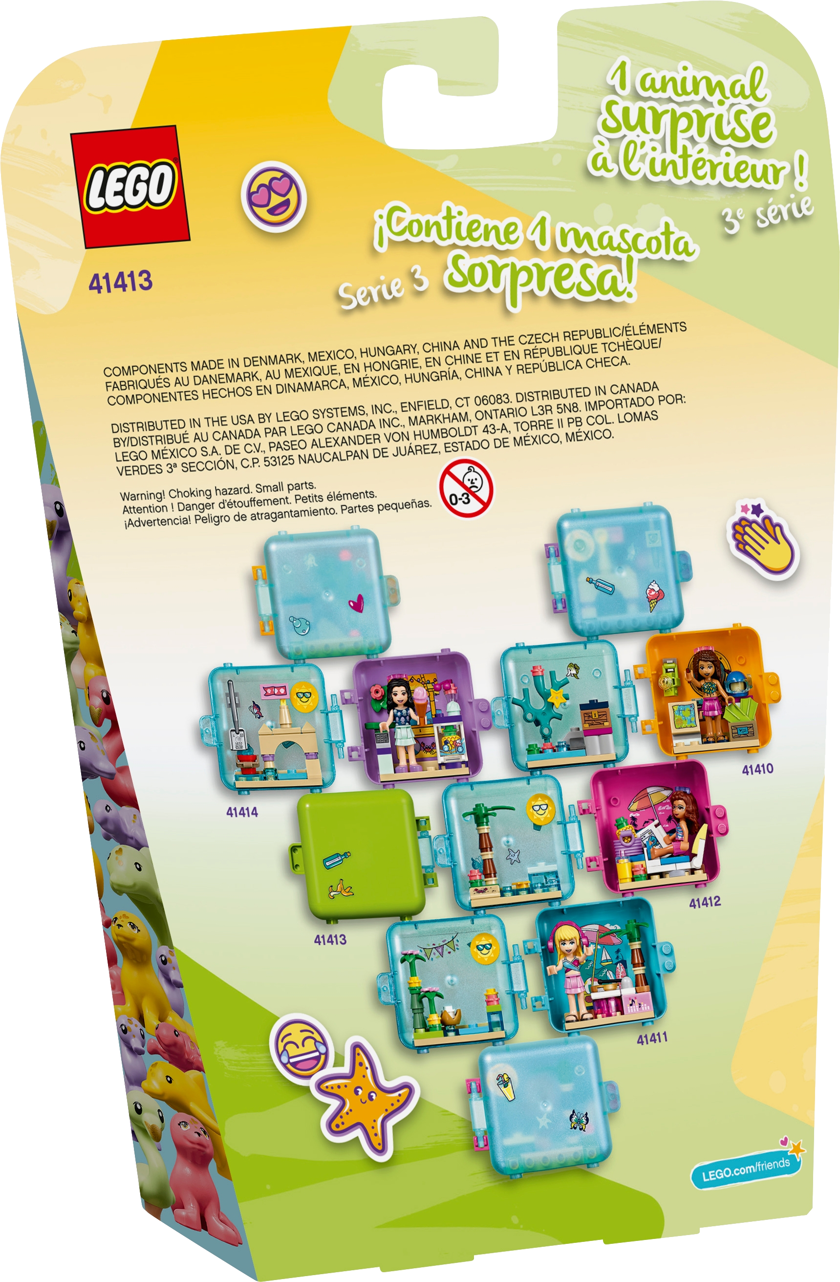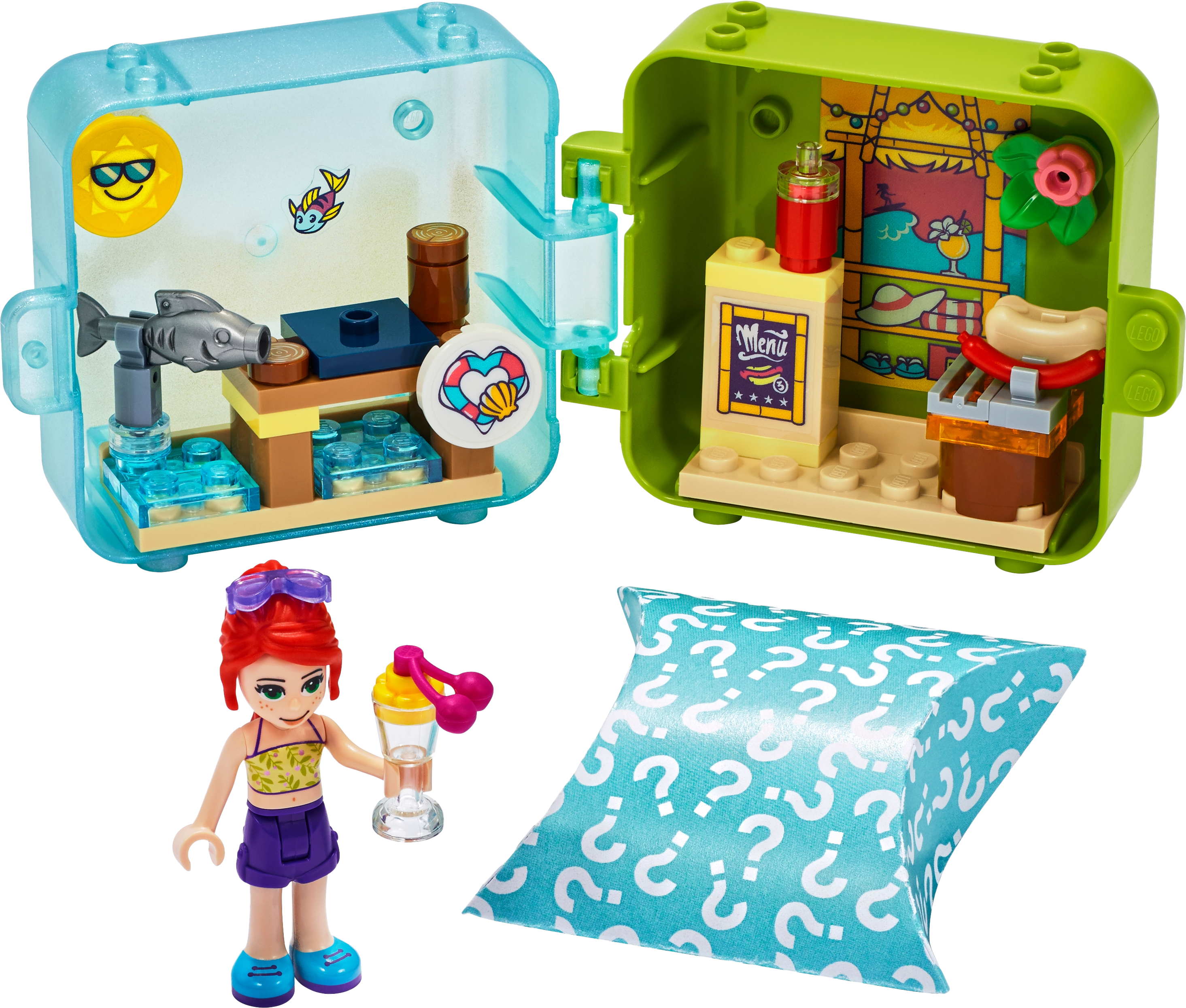 Entertain bored youngsters on summer-vacation travels with LEGO Friends Mia s Summer Play Cube (41413). Tucked inside the opalescent carry case is a mini beach scene complete with hot-dog stand. It s a great holiday gift for youngsters who love food play and compact toys. Box of delights: All the elements included in this summer toy are removable so kids can enjoy boundless imaginative play. These pieces also attach to the cube's base for fuss-free fun on the move and no more missing bricks! It also splits so kids can share the mini play cube fun with a friend. A taste of something moreIf kids love this stackable toy there are more LEGO Friends play cubes to collect. Each has a mystery animal in a random color watch kids delight as they discover which cute creature is hiding inside! The mini-doll toy also connects to the other cubes to create cool shapes. Introduce children to the world of Heartlake City, where they'll find a warm welcome and special friends who are just like them. Looking for a cool summer toy? Let kids join Mia at her hot-dog stand on the pier with Mia’s Summer Play Cube (41413). They’ll enjoy lots of vacation play as they pretend to serve snacks and play with a surprise sea creature. Inside this mini-doll toy are a mystery animal and all the bricks needed to make a cute little hot-dog stand. The cube also comes with a sticker sheet so creative kids can decorate it exactly as they like. Kids can remove the beach elements from the mini play cube or pack them up for fun on the go. The cube splits so fun can be shared with a friend – it even stacks and connects with the other cubes for fun displays. Makes a great impulse reward or holiday gift for kids aged 6 years old and up. This 50-piece collectible mini-doll toy is the perfect travel toy, and its easy build means it will appeal to those new to LEGO® construction. The cube measures just over 3” (8cm) wide and 2” (6cm) so will pop easily into a backpack or handbag for play on the go. This stackable toy connects with the 4 other Summer Play Cubes for limitless vacation play! This portable playset needs no batteries to make the imaginative play come alive because who needs the hassle of remembering batteries when you’re packing for a trip? As with all LEGO® Friends cubes, this vacation playset comes with clear printed instructions. They are designed for kids aged 6+ to follow with ease, so they can get on and build independently. Introduce children to the girls from Heartlake City. It’s a place of exciting imaginative play and fabulous friendships, where kids can explore their interests and achieve anything if they follow their hearts. LEGO® Friends sets meet the highest industry standards, plus the LEGO Group’s own quality criteria. Kids building this portable LEGO toy will find the bricks connect strongly and pull apart easily every time. The LEGO Group exhaustively tests its bricks and pieces to guarantee that every LEGO® set meets the highest global safety and quality standards.