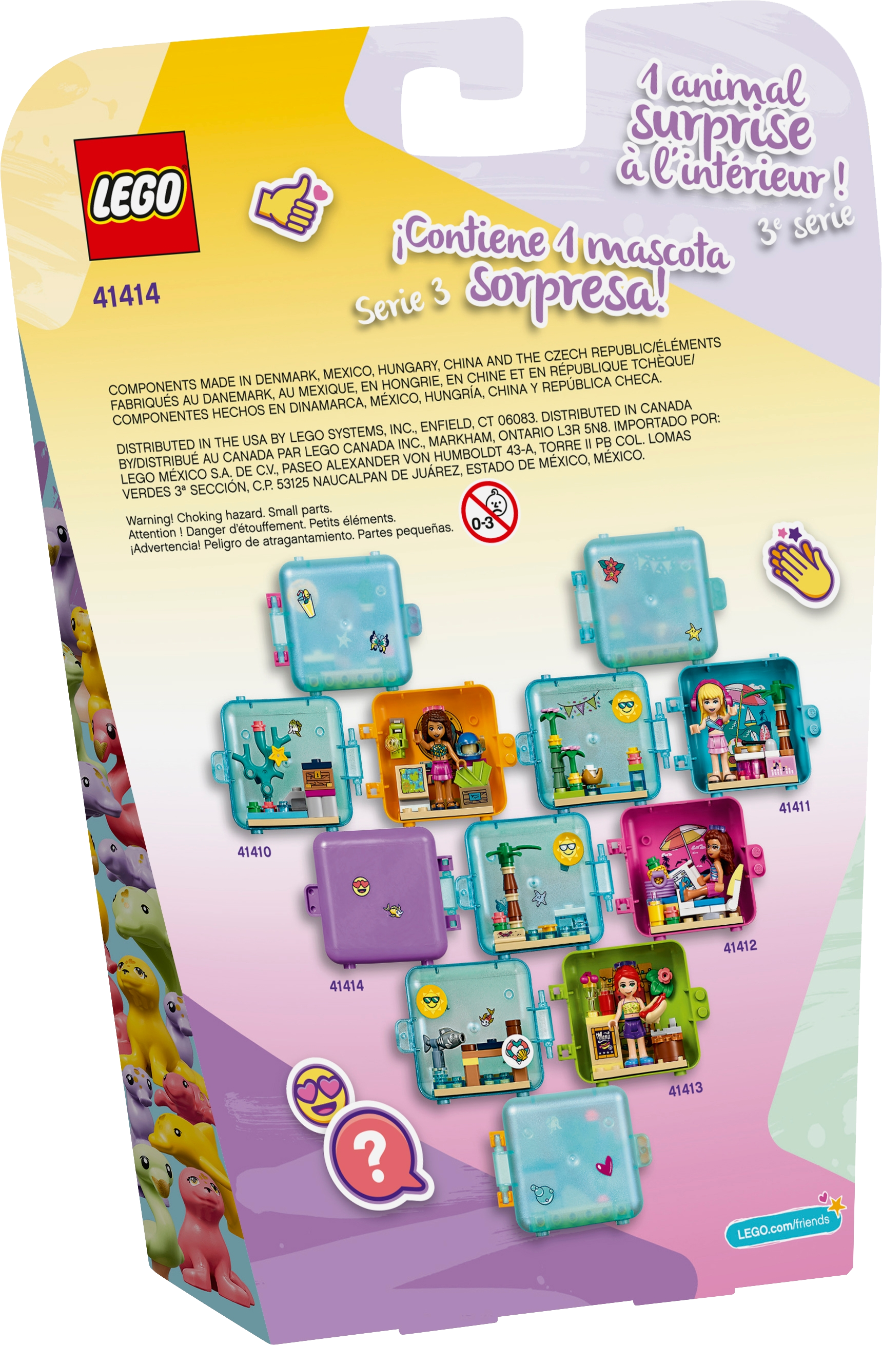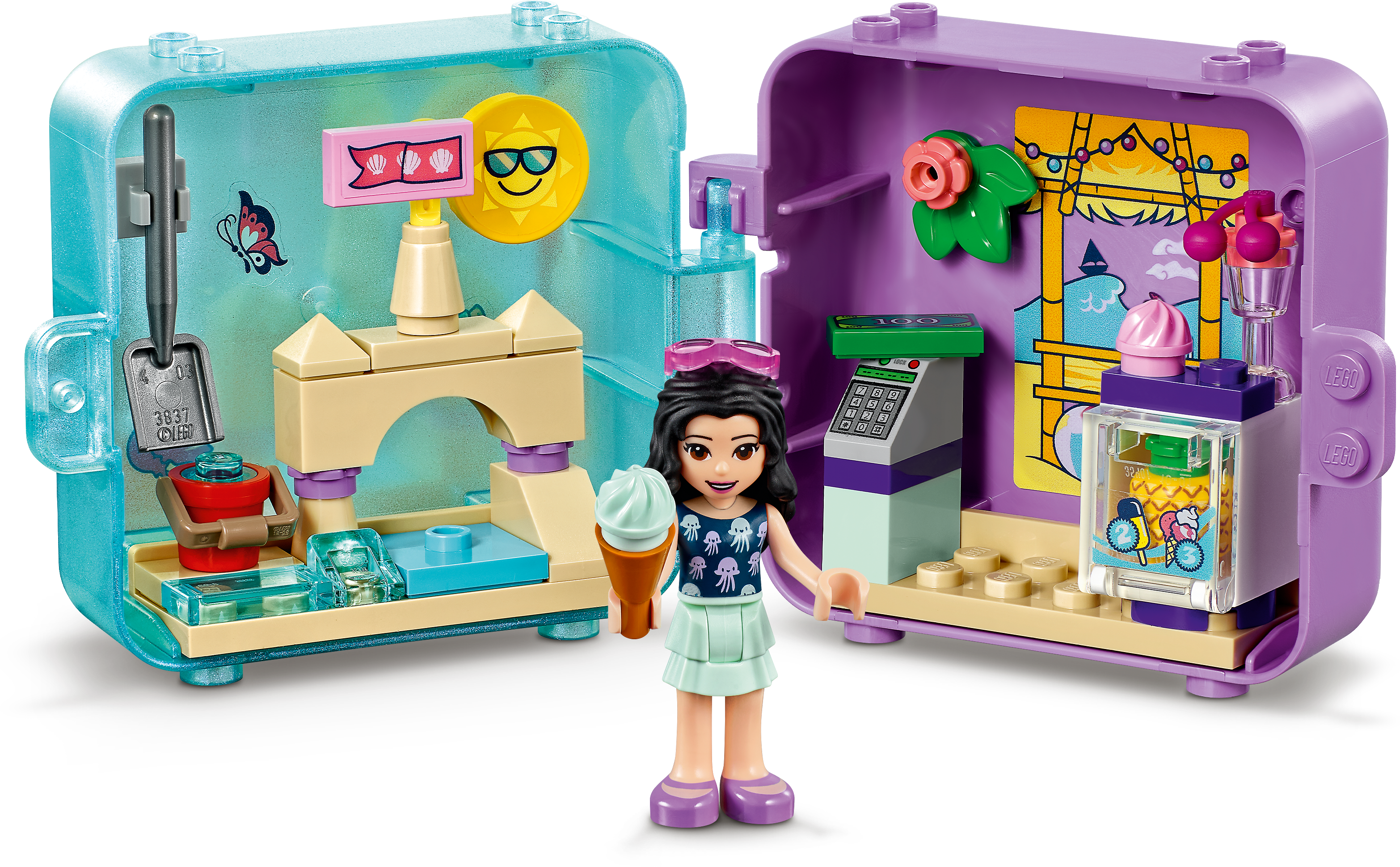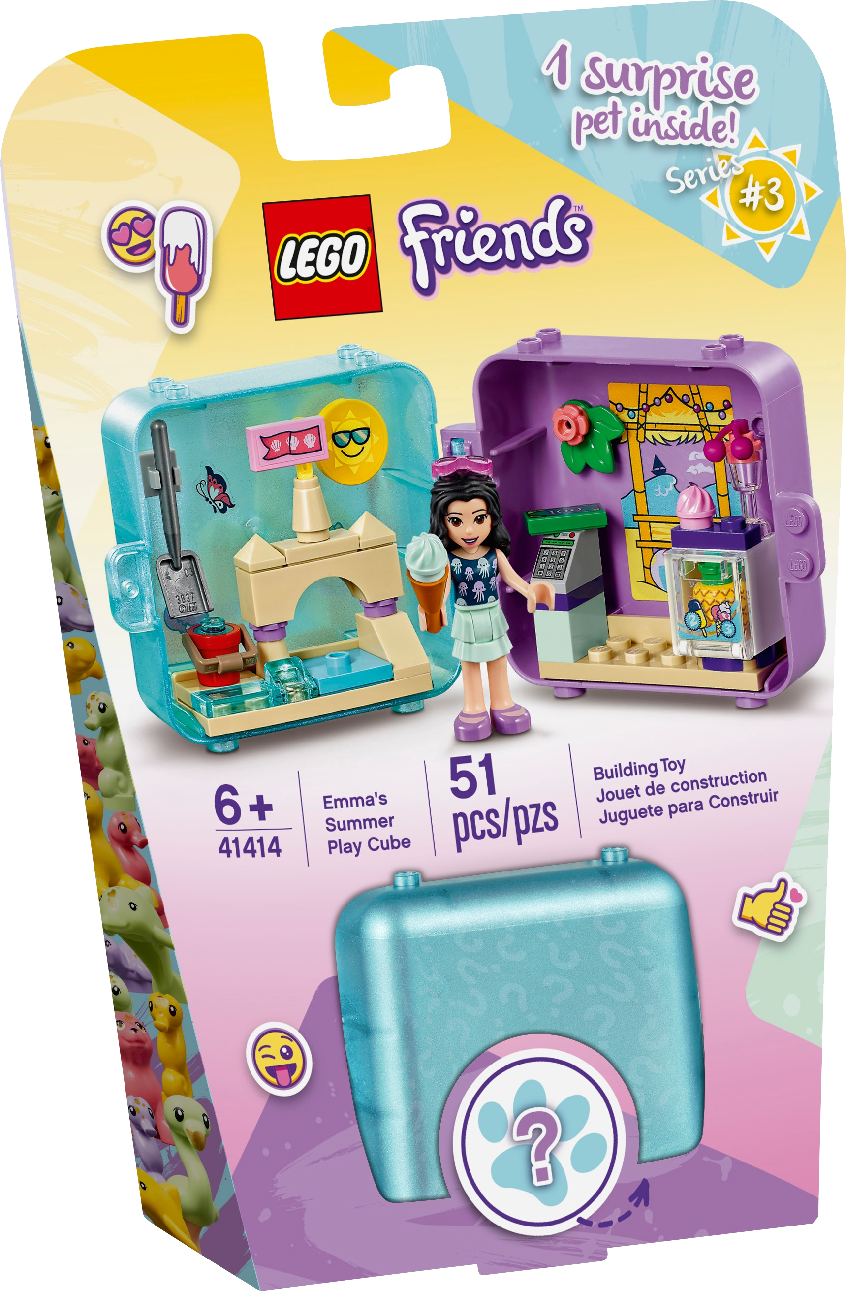 Transport creative kids back to happy days on the beach with LEGO Friends Emma s Summer Play Cube (41414). Inside the opalescent carry case is a mini beach scene, complete with sandcastle and ice-cream stand. It s the ideal birthday gift for kids who love compact toys and hanging out at the beach. Thinking outside of the box: LEGO Friends Cubes are a fresh way to play. The elements of this summer toy are removable so kids can enjoy imaginative vacation play outside of the cube. The pieces also attach to the cube s base for fuss-free fun on the move and no more missing bricks! The cube splits in 2 so kids can share the mini play cube adventures with a friend. Fun in the frameThere are 5 Summer Play Cubes to collect. Each portable toy has a mystery pet in a random color discovering the surprise inside is part of the fun! The stackable toy connects to the other cubes to create a fun display. Introduce kids to the world of Heartlake City, a place of everyday heroes and a warm welcome! Inspire creative play with LEGO® Friends Emma’s Summer Play Cube (41414). Inside the pretty carry case is a miniature world of beach fun. Watch kids open the case to reveal the cute mystery creature inside. There’s plenty inside this portable toy to enliven long trips. Included is a LEGO® Friends Emma mini-doll and a mystery sea creature, along with buildable creative kit. The sticker sheet lets kids customize the cube. Creative kids can stack or connect their cubes to display them in creative ways, or split them to share the fun. They can take the elements out or play with them inside the box. This is the small toy that’s big on fun! This 51-piece mini play cube is the perfect travel toy for creative kids. The easy build will appeal to those new to LEGO® construction. It also makes a great birthday gift for kids aged 6 years old and up. This cube measures just over 3” (8cm) wide and 2” (6cm) and pops easily into a backpack or handbag, making it the perfect portable toy to take on long journeys. Its neat dimensions make it a bijou desk companion. This animal playset thankfully needs no batteries to make the imaginative play come alive, so fun times are on tap wherever kids find themselves: in the car, on a plane or in the schoolyard. As with all LEGO® sets, this summer toy comes with clear printed instructions. They are designed to be easy for kids aged 6+ to follow so they can get on and build without a grown-up's help. Introduce kids to the world of LEGO® Friends where they’ll learn they can achieve whatever they want if they follow their hearts. And everyone’s welcome because there’s always room for one more friend. LEGO® kids toys meet the highest industry standards, plus the LEGO Group’s own quality criteria. Youngsters building this LEGO Friends Emma set will find the bricks connect strongly and pull apart easily every time. The LEGO® Group tests the bricks and pieces of its kids' toys in every way imaginable to guarantee that your youngster’s new toy meets the highest global safety and quality standards.