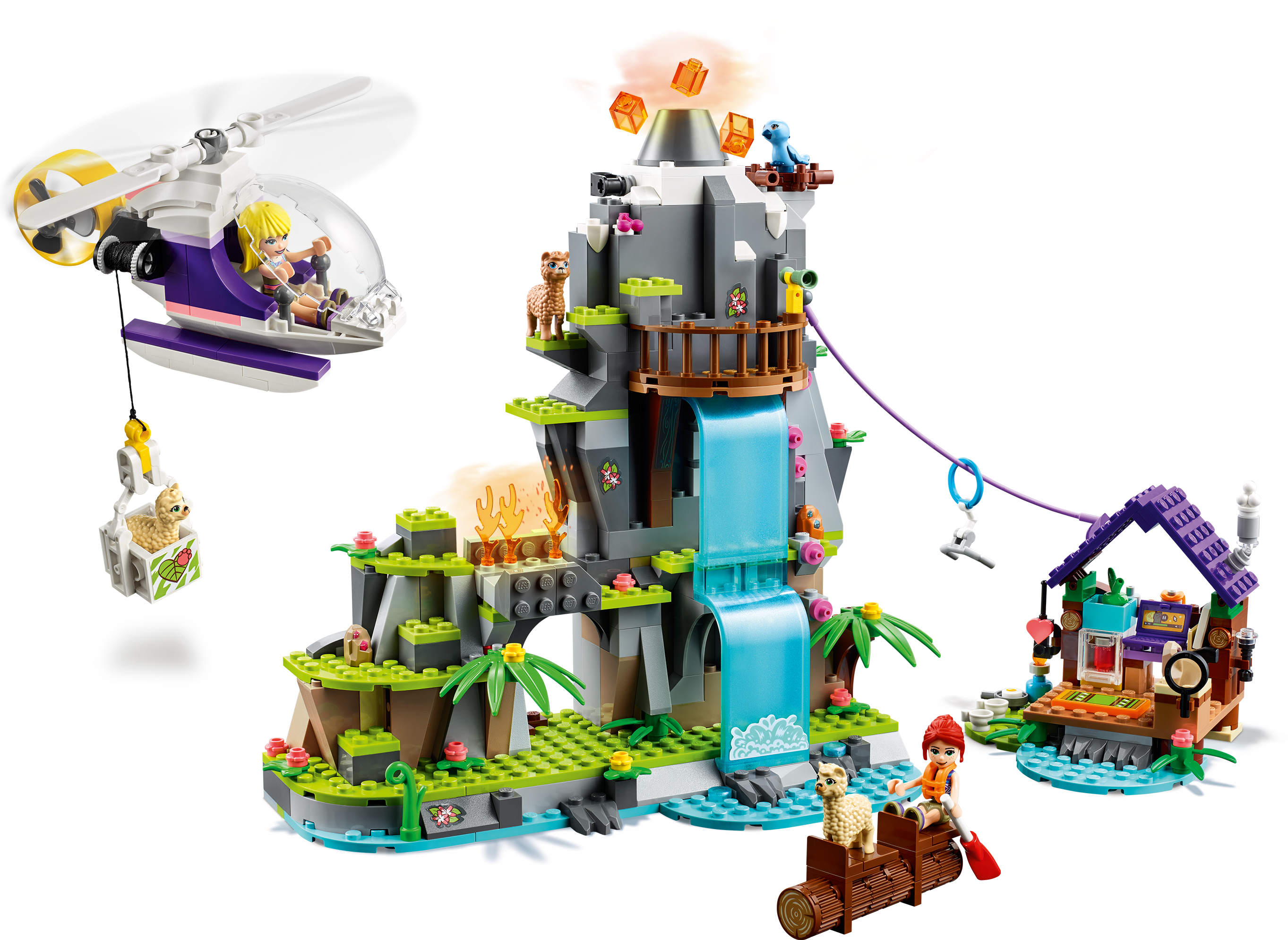 Do you know a kid who loves rescue adventure play? Help them get lost in hours of creative fun as they play out heroic scenes with the Alpaca Mountain Jungle Rescue (41432) volcano building kit. LEGO Friends is proud to support the work of National Geographic Explorers. So many ways to playKids can help the mini-dolls rescue the alpacas from the jungle's exploding volcano or explore the mountain caves and unearth natural treasures. If they prefer simply hanging out with friends, they can do that too in the toy cabin. It comes with cute food elements, animal rescue kit and research accessories, such as a toy walkie-talkie, flashlight and magnifying glass. Rescue action stationsLEGO Friends animal rescue playsets let youngsters enjoy the excitement of taking on a mission and saving the day! They'll also love this set's enhanced building experience. Download the LEGO Building Instructions app and they can access Instructions PLUS to view their creation in zoom, rotate and visualize modes!