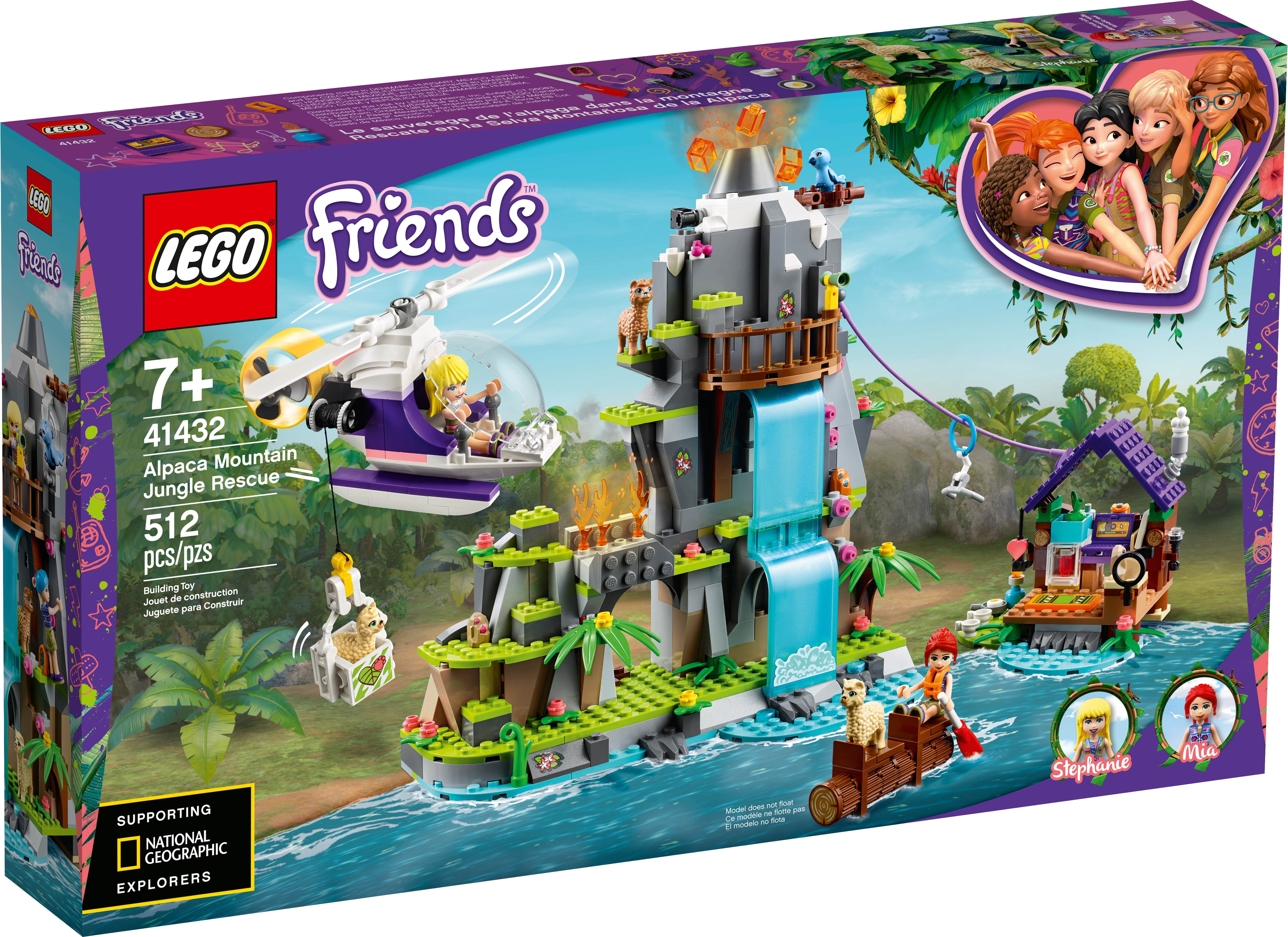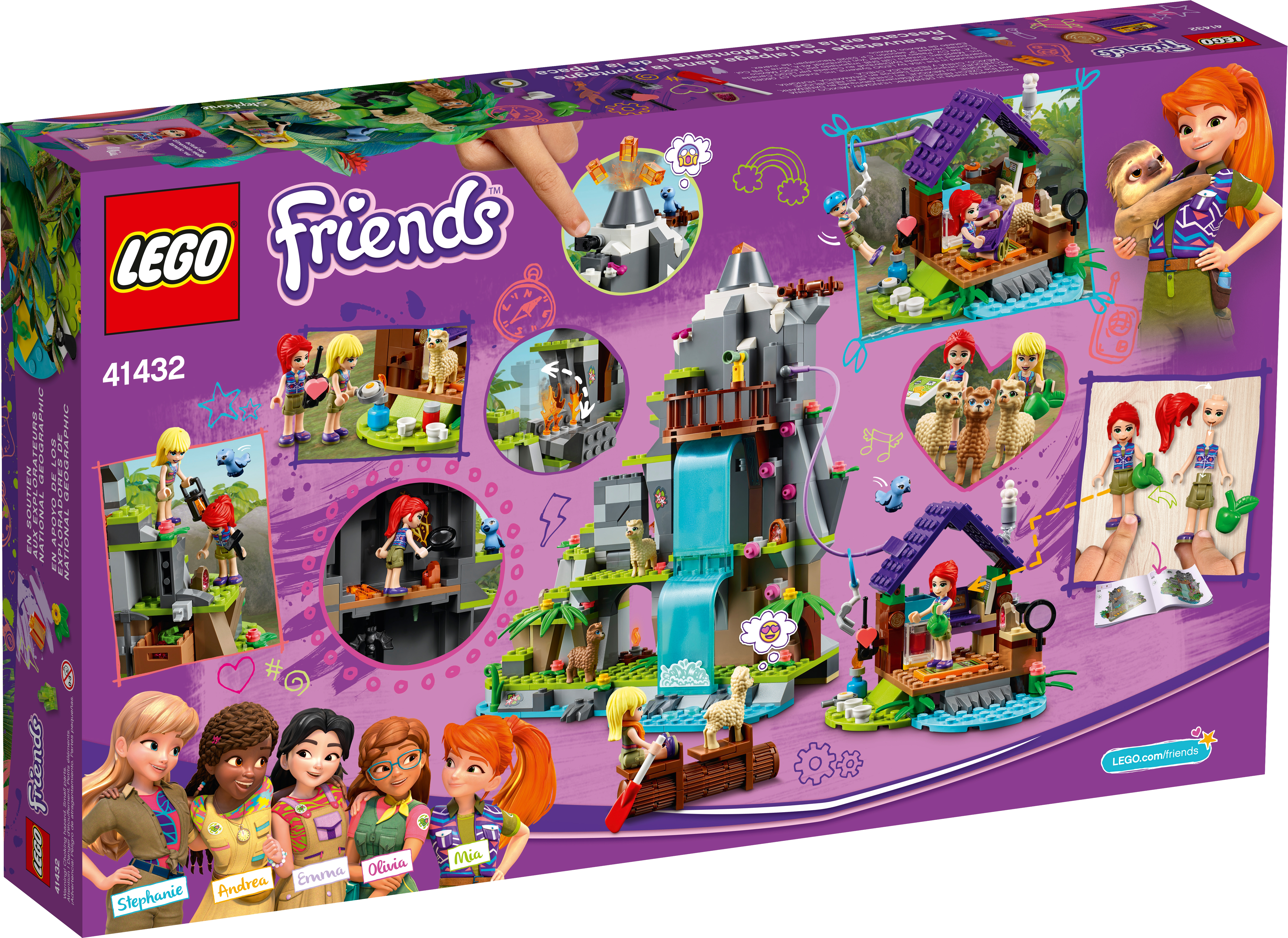 With Alpaca Mountain Jungle Rescue (41432), kids can play out exciting jungle stories with the help of LEGO® Friends Stephanie and Mia buildable mini-doll figures, 3 alpaca figures and cute bat and bird figures.