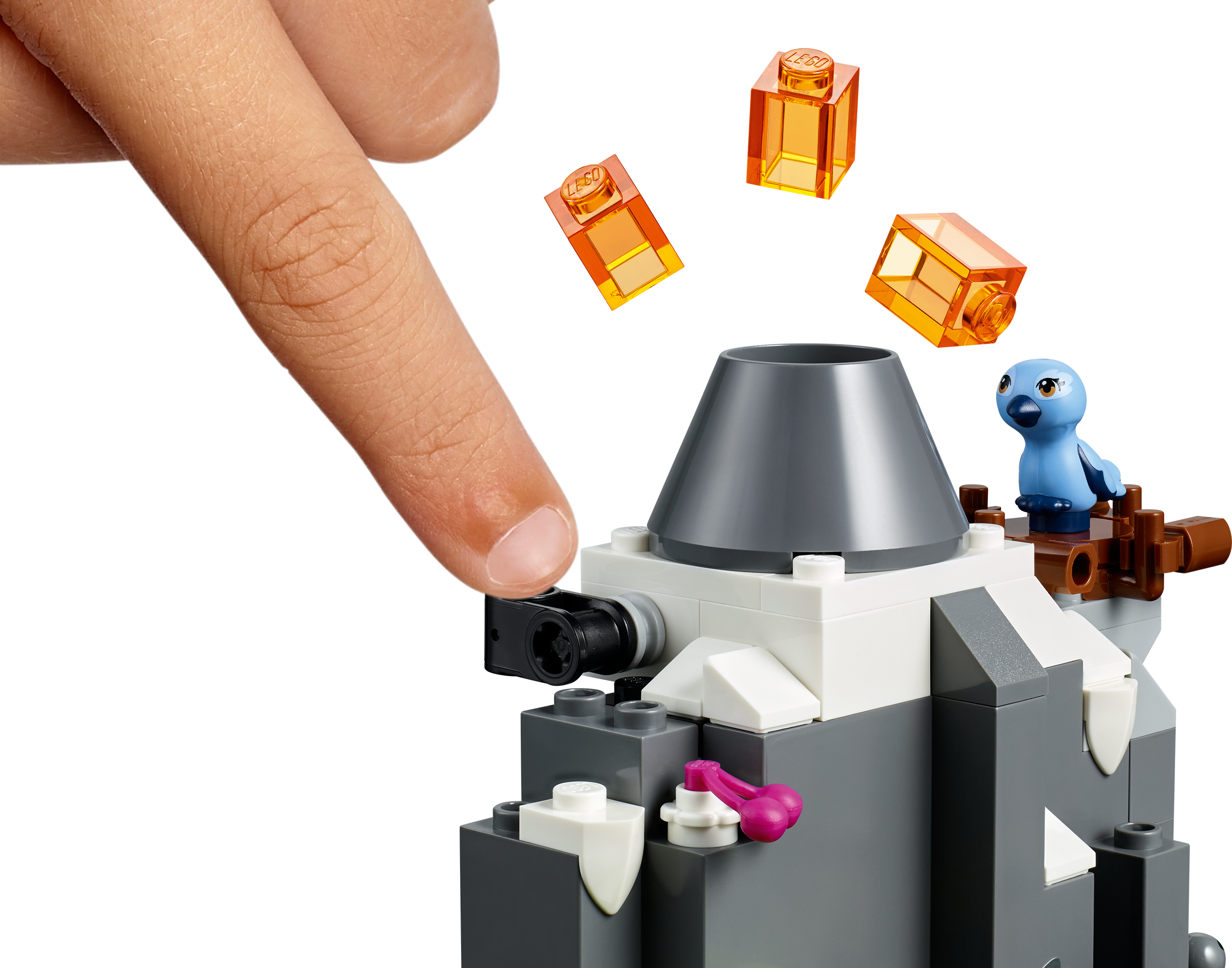 This mountain playset needs no batteries. Instead, clever design brings the play to life – a button function shoots out lava elements and opalescent bricks help make the cascade's water look like it's actually falling.