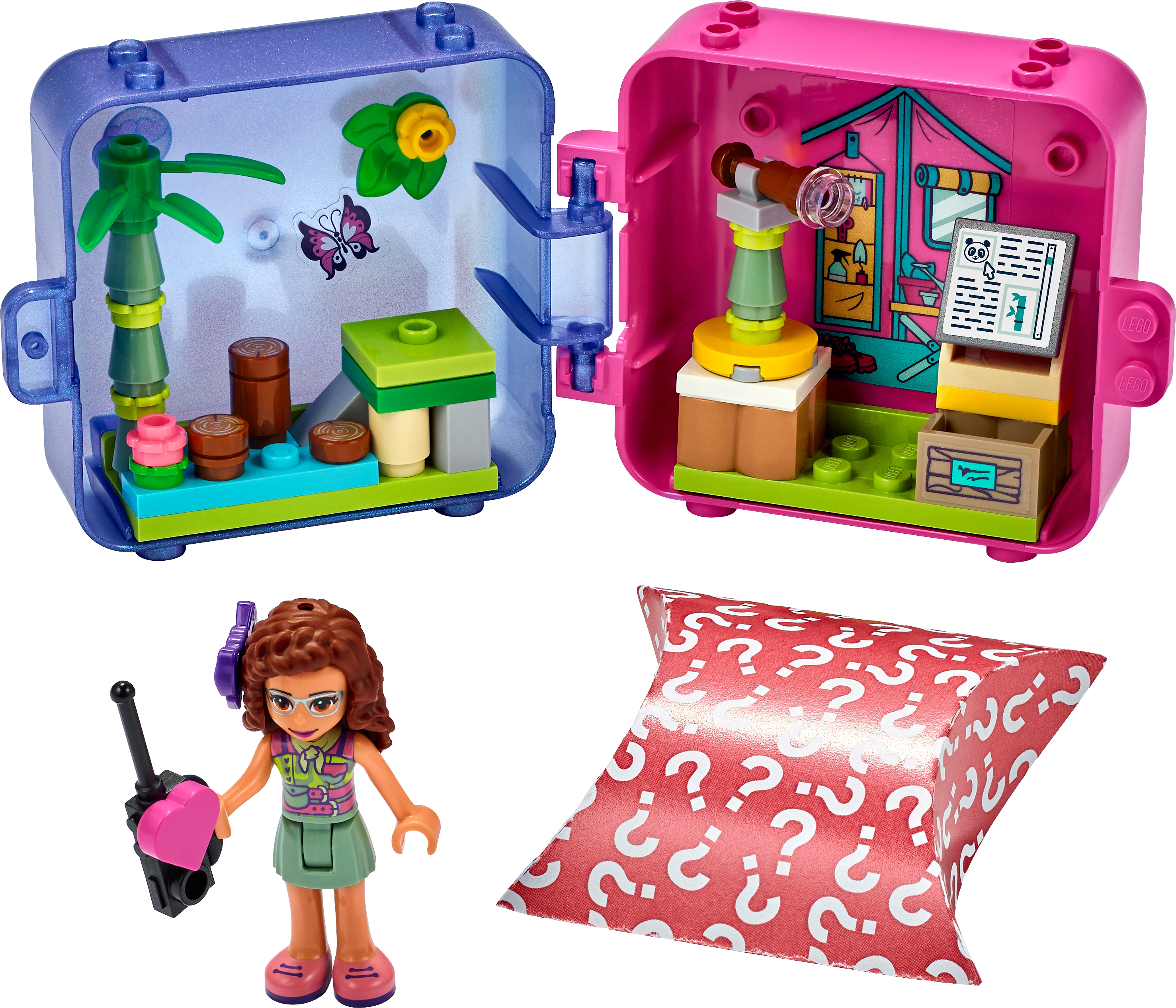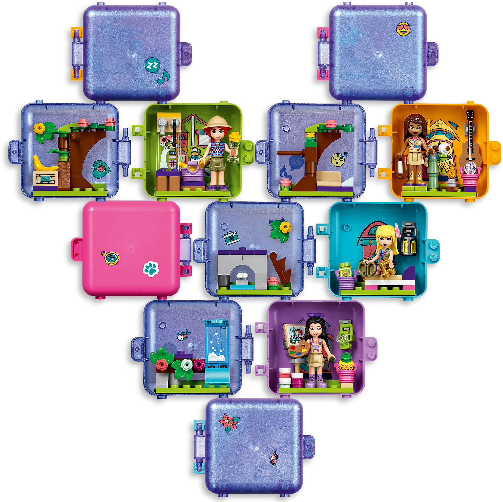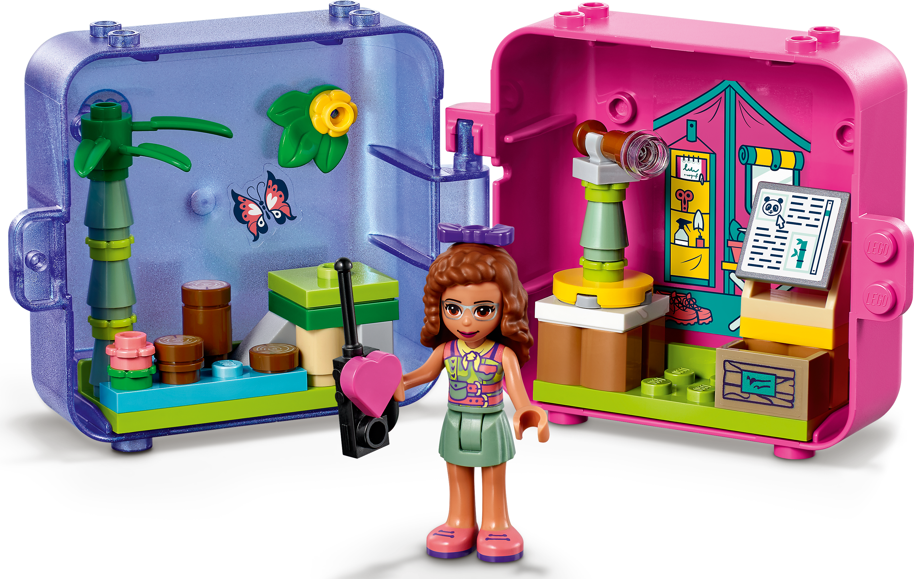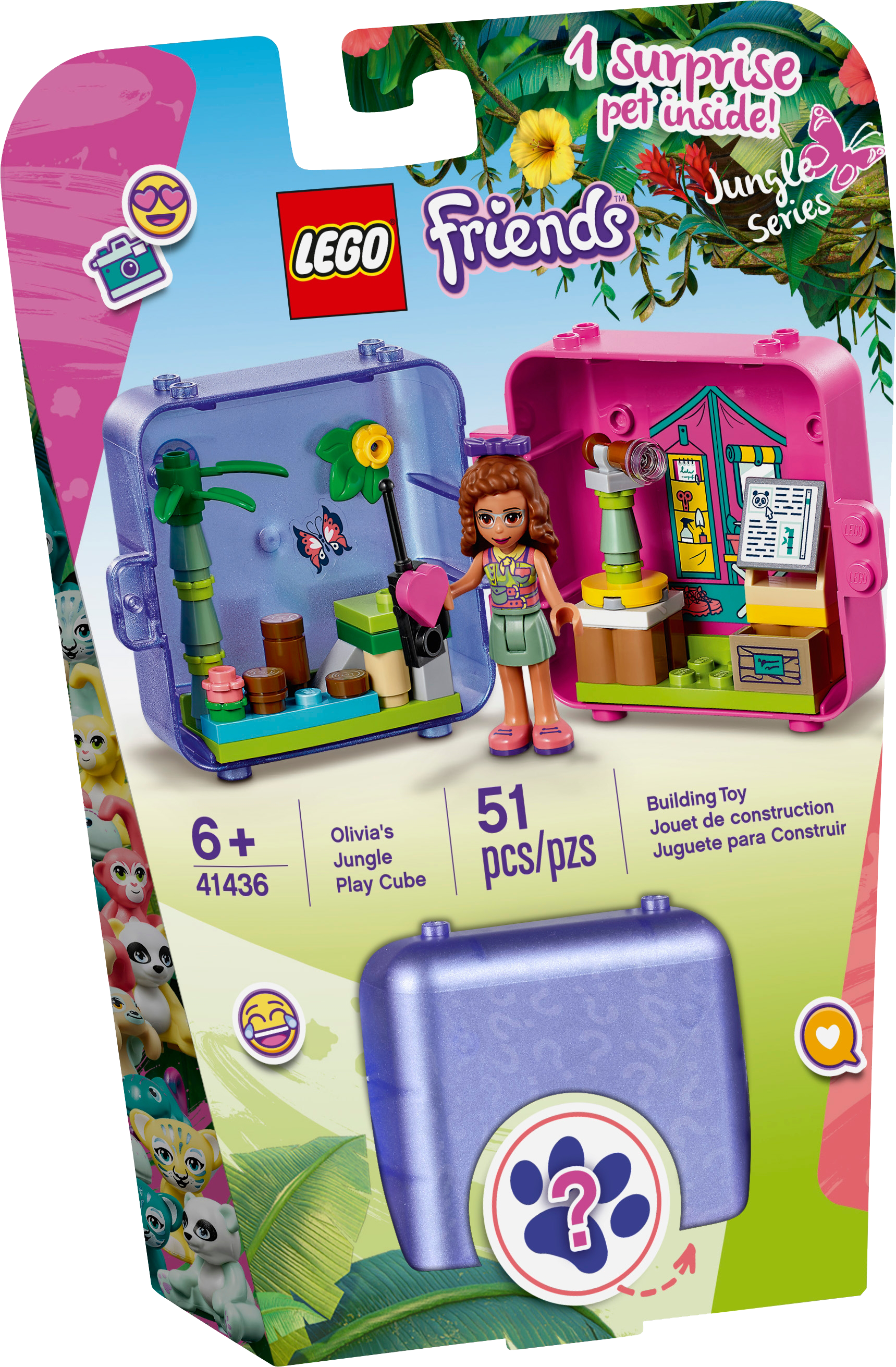 Encourage kids’ love of the wild with LEGO® Friends Olivia’s Jungle Play Cube playset (41436). Inside the shell of this portable toy is a mini jungle scene waiting to be discovered. Let youngsters enjoy role-play fun, pretending go wildlife animal-spotting!Takeout treatAll the elements are easy to build and removable, so kids can play with them outside the cube. But they also attach to the play cube's base, which means no more missing pieces when kids play on the move! The 2 sides also split so little ones can share cube fun with a friend.The art of CubismEach play cube fun toy gives kids a flavor of the LEGO Friends world. There are 5 Jungle Play Cubes to collect, each with a mystery wildlife animal in random colors, which gives these travel toys a cool element of surprise. Kids can stack the cubes or connect them to create crazy shapes. Introduce kids to the world of LEGO Friends creative fun, where they can explore the natural world with their BFFs!Let kids enjoy creative play with Olivia’s Jungle Play Cube (41436). They can imagine watching the animal with a toy telescope then radioing the Heartlake City girls on a toy walkie-talkie to mount a jungle rescue.This camping adventure set packs lots of play into a little space. Inside is 1 mini-doll, a telescope, toy computer, walkie talkie and a mystery pet, as well as a sticker sheet to customize the cube.Kids can play with the elements outside the cube or pack them up for fun on the go. This LEGO® Friends box stacks and connects with other cubes so children can collect them to make an extended wildlife adventure.Know a kid who deserves a little impromptu treat? This playset makes a great reward, birthday present or holiday gift for kids aged 6+. The easy build gently introduces children to the world or LEGO® construction.Each cube measures just over 3” (8cm) wide and 2” (6cm) high, making this mini-doll set an ideal playdate companion. Keep them in a bag so these colorful portable toys are on hand if kids sense boredom beckoning.This LEGO® Friends animal playset doesn’t need batteries to make the creative play come alive. Its camping adventure buildable elements are set to bring the story-telling to life.This LEGO® Friends box comes with easy-to-follow instructions, so even if your kid's new to LEGO brick building, they'll be on the road to role-play adventures in no time at all!Introduce young builders to the world of LEGO® Friends adventures, where kids can explore their interests through engaging, creative play. A warm welcome from the Heartlake City girls is guaranteed.LEGO® awesome toys meet the highest industry standards plus the LEGO Group’s own rigorous quality criteria. The bricks of this toy playset connect strongly and pull apart easily every time.The LEGO Group tests the bricks, pieces and buildable figures of this travel playset in every way imaginable to guarantee its construction toys meet the highest global safety and quality standards.