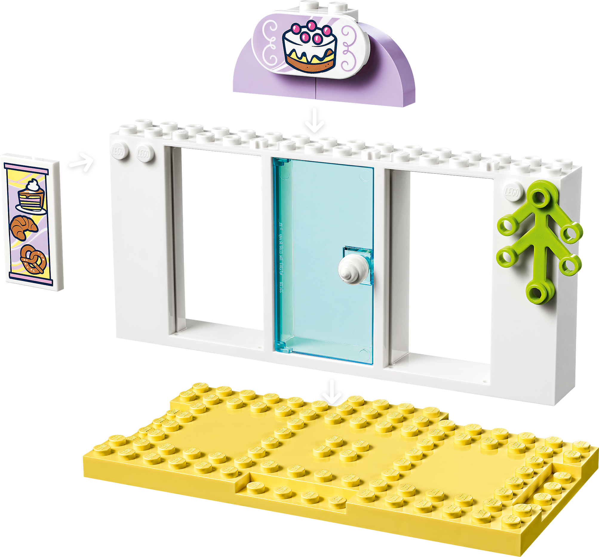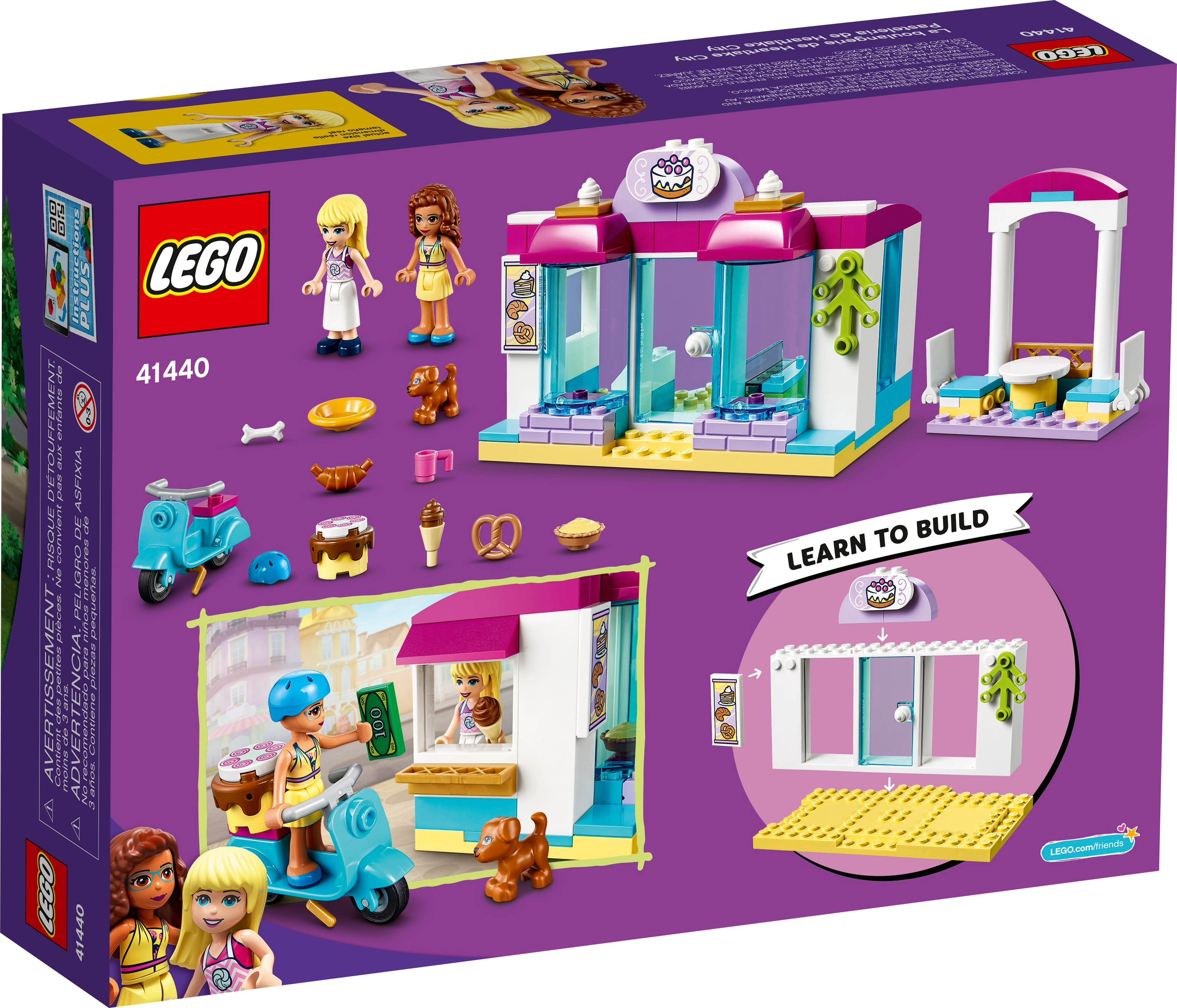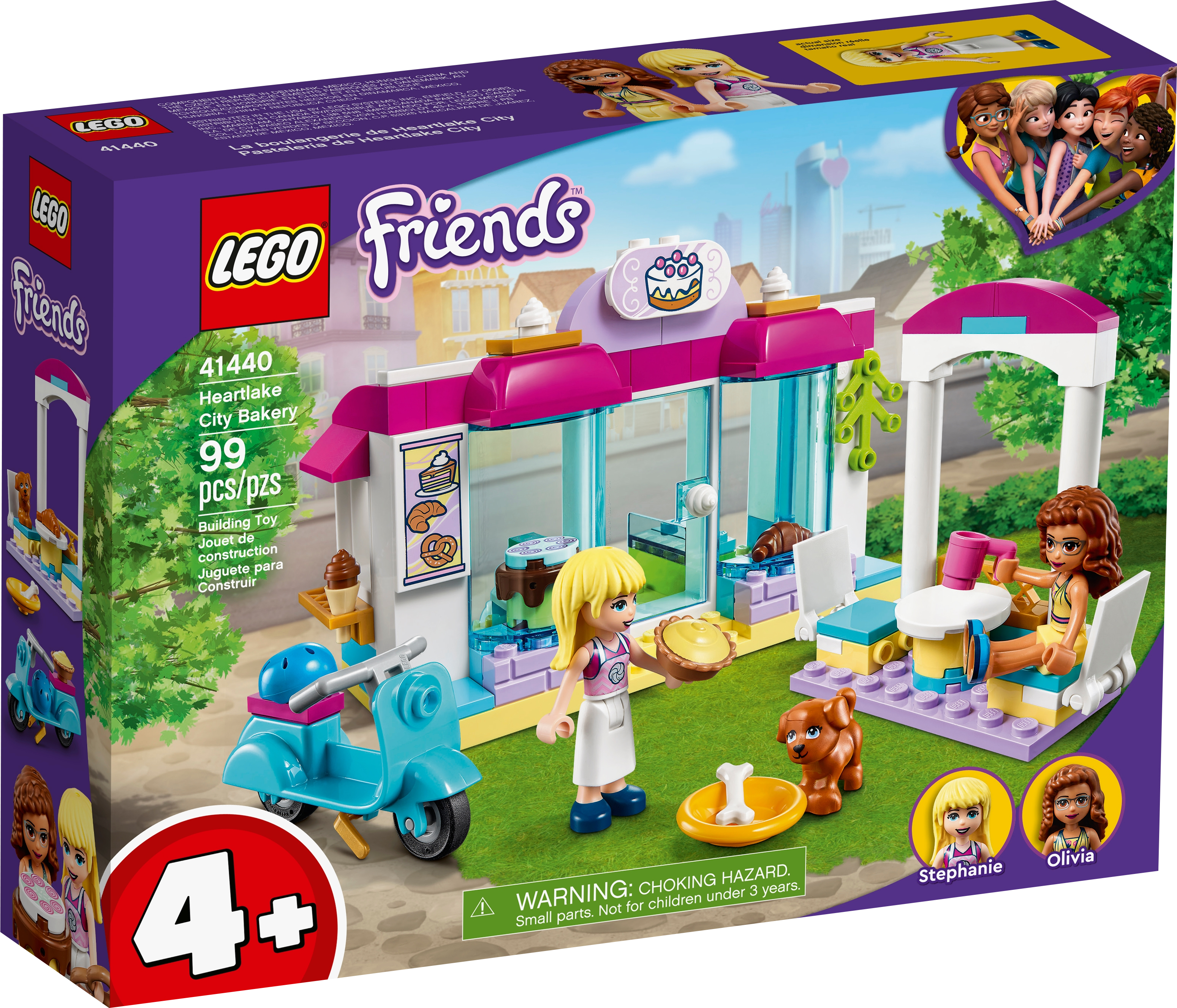 This LEGO® Friends set is packed with cute bakery toy accessories, including a pretzel, dish, helmet, mug, ice-cream scoop,croissant, cake, pie and a bone for the dog.