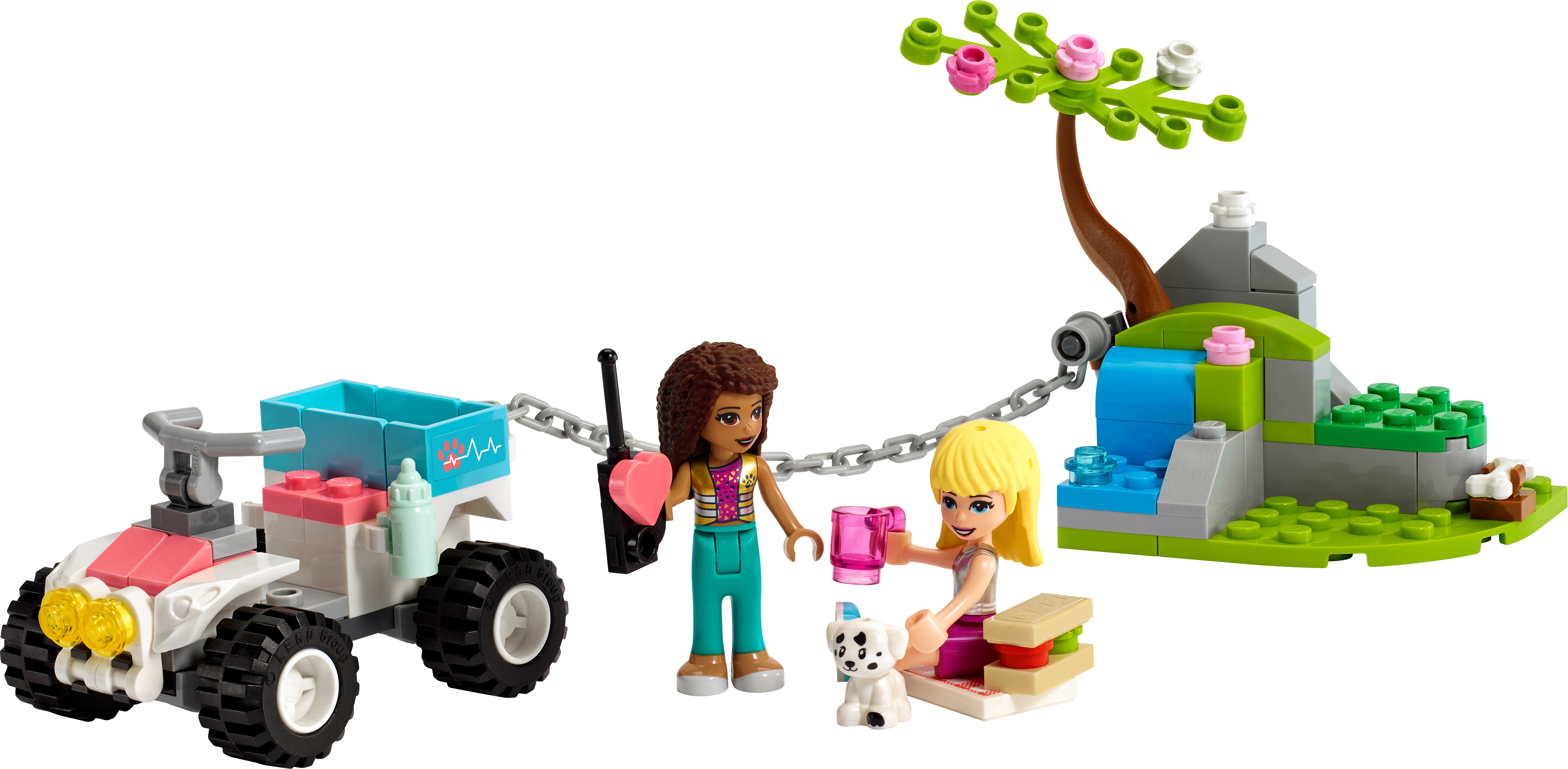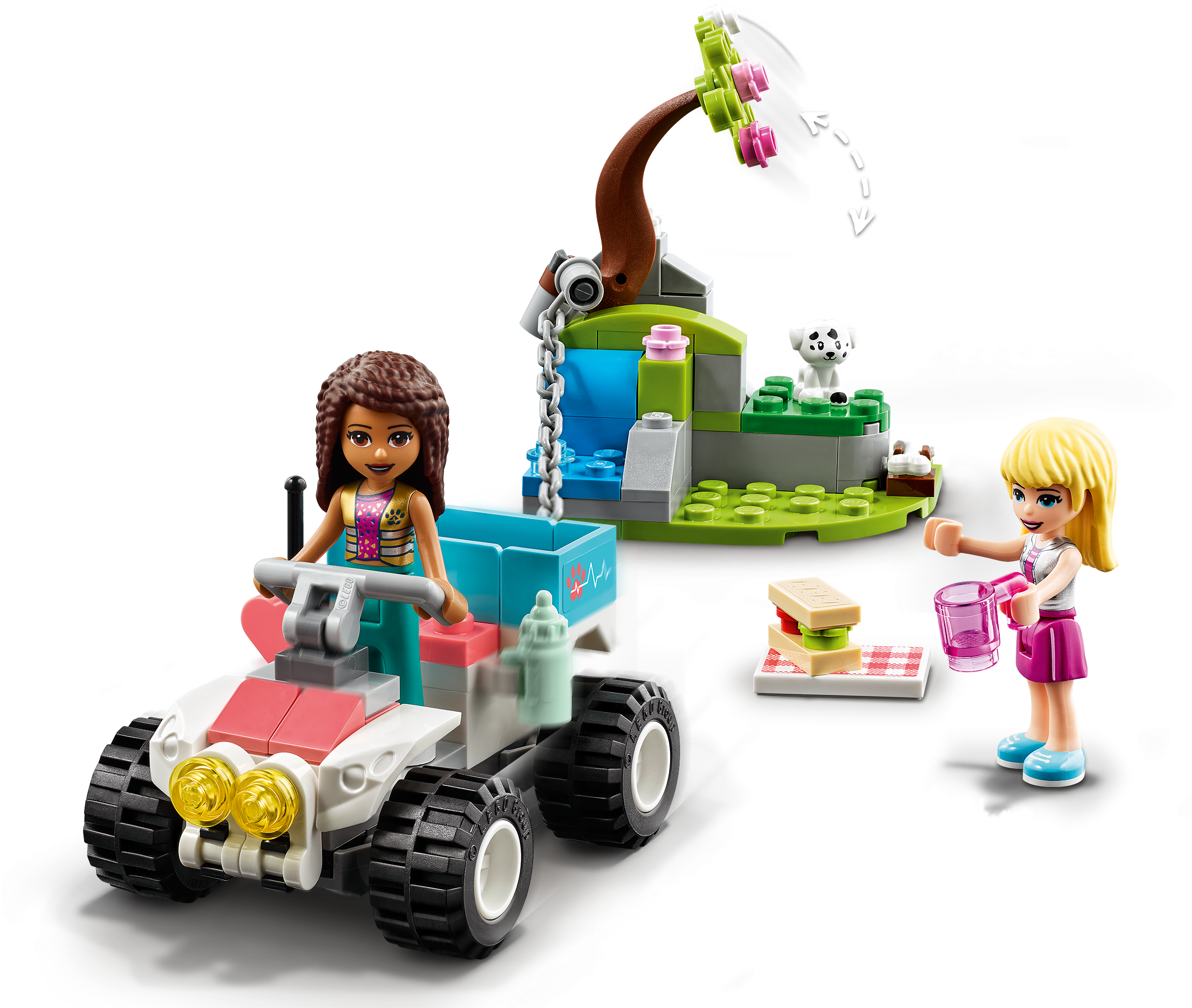 This rescue toy includes 2 LEGO® Friends mini-doll characters, a new-for-January-2021 puppy figure, a cute buildable countryside picnic scene and a quad bike.