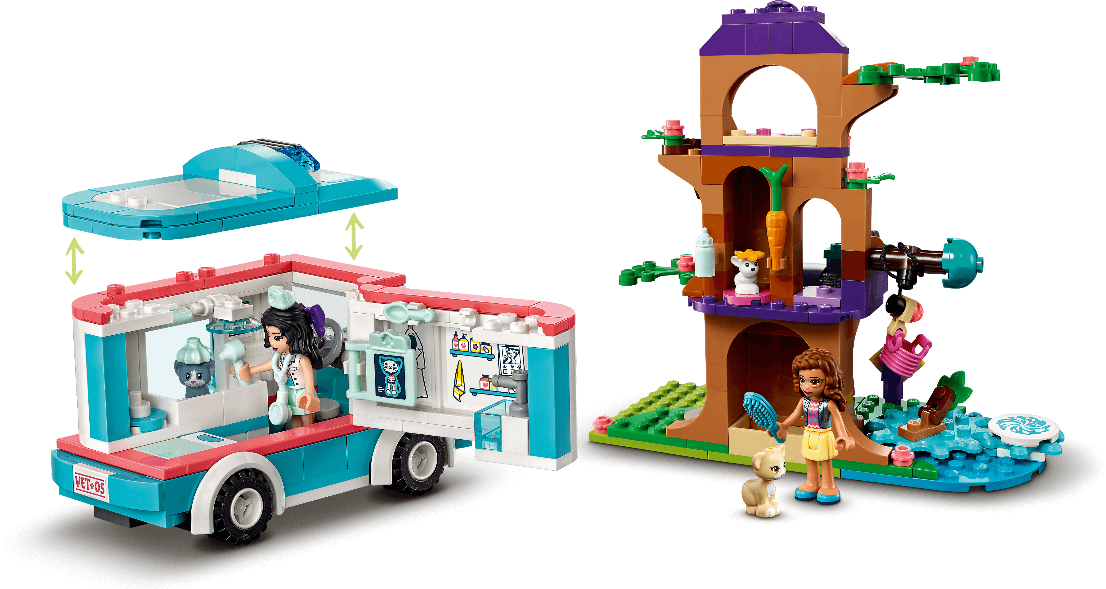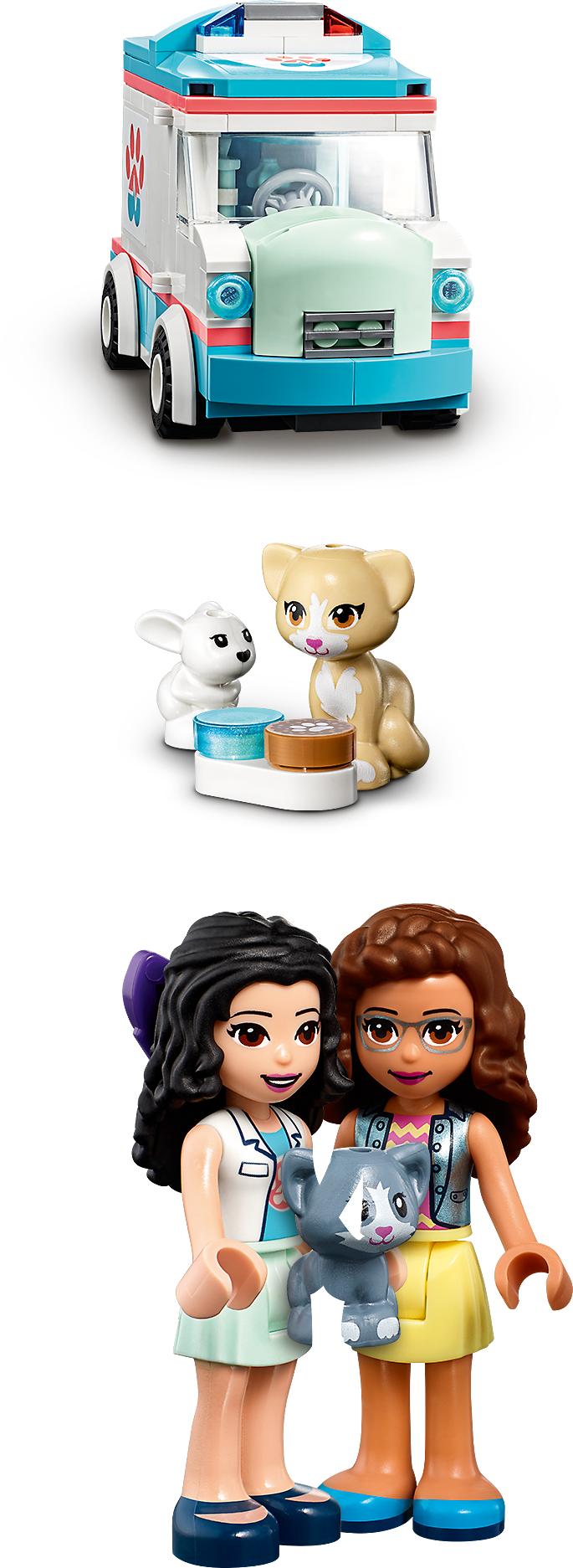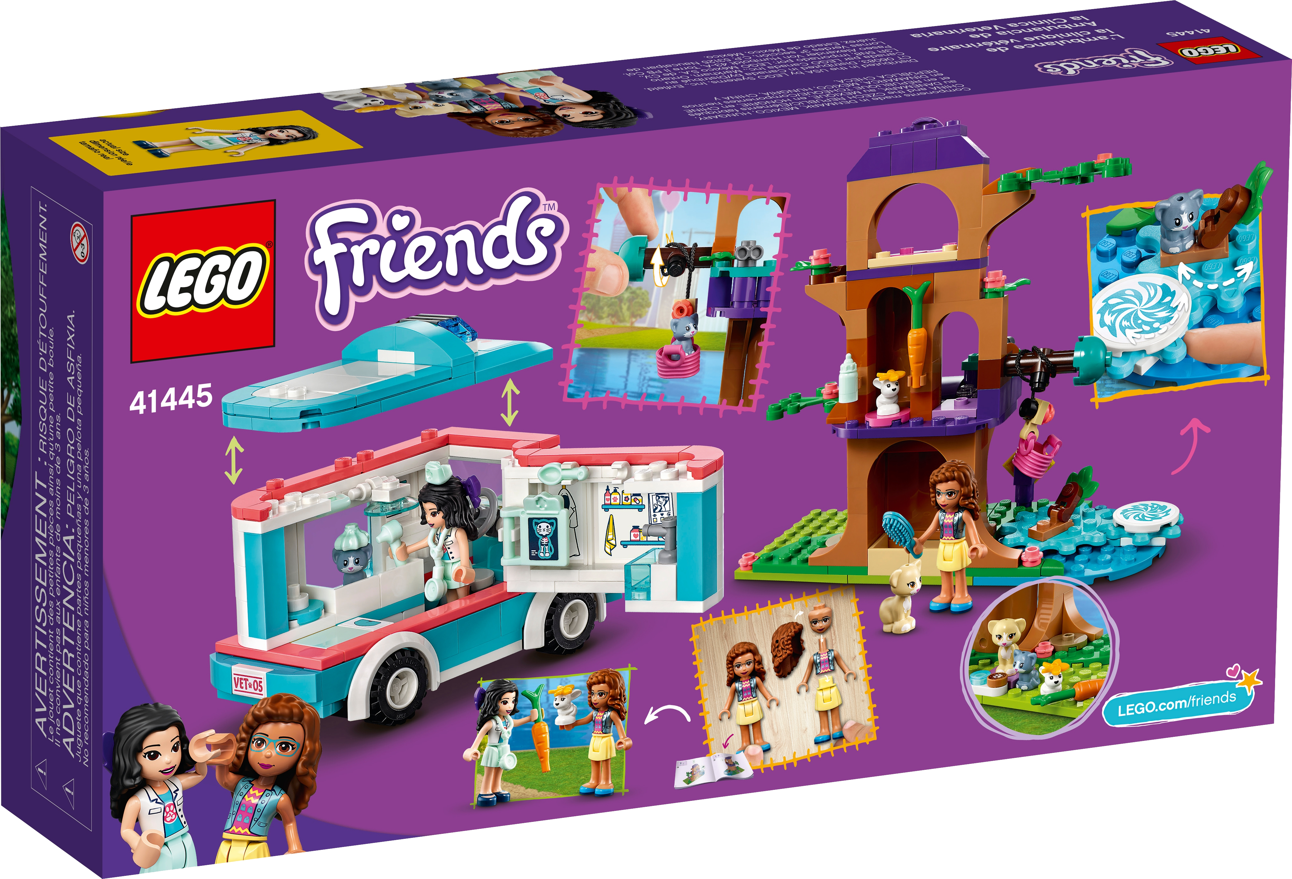 The Vet Clinic Ambulance is compatible with the Vet Clinic Rescue Buggy (41442) and Heartlake City Vet Clinic (41446), opening up a world of caring LEGO® Friends animal rescue play.