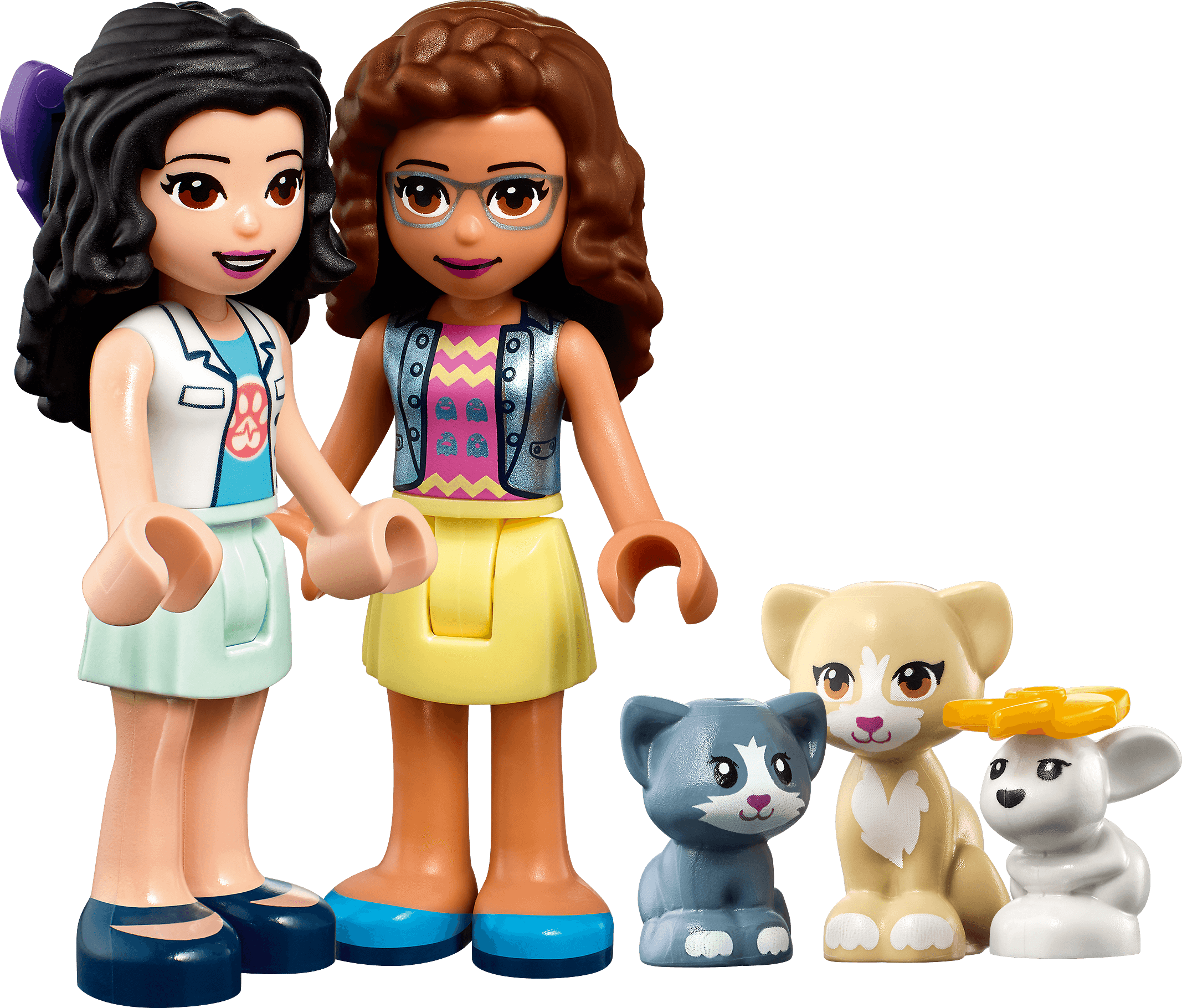 This LEGO® Friends animal rescue toy includes 2 mini-doll figures, cat and kitten toys and a kids' rabbit toy, as well as lots of fun children's vet kit accessories for an immersive play experience.