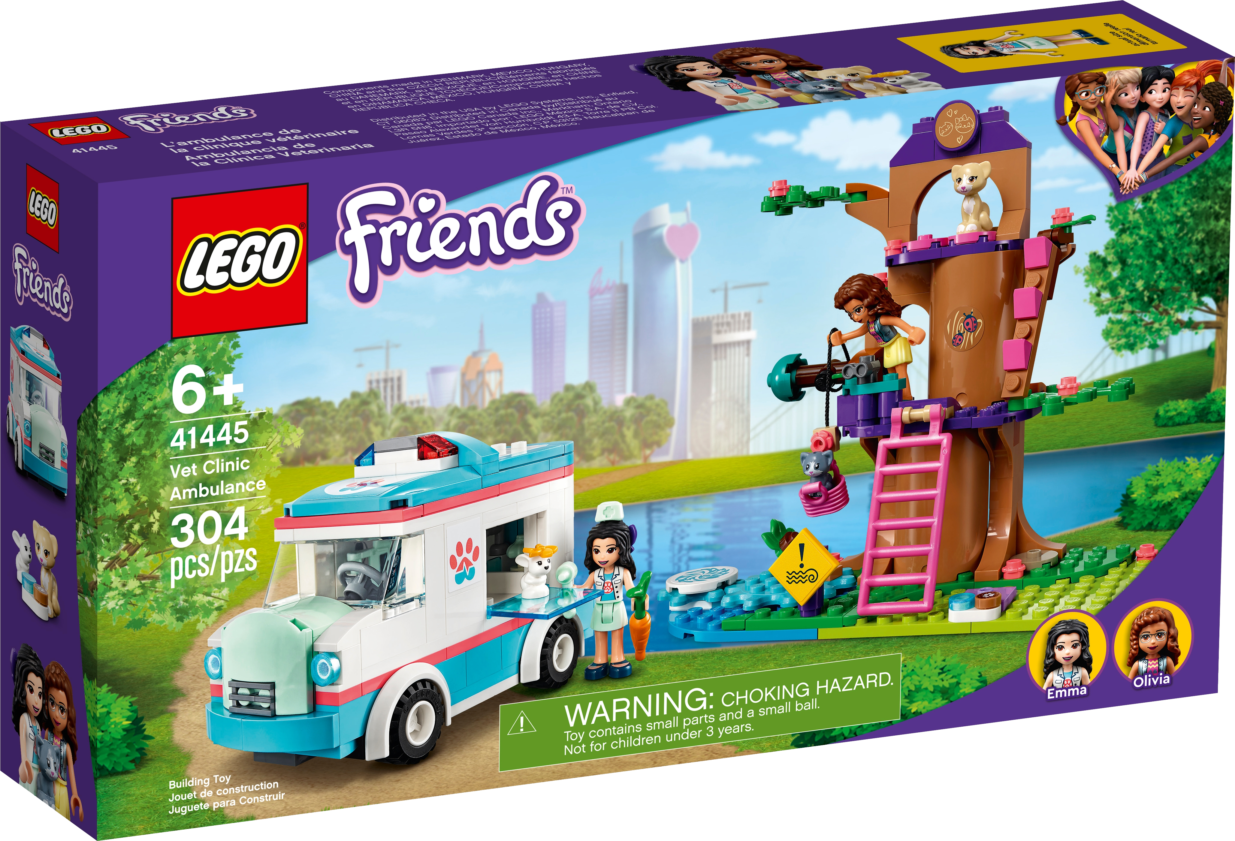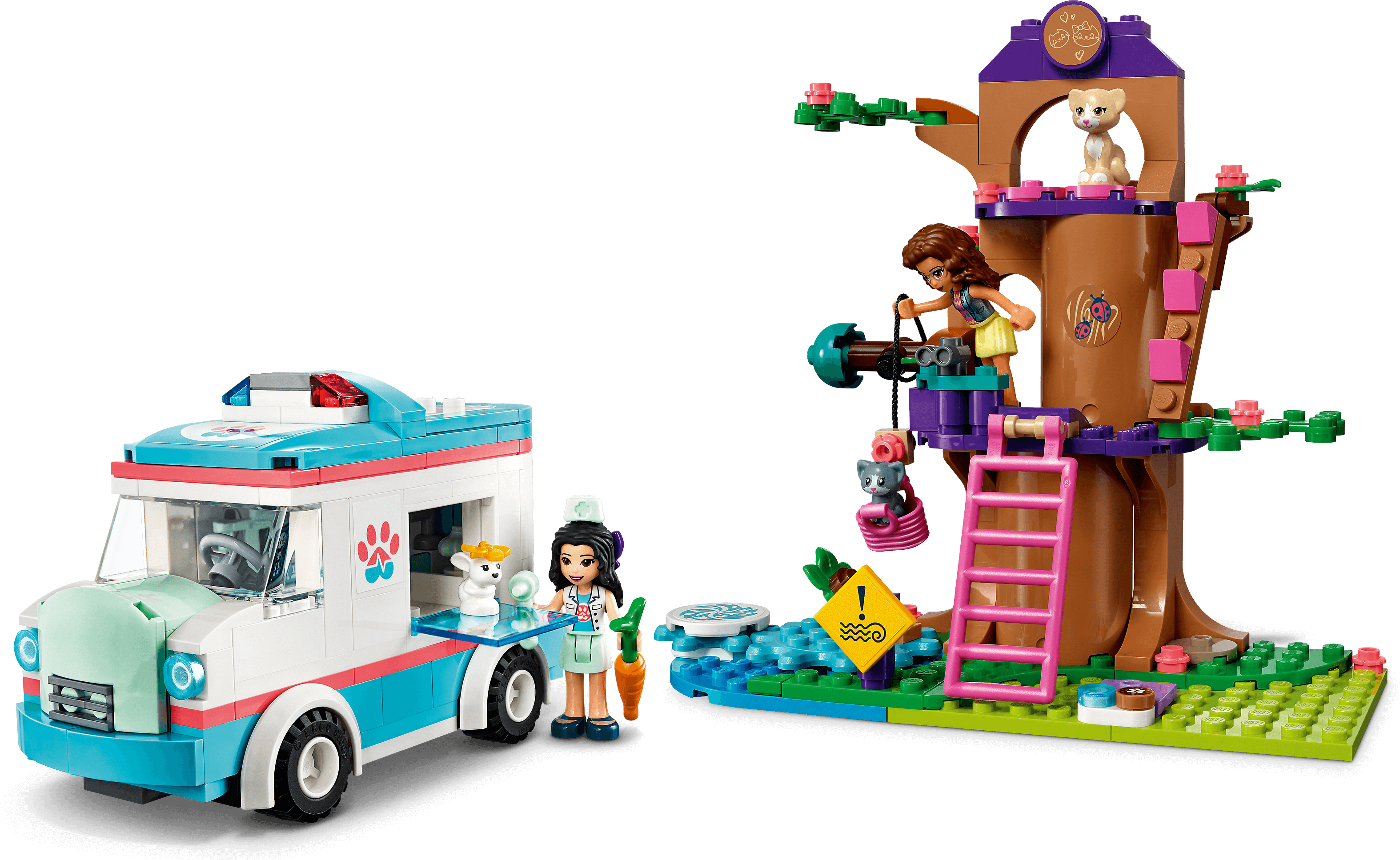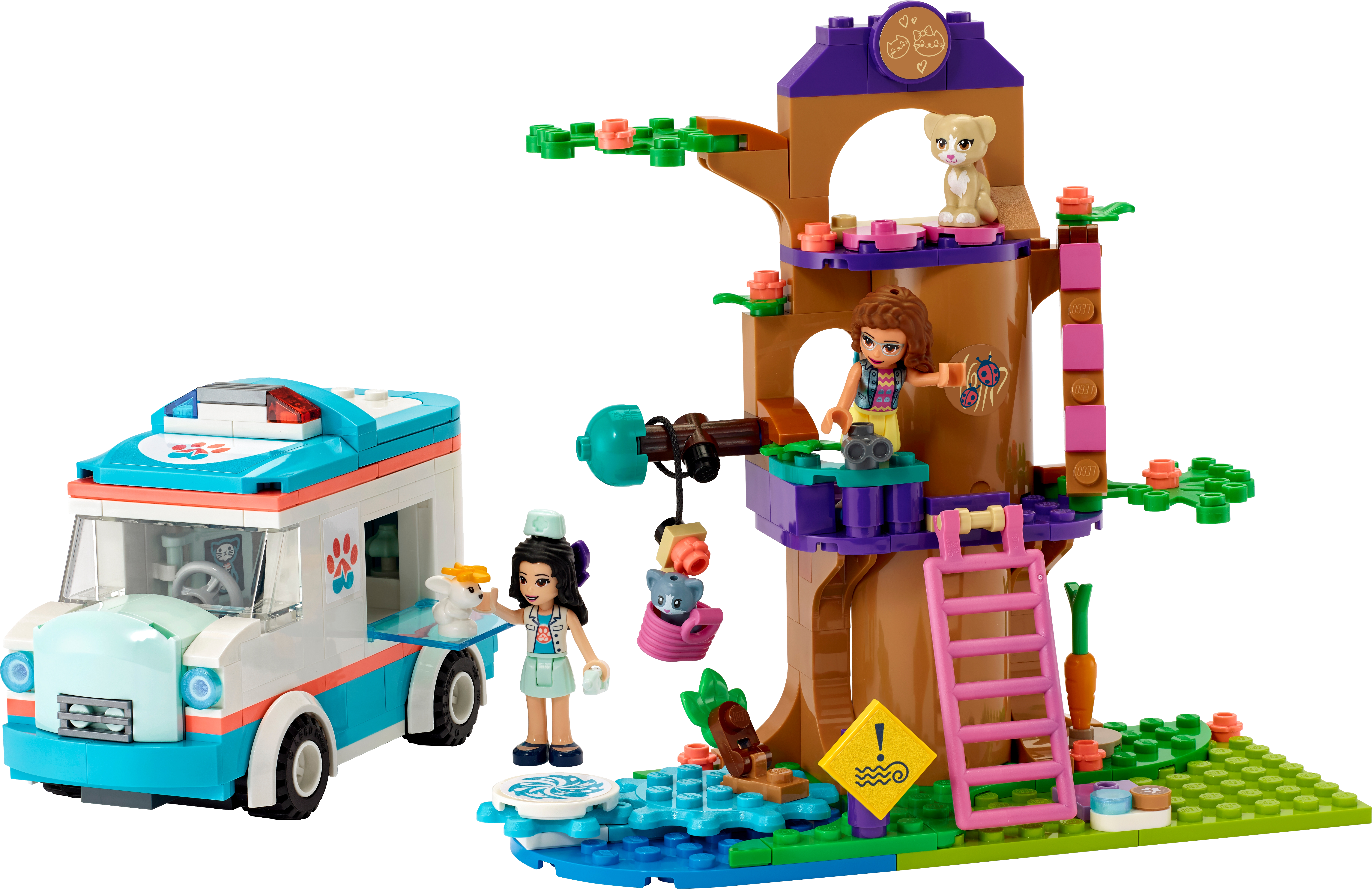 The Vet Clinic Ambulance Toy (41445) contains a cute, brick-built tree house and rescue vehicle to spark animal-saving storytelling and teamwork play.