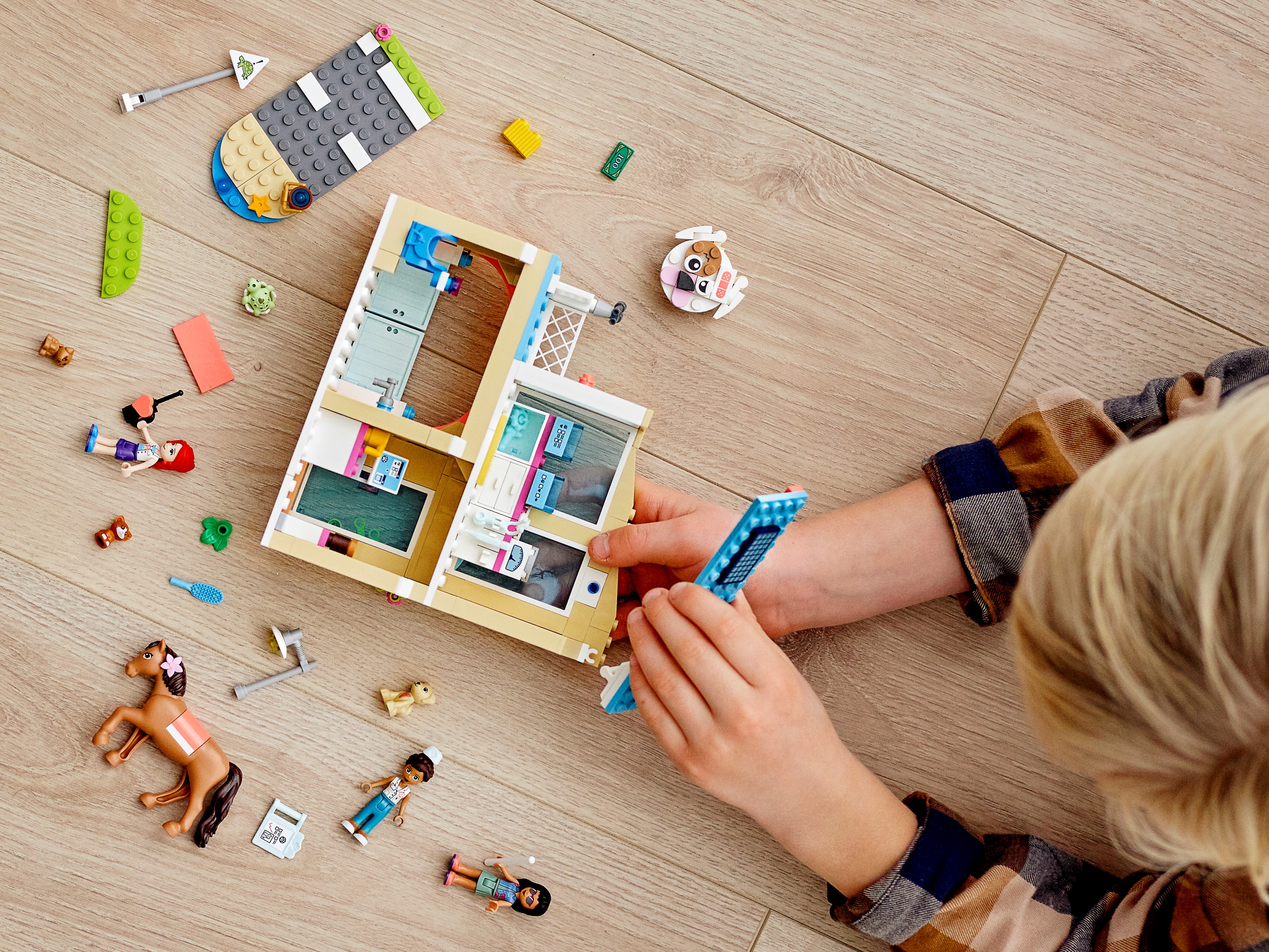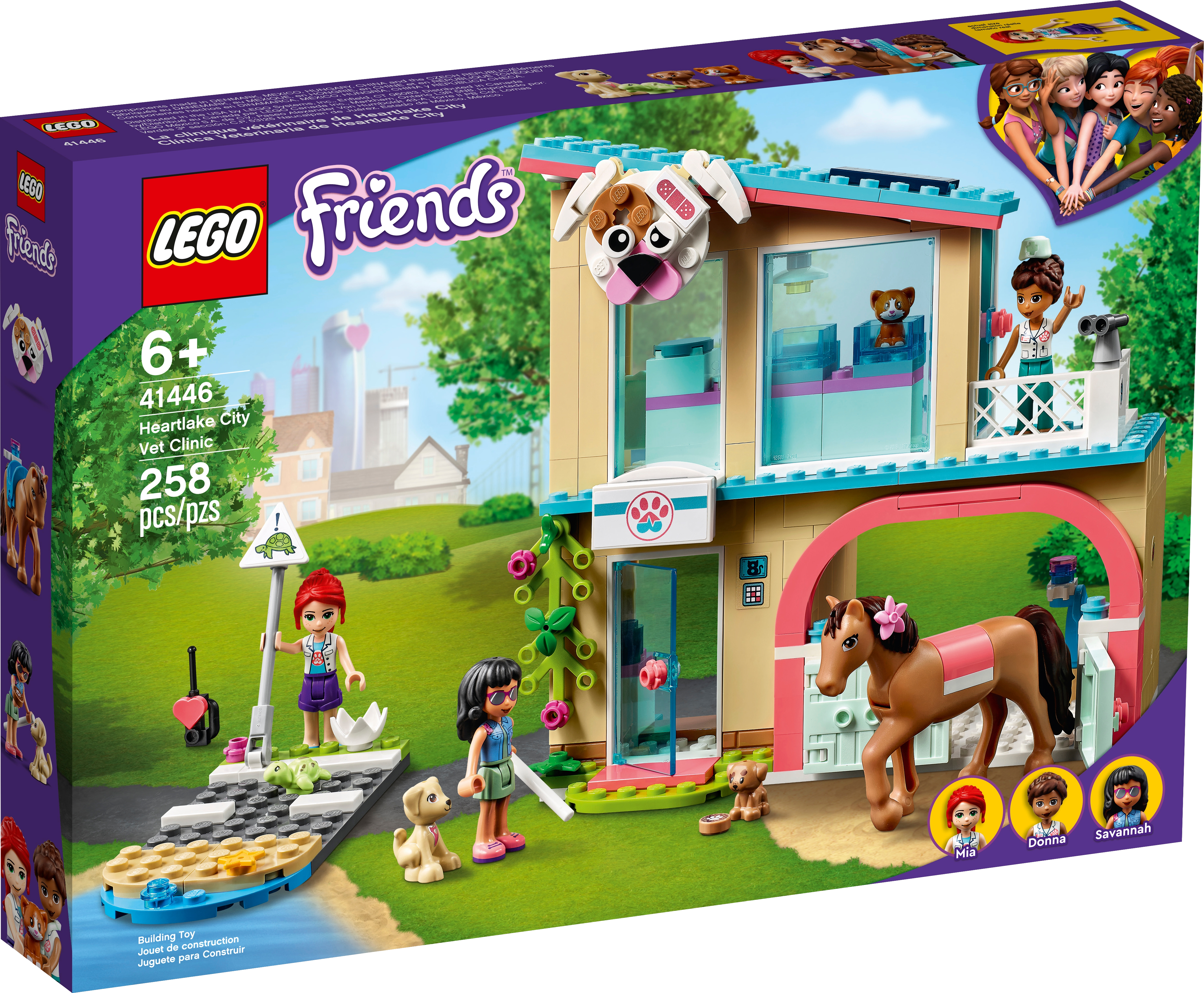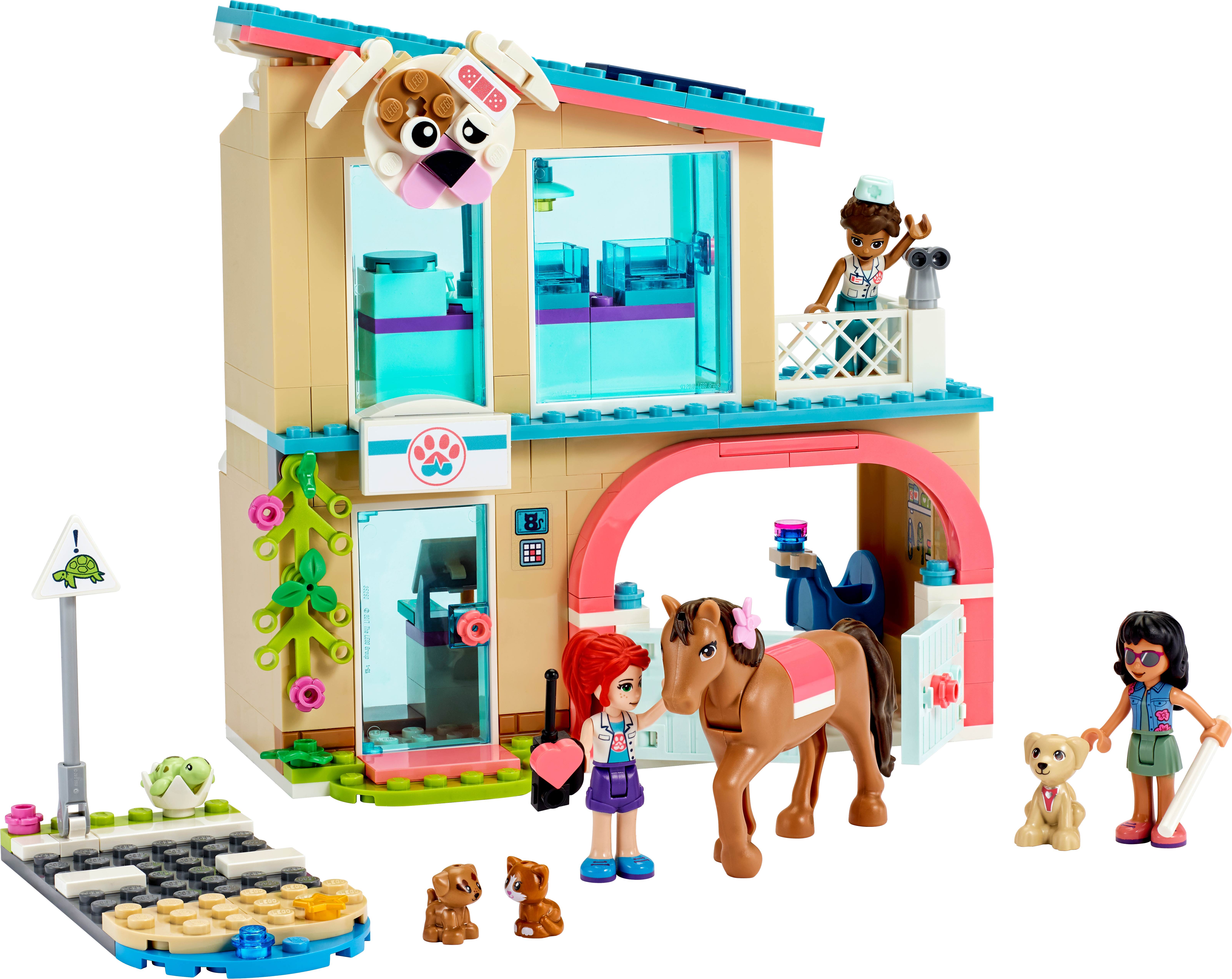 Do you know a kid who loves character role play and caring for animals? The Heartlake City Vet Clinic (41446) is just the creative gift for them! It comes with a total of 8 yes, 8! LEGO Friends characters, including mini-dolls and a range of baby animal toys, so kids can play out any role they want. Packed with features to spark hours of playThe model comprises a reception area, a stable for LEGO Friends Mia's horse, an examination room stocked with children's vet kit and a look-out balcony. The set also comes with a road scene to add an element of rescue drama to the LEGO Friends animal play. Kids can pretend to be Savannah bringing her guide dog in for a check-up, look after the cute baby animals in the clinic or act out an exciting horseback rescue. And as with all the popular Heartlake City toys, boys and girls can explore their passions in the company of their BFFs. Kids can channel their love of creatures into creative play with the Heartlake City Vet Clinic (41446), where they can be the hero of the day, or simply care for animals in need.