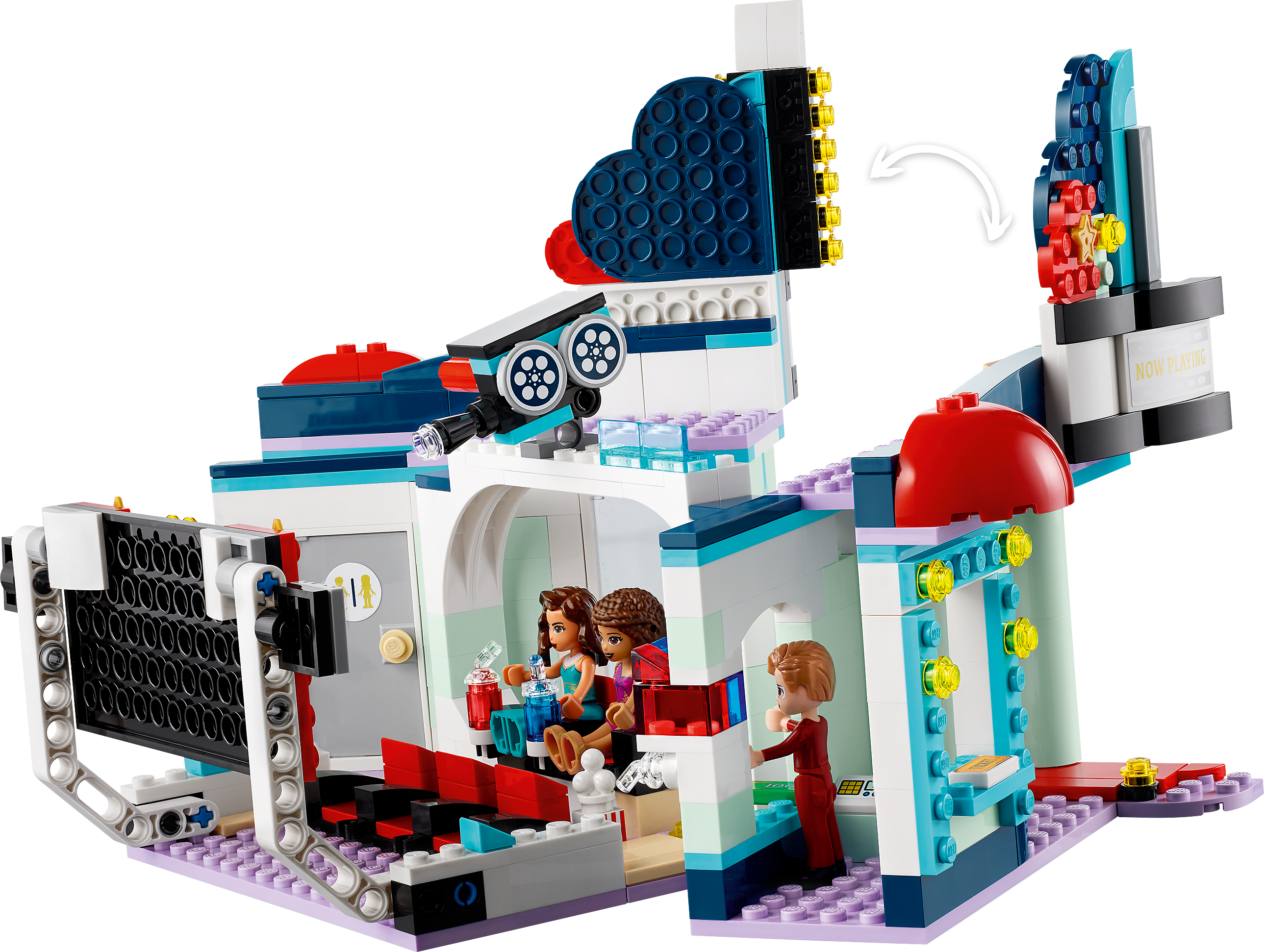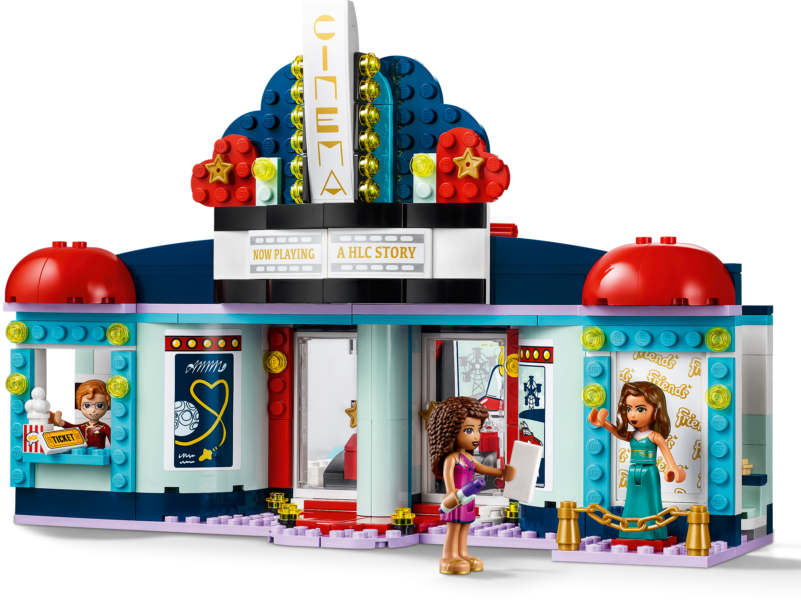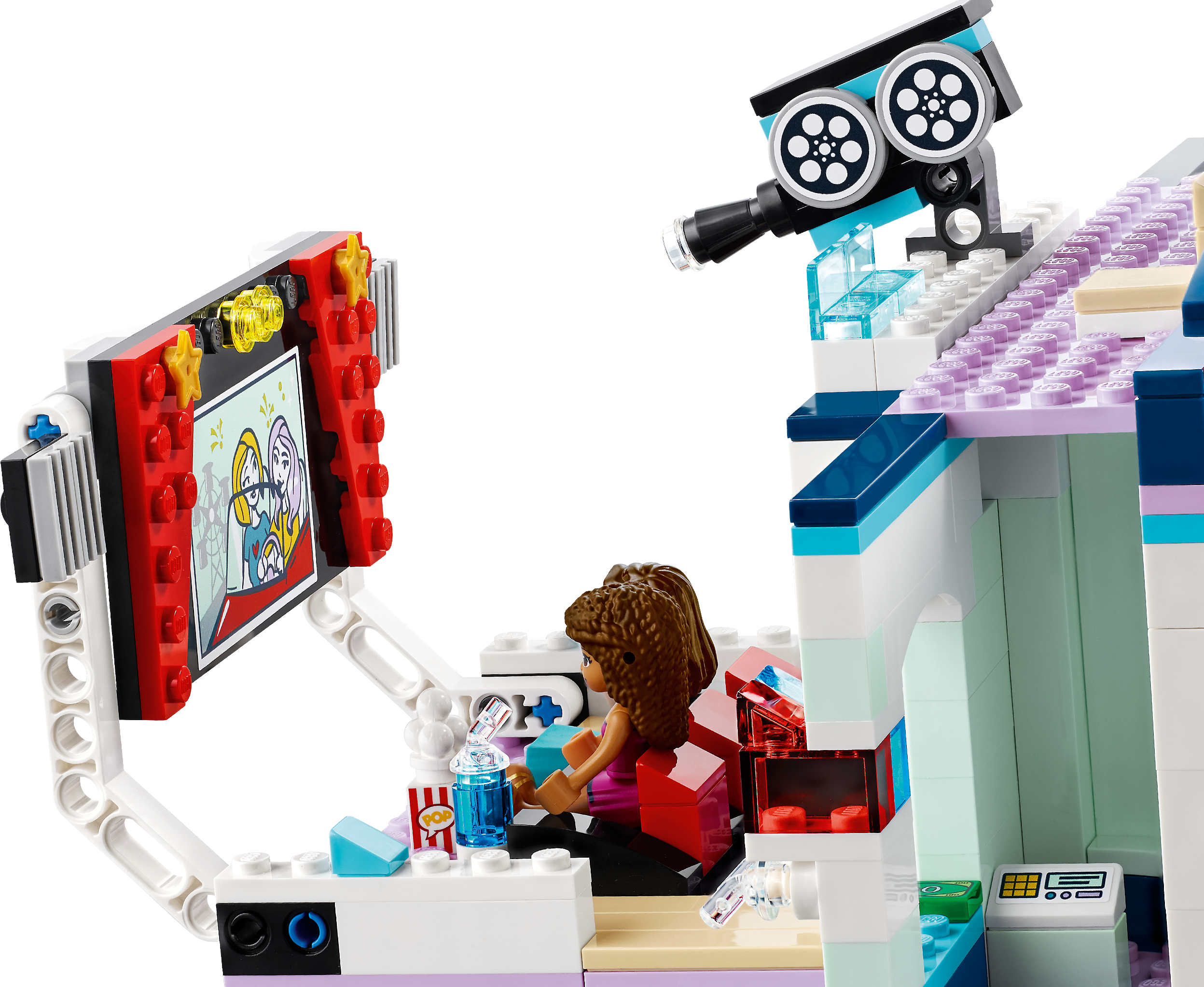 Treat kids to a red-carpet play experience as they imagine attending a movie premier at the LEGO Friends Heartlake City Movie Theater (41448).This gift for kids features an art deco-style cinema packed with authentic details, such as a VIP area, popcorn kiosk and slushy cups. It comes complete with a starlet, ready to sign autographs for adoring fans. Everything in a toy a kid needs to transport them to a glamorous night at the movies. In the director's chairThe model is hinged so kids can open it out to reveal a VIP screening room with exclusive seats for 5 of their most fabulous friends. The characters can view the film on the screen, but this also flips to accommodate a cell phone, so kids can play director by showing their very own movies. Realistic role-play adventures: LEGO Heartlake City birthday gifts for kids come packed with real-world details and relatable characters. They encourage kids to conjure up a creative world of role-play fun, alone or with their friends and family. Dazzle a movie-mad youngster with LEGO® Friends Heartlake City Movie Theater (41448). It’s premier night at this vintage-style cinema, with a red carpet and a glamorous LEGO Friends movie star! This hinged toy playset features a ticket desk and red-carpet area on one side and opens out to form a screening room, restroom and popcorn kiosk. Includes LEGO® Friends Andrea and 2 other mini-dolls. Kids can role-play superfan Andrea or movie star Amelia, or they can pretend to sell tickets andpopcorn. Movie-mad kids can imagine they’re a VIP watching the premier or operate the toy projector. The Heartlake City cinema lets kids screen their own movie creations for the mini-dolls by resting a cell phone against the screen, which also flips to support a tablet. As with all LEGO® Friends sets, this model is packed with cool accessories to make the action come alive – this set includes tickets, paper and pen, popcorn, slushy cups and cash bills. Put a smile on the face of movie-mad kids aged 7+ with a birthday, Christmas or special-occasion gift of this interactive Heartlake City movie theater toy. Measuring over 6.5 in. (17 cm) high, 10 in. (27 cm) wide and 7 in. (19 cm) deep, this kids’ movie toy makes a head-turning centerpiece that will take pride of place in any bedroom. LEGO® Friends toys come with relatable characters and are packed with adorable toy accessories to set imaginations soaring. All new LEGO® Friends sets meet stringent industry standards toensure they are compatible, and connect and pull apart consistently every time – it’s been that way since 1958. Popular LEGO® toys are tested to the max to make sure they meet stringent global safety and quality standards.