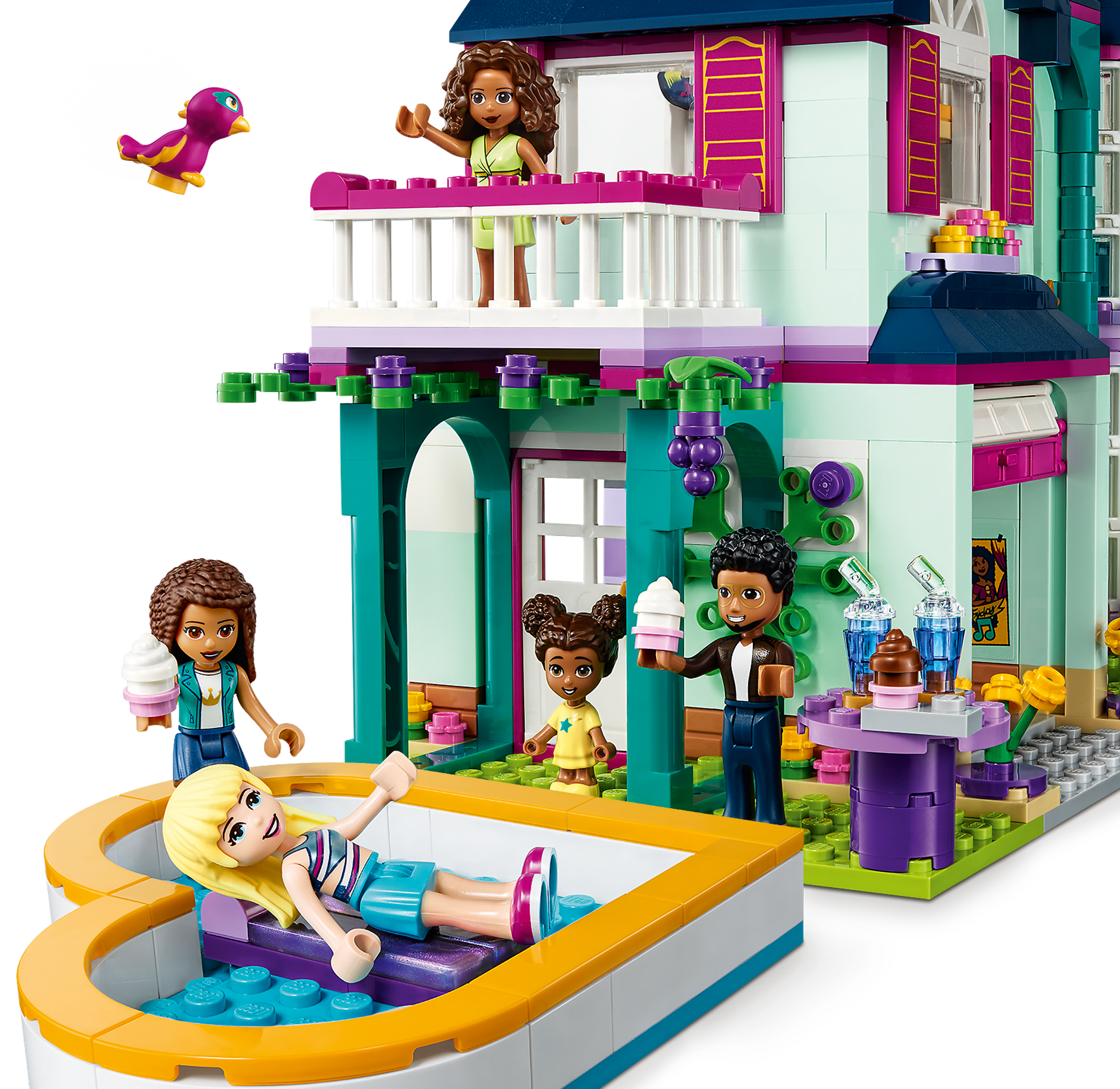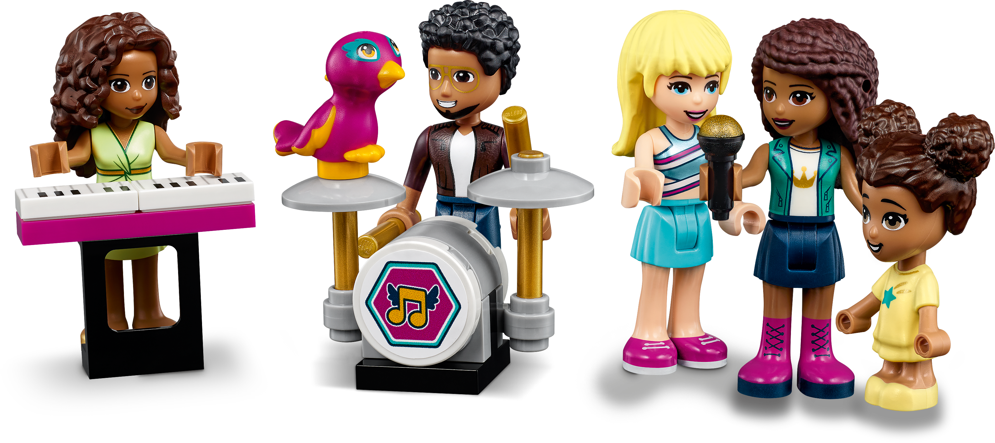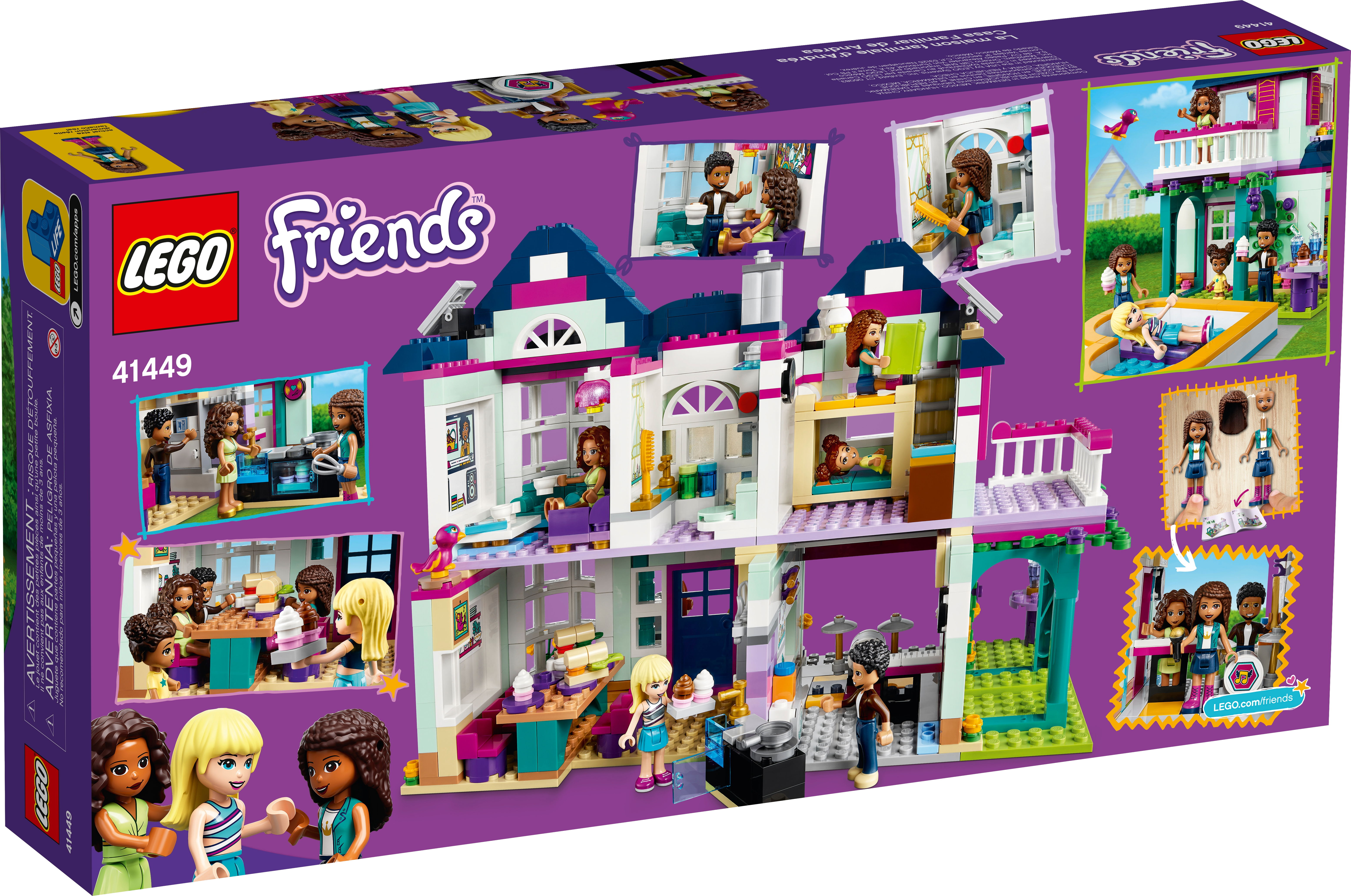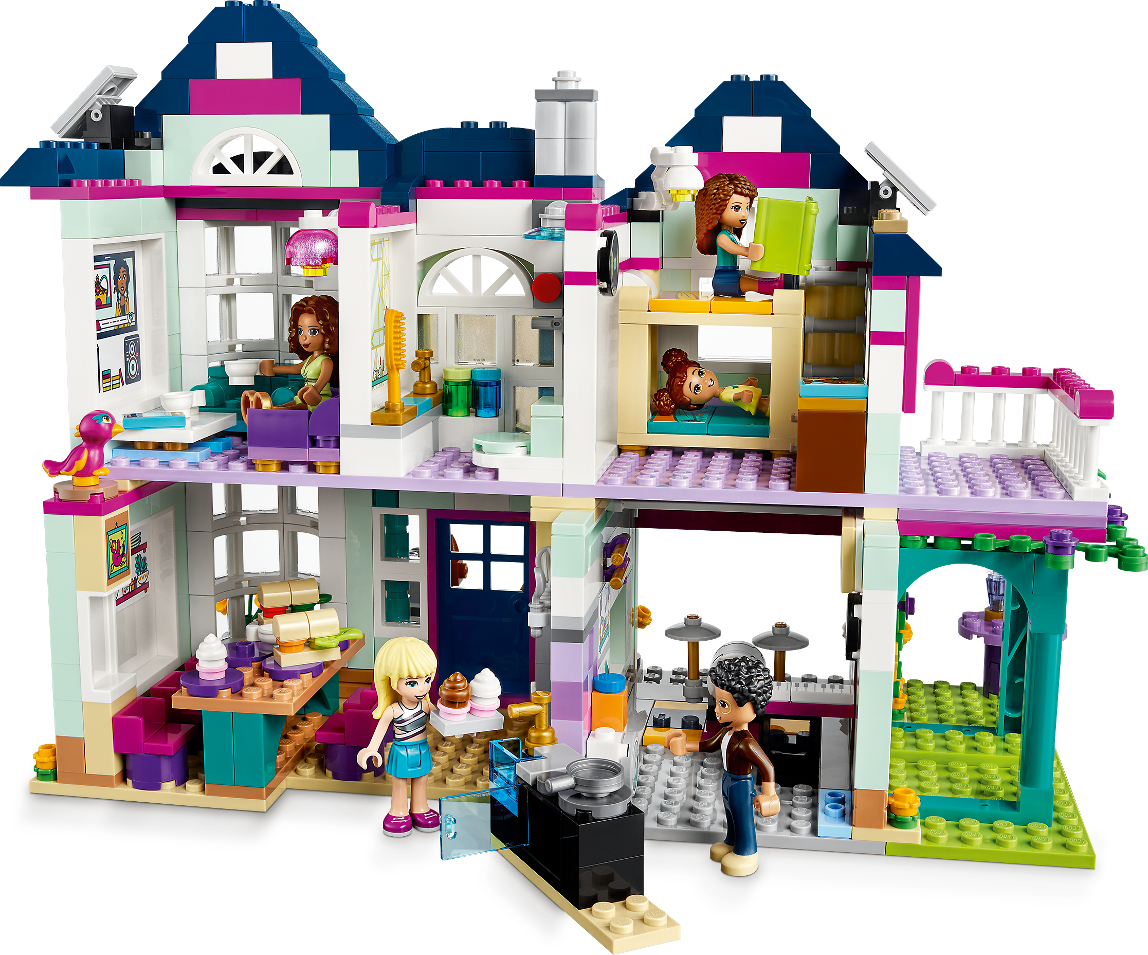 For a gift with real impact, try LEGO Friends Andrea s Family House (41449). Fantastically detailed, from the solar panels on the roof to the mini keyboard in the garage studio, this premium playset will delight LEGO Friends fans and wow buddies who come to play. Rooms galore to exploreKids can hang out in Andrea's bedroom or make cupcakes in the kitchen with the cute cooking accessories. There's a heart-shaped pool and a cool garage studio with musical toys where Andrea and her friends can put on a show for the neighborhood! The roof features solar panels, helping the family live in a modern way, and the top floor is removable, making it easy for little fingers to explore the features. So many parts to play! The set comes with 5 LEGO Friends mini-dolls including Liz, Andrea's little sister, a new-for-January-2021 micro-doll so there are limitless ways for kids to play out LEGO family life. Introduce kids to Heartlake City where kids will find a best friend who's just like them! Wow little builders with the 3-story LEGO® Friends Andrea’s Family Home (41449). Kids can explore the cool features and act out family life within the walls of this premium-quality playset. With 5 LEGO® Friends mini-dolls, this beautifully styled set includes a whole family of characters, including a new-for-January-2021 micro-doll, to inspire limitless family role-play fun. Kids can put on a music show for the neighbors from the garage studio, hang out in Andrea's bedroom, pretend to take a dip in the pool or make a meal in the modern kitchen diner. Environmentally conscious kids will love how this house is fit for the future, thanks to its solar panels on the roof. Like all LEGO® Friends house sets it comes packed with cool accessories. Cleverly designed to make play easier, the playset's top floor is removable so the downstairs level is accessible. In the kitchen the work bench swings out to let little fingers in. Looking for a birthday gift to impress a kid who's into dolls’ houses? Boys and girls aged 6+ will love to unwrap this premium toy and share the playing-house fun with their friends. Measuring over 7 in. (20 cm) high, 10 in. (26 cm) wide and 4 in. (12 cm) deep, this creative gift makes an eye-catching display without taking up too much room. Introduce trend-setting kids to the welcoming world of LEGO® Friends, where everyone's included and every face fits. This LEGO® house playset meets stringent industry standards to ensure its bricks are compatible and connect and pull apart consistently every time – it’s been that way since 1958. The bricks and components of this mini-dolls’ house are tested to the max to ensure they meet stringent global safety and quality standards.