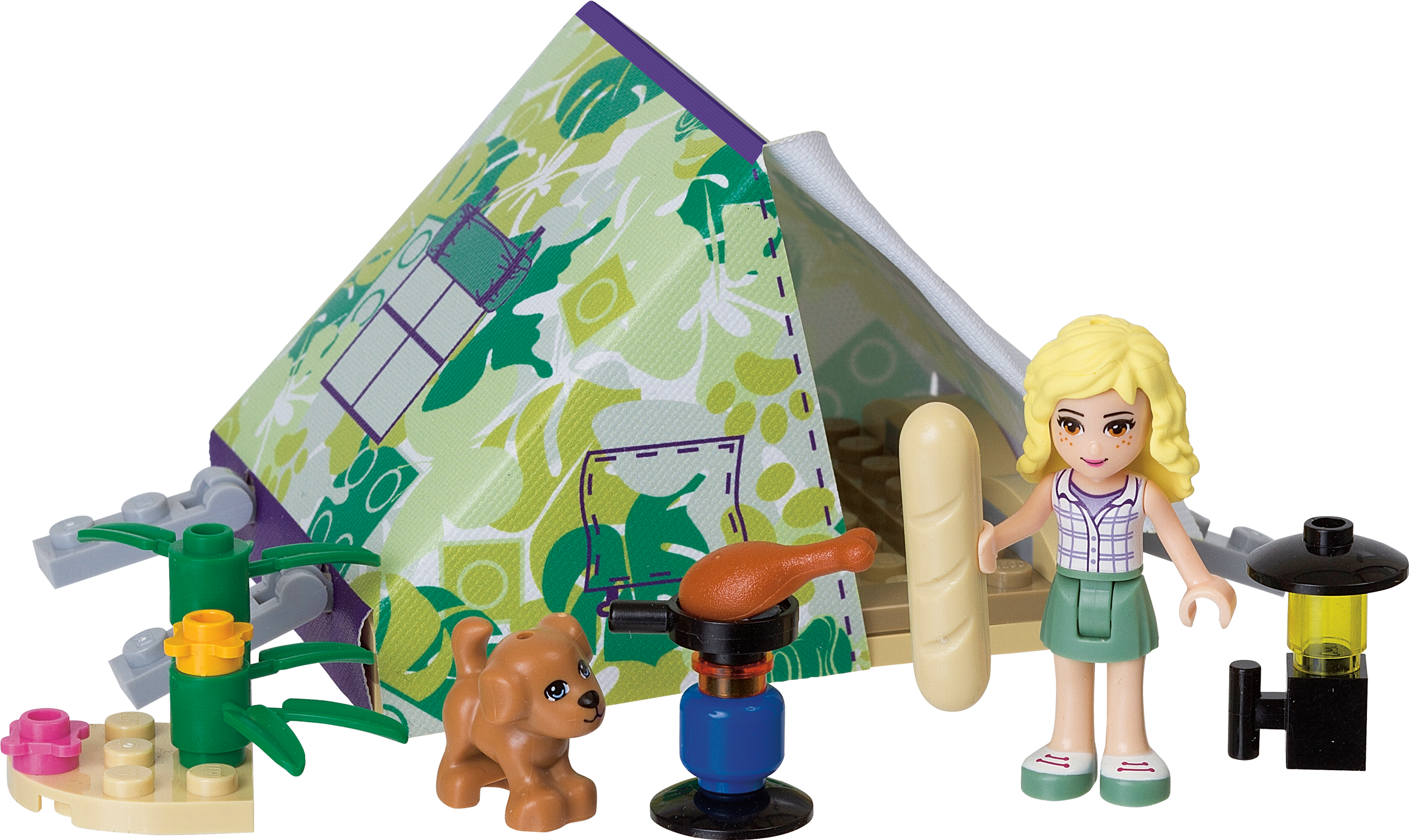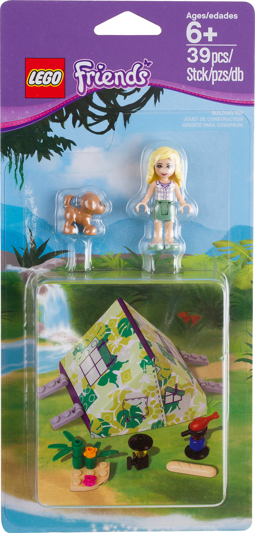 Camp out and explore the jungle scenery! Start an exciting jungle adventure with the LEGO® Friends Jungle Accessory Set. It has everything you need to camp out, so find a pretty spot to pitch your tent and explore the jungle scenery with the dog. Combine with the 851325 LEGO® Friends Jungle Playmat for more adventures! Includes a LEGO Friends mini-doll.
