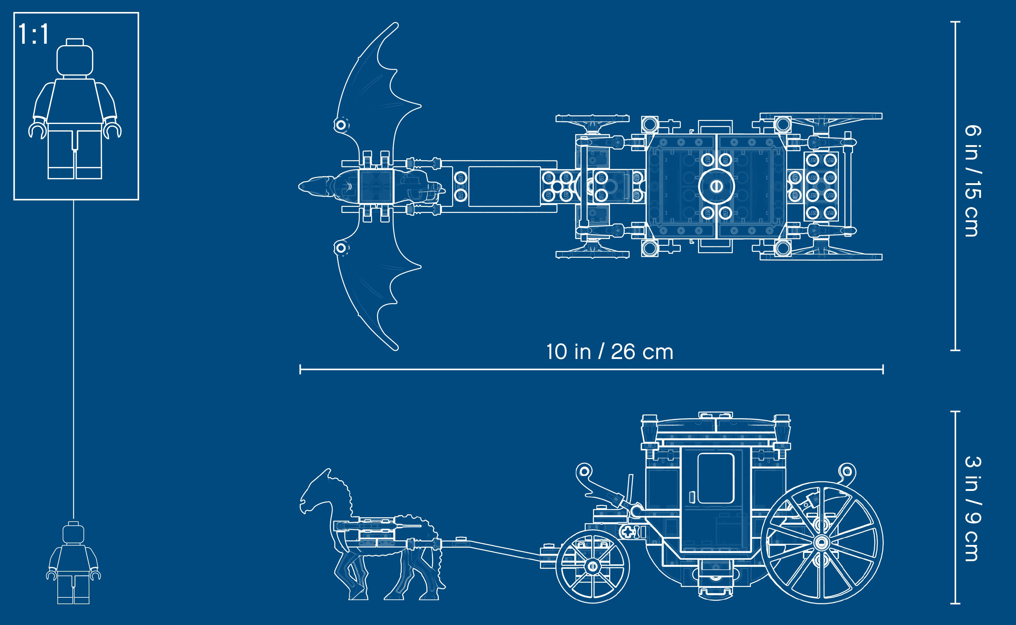 Carriage with Thestral measures over 3” (8cm) high, 9” (25cm) long and 2” (7cm) wide.