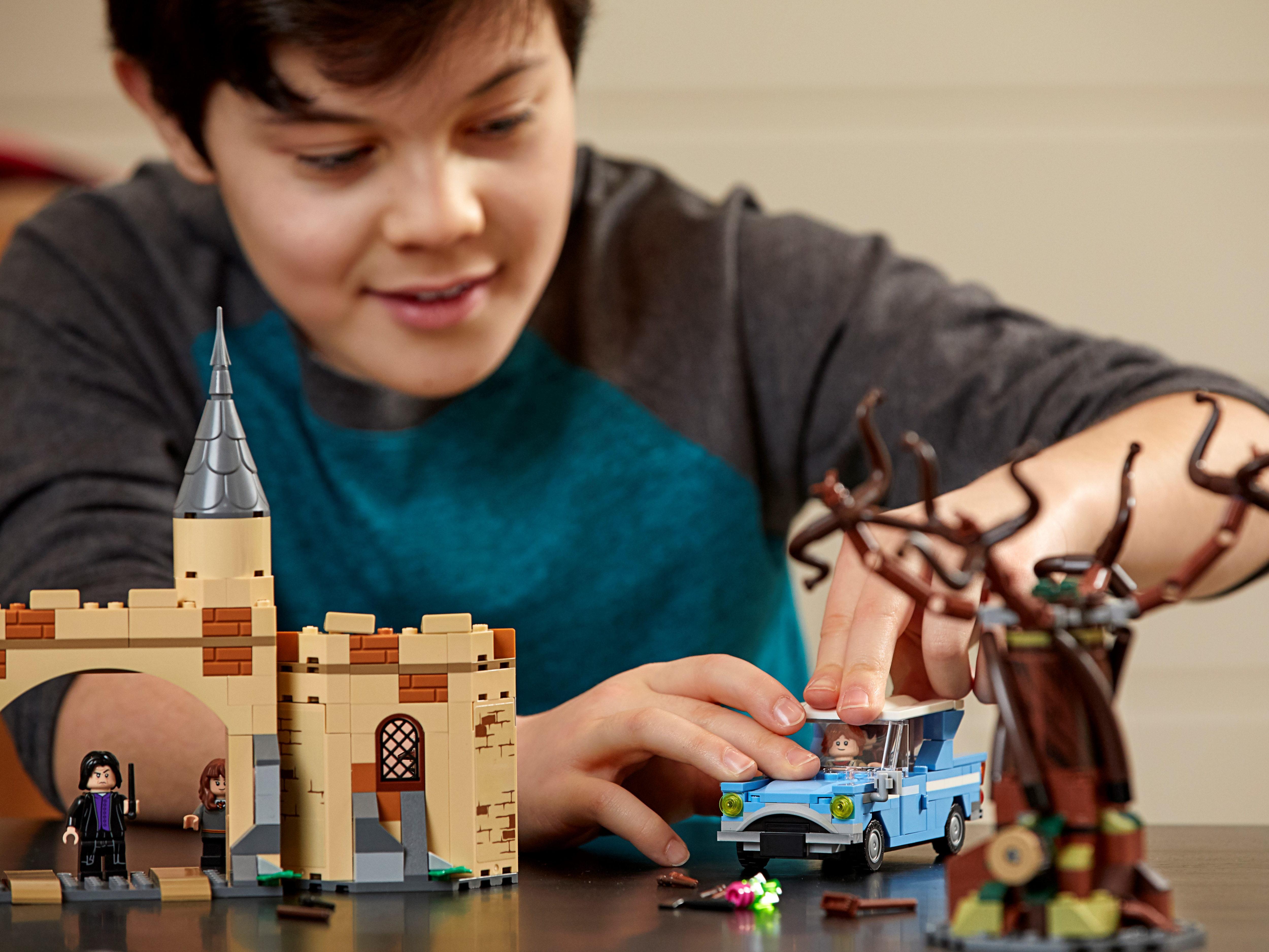 Features the buildable Whomping Willow™ tree, Flying Ford Anglia car and Hogwarts™ castle section.