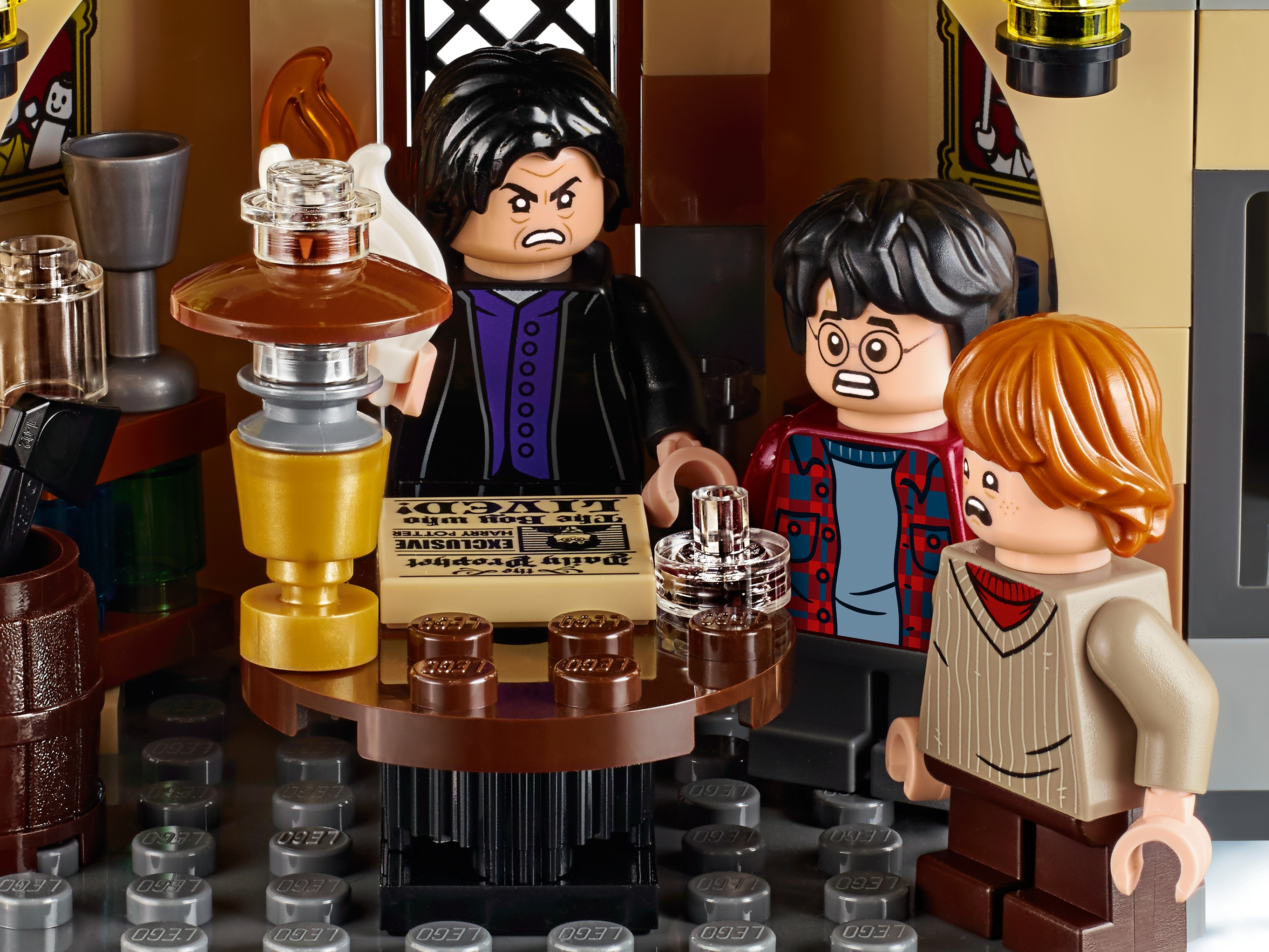 Includes 6 minifigures: Harry Potter™, Ron Weasley™, Hermione Granger™, Seamus Finnigan, Argus Filch and Severus Snape™, plus a Hedwig™ owl figure.