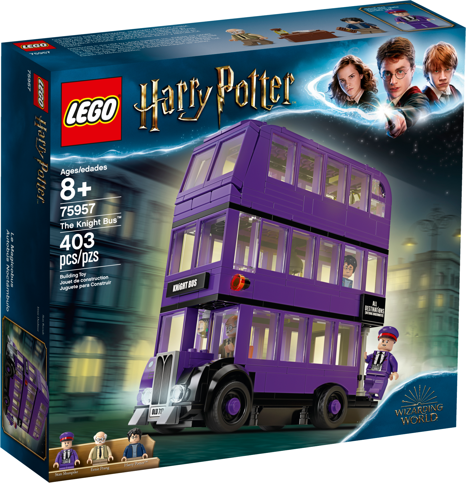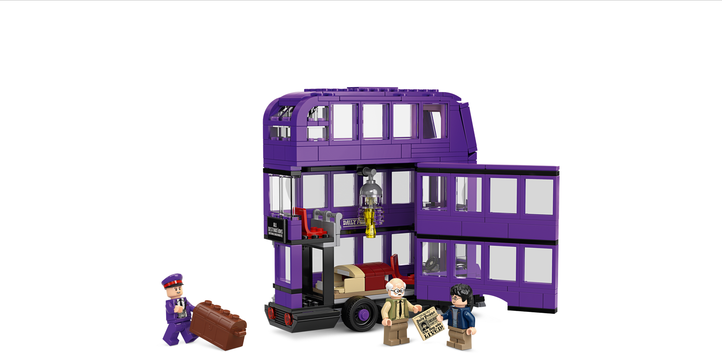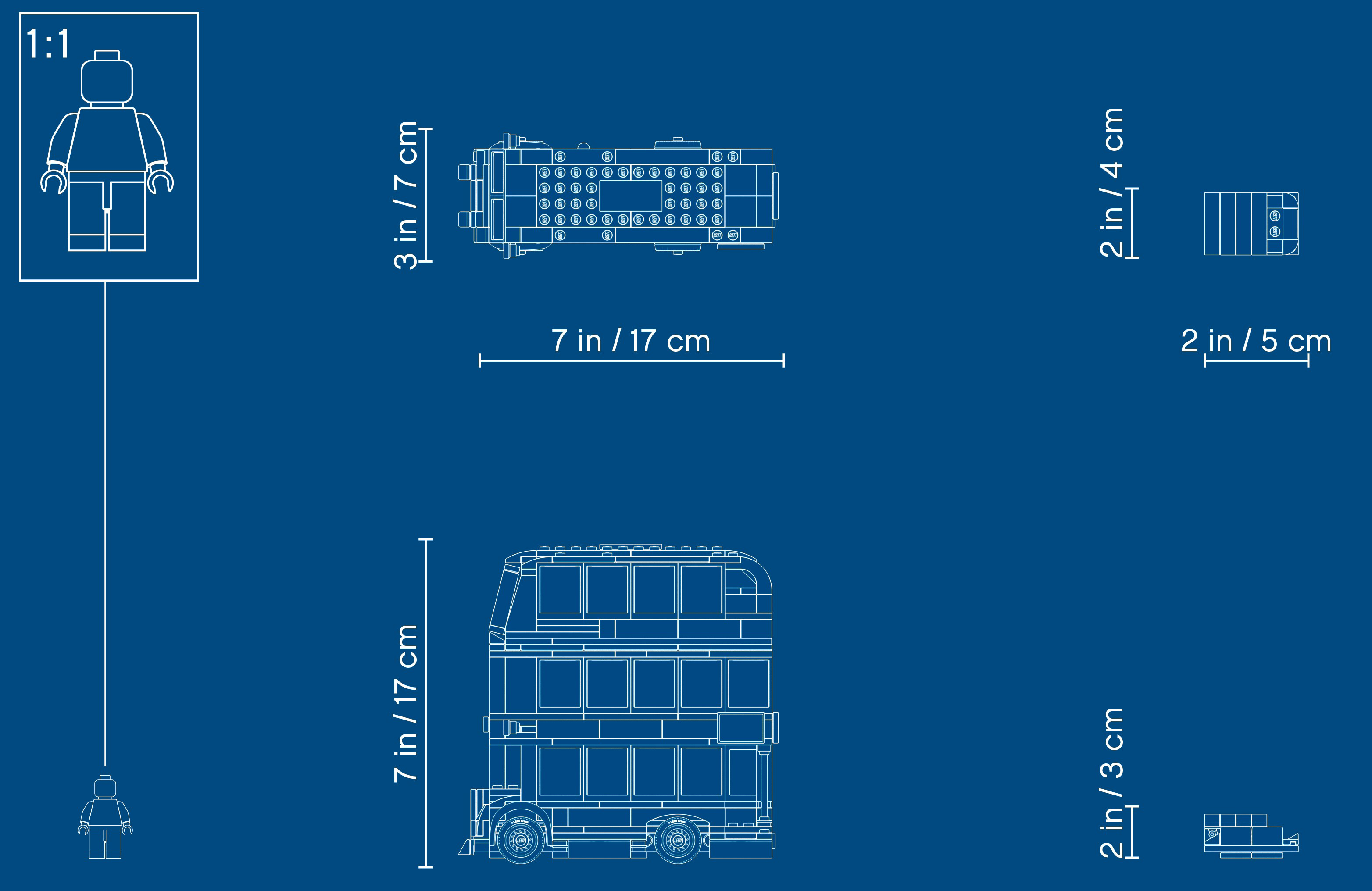 Includes 3 new-for-June-2019 LEGO® Harry Potter™ minifigures: Harry Potter, Stan Shunpike and Ernie Prang. This 3-level LEGO® bus features an opening hinged side panel and a removable roof to maximize play potential. Also includes a sliding bed and swinging chandelier that move as the bus swerves and turns. The cheeky Shrunken Head and Harry Potter's chest containing a wand, letter, chocolate bar and a potion bottle add to the action and inspire imaginative play. The Knight Bus™ measures over 6” (16cm) high, 6” (16cm) long and 2” (6cm) wide.