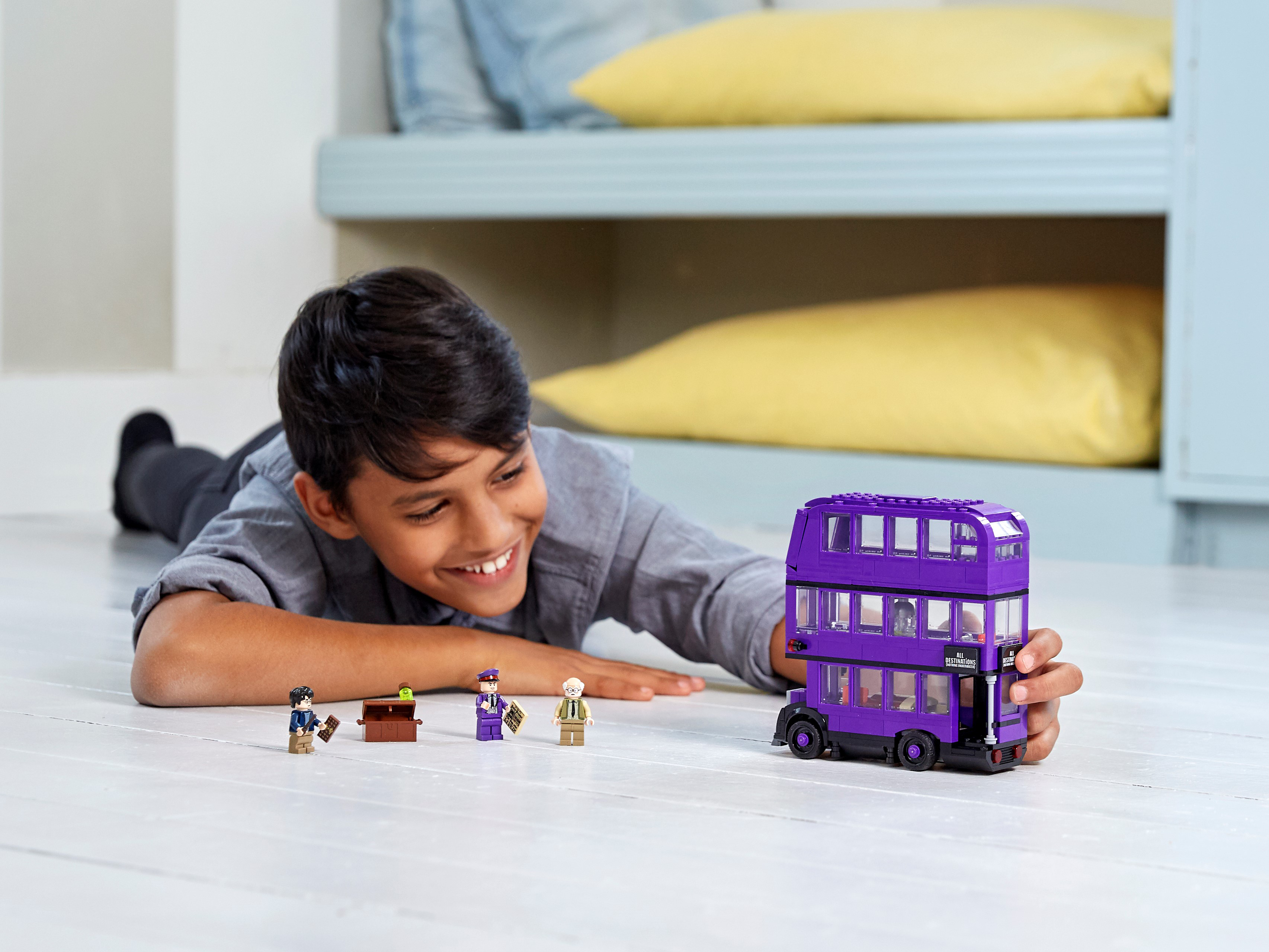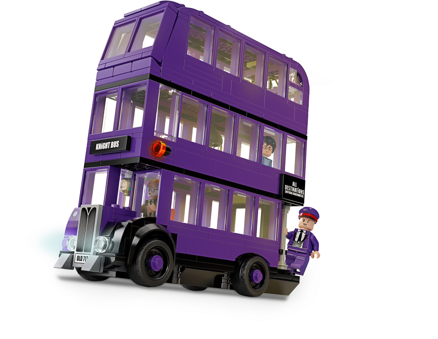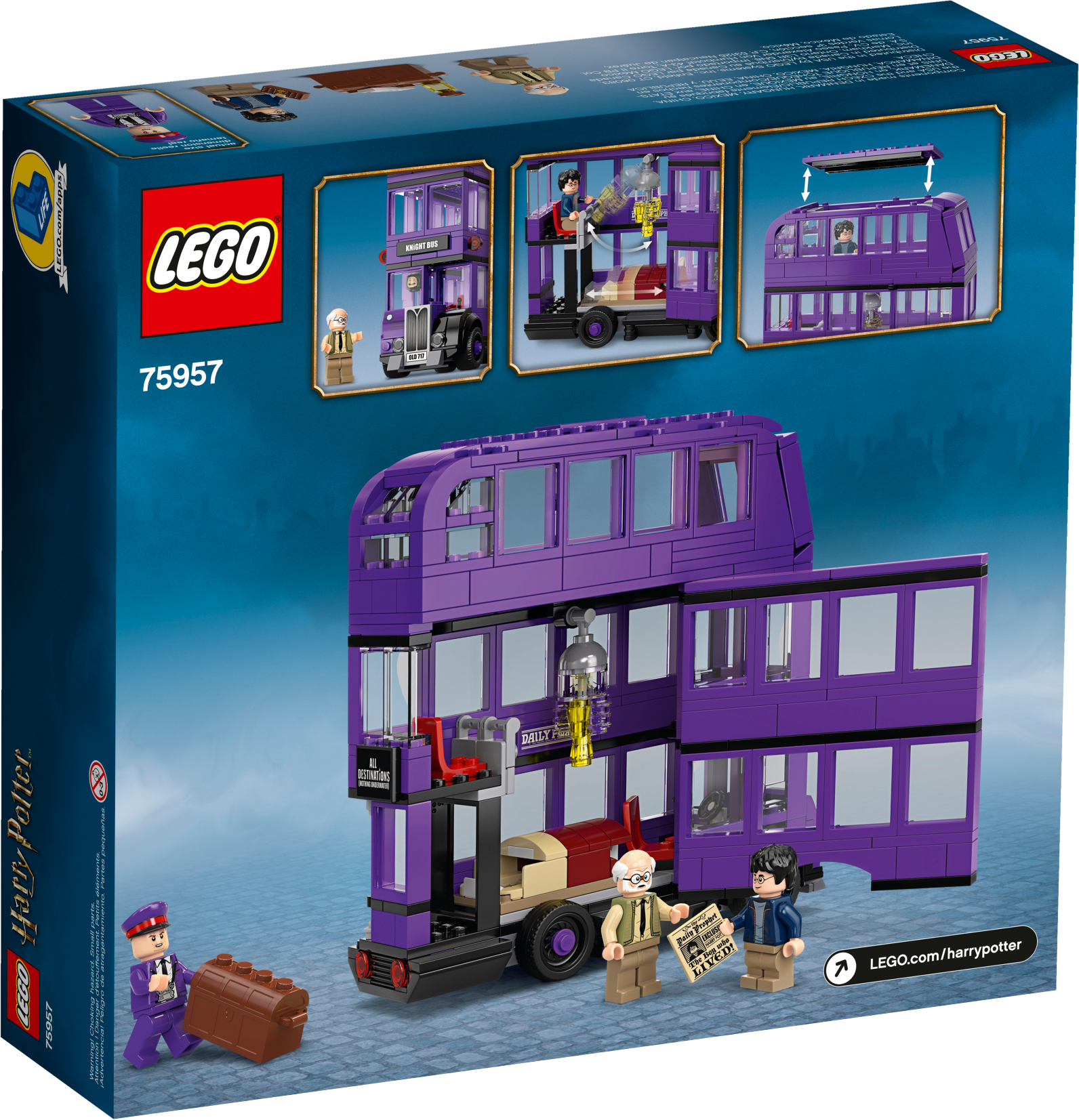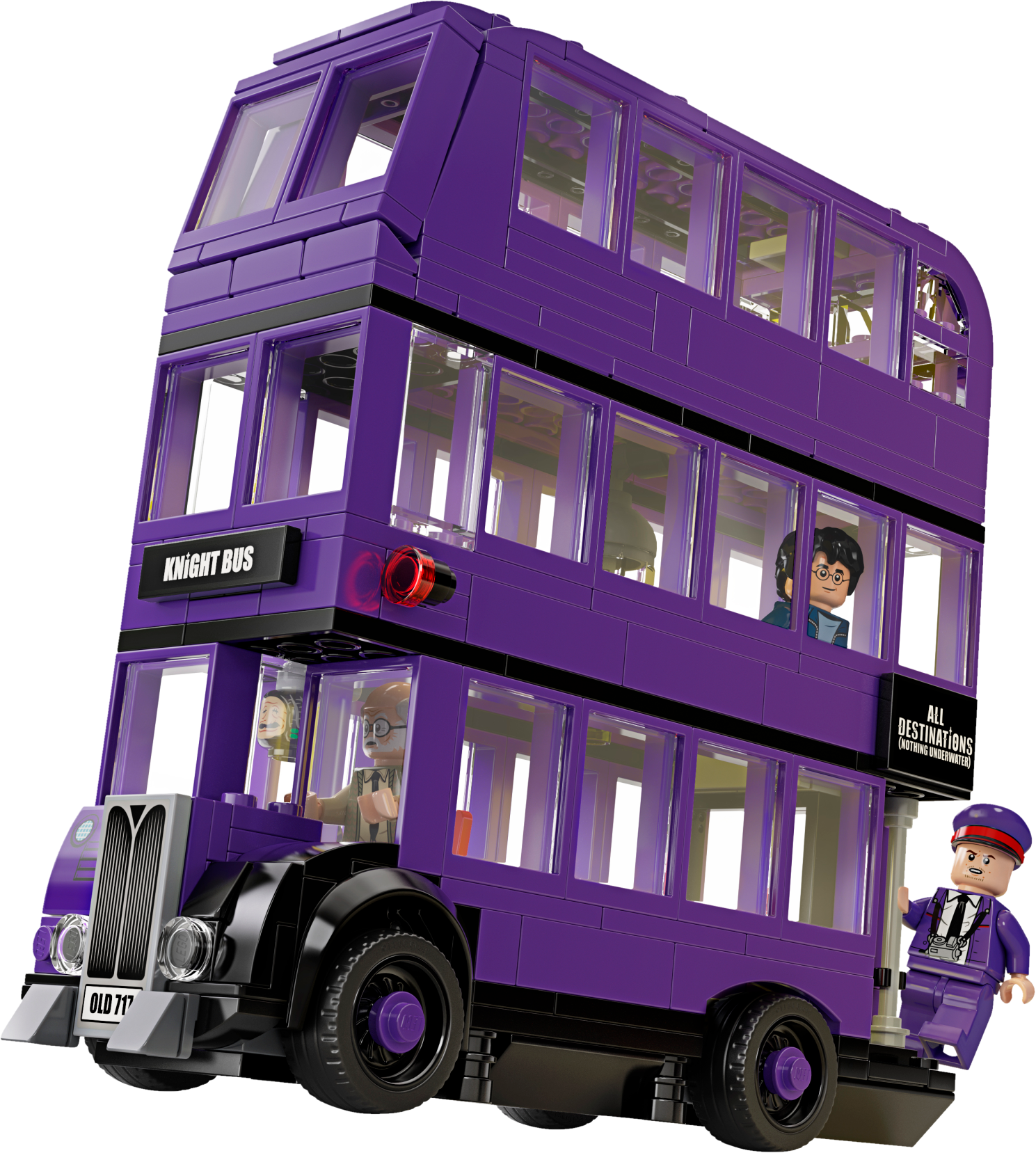 Includes 3 new-for-June-2019 LEGO® Harry Potter™ minifigures: Harry Potter, Stan Shunpike and Ernie Prang. This 3-level LEGO® bus features an opening hinged side panel and a removable roof to maximize play potential. Also includes a sliding bed and swinging chandelier that move as the bus swerves and turns. The cheeky Shrunken Head and Harry Potter's chest containing a wand, letter, chocolate bar and a potion bottle add to the action and inspire imaginative play. The Knight Bus™ measures over 6” (16cm) high, 6” (16cm) long and 2” (6cm) wide.