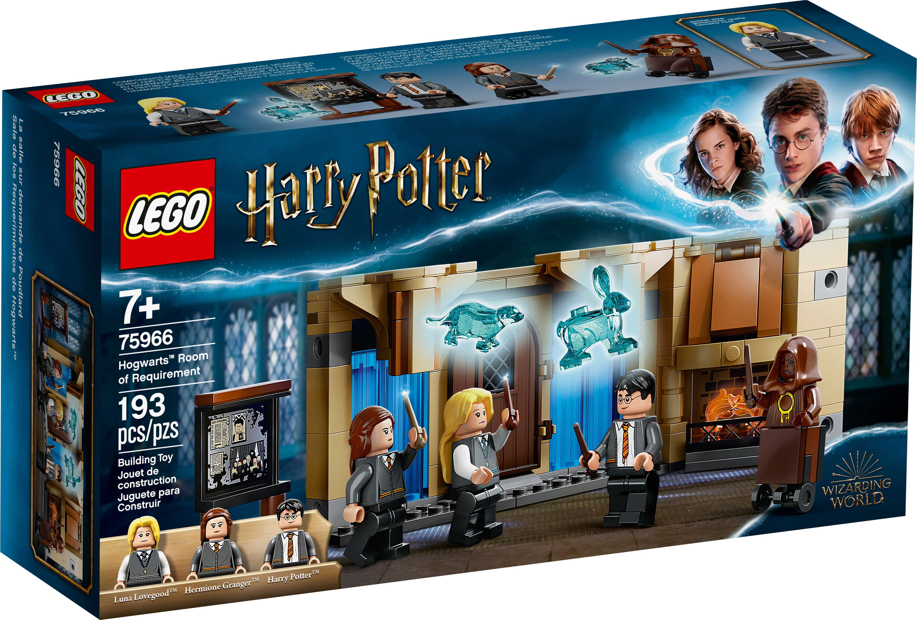 LEGO® Harry Potter™ Hogwarts™ Room of Requirement (75966) transports young witches and wizards into a magical world as they join a group of friends on a secret mission to overcome powerful dark magic.Harry Potter and the Order of the Phoenix™ role-play toyFans of Harry Potter can recreate classic movie moments and conjure up imaginative adventures of their own with Harry, Hermione Granger™ and Luna Lovegood™. Dumbledore's Army are practicing spells in the mysterious Room of Requirement. Kids can help Harry teach the Patronus charm. There’s a Hare for Luna and an Otter for Hermione. Power shooters fit into the minifigures’ hands and fire at the mechanical Death Eater toy. With a host of cool features and accessories, the magical fun will never end!Magic, mystery and endless adventureLEGO Harry Potter sets recreate action-packed scenes from the movies. With favorite characters, mythical creatures and familiar locations, these enchanting playsets bring the Wizarding World to life!Kids can role-play favorite Hogwarts™ stories with Dumbledore’s Army as they practice spells for their secret mission to defeat the forces of evil.Includes 3 minifigures with wands – Harry Potter™, Hermione Granger™, Luna Lovegood™ – 2 animal Patronuses, power shooter, dummy Death Eater and a detailed room with a pillar, board and fireplace.Kids slide a panel then enter a hidden door for secret Defense Against the Dark Arts practice with Harry Potter™ and friends. There they can conjure up Patronuses, fire shooters and use cool features for imaginative fun.The LEGO® Harry Potter™ Hogwarts™ Room of Requirement (75966) children’s building toy will transport boys and girls aged 7 and up to a world of magical make-believe and imaginative adventures at Hogwarts School of Witchcraft and Wizardry.The full model, when connected, measures over 2" (7cm) high, 7" (19cm) long and 2" (6cm) deep. The different sections of the set can be attached in a variety of configurations to inspire new ways to play.This cool Harry Potter™ toy doesn’t need batteries, so kids get creative fun, imaginative role play and hands-on action and adventure whenever and wherever they want it.Simple, clear instructions get kids building and playing right away – and the fun doesn't stop there. The 3 cool minifigures look great on display or incorporated with other LEGO® Harry Potter™ sets.LEGO® Harry Potter™ toys bring thrilling scenes from the movies to life! With popular characters, amazing creatures and cool locations, these feature-packed sets put the world of Harry Potter into kids’ hands.Ever since 1958, LEGO® bricks have met the highest industry standards to ensure they are consistent, compatible and connect and pull apart easily every time – no need to use magic!LEGO® bricks and pieces are dropped, heated, crushed, twisted and analyzed to ensure every building set meets the highest safety standards in the world.