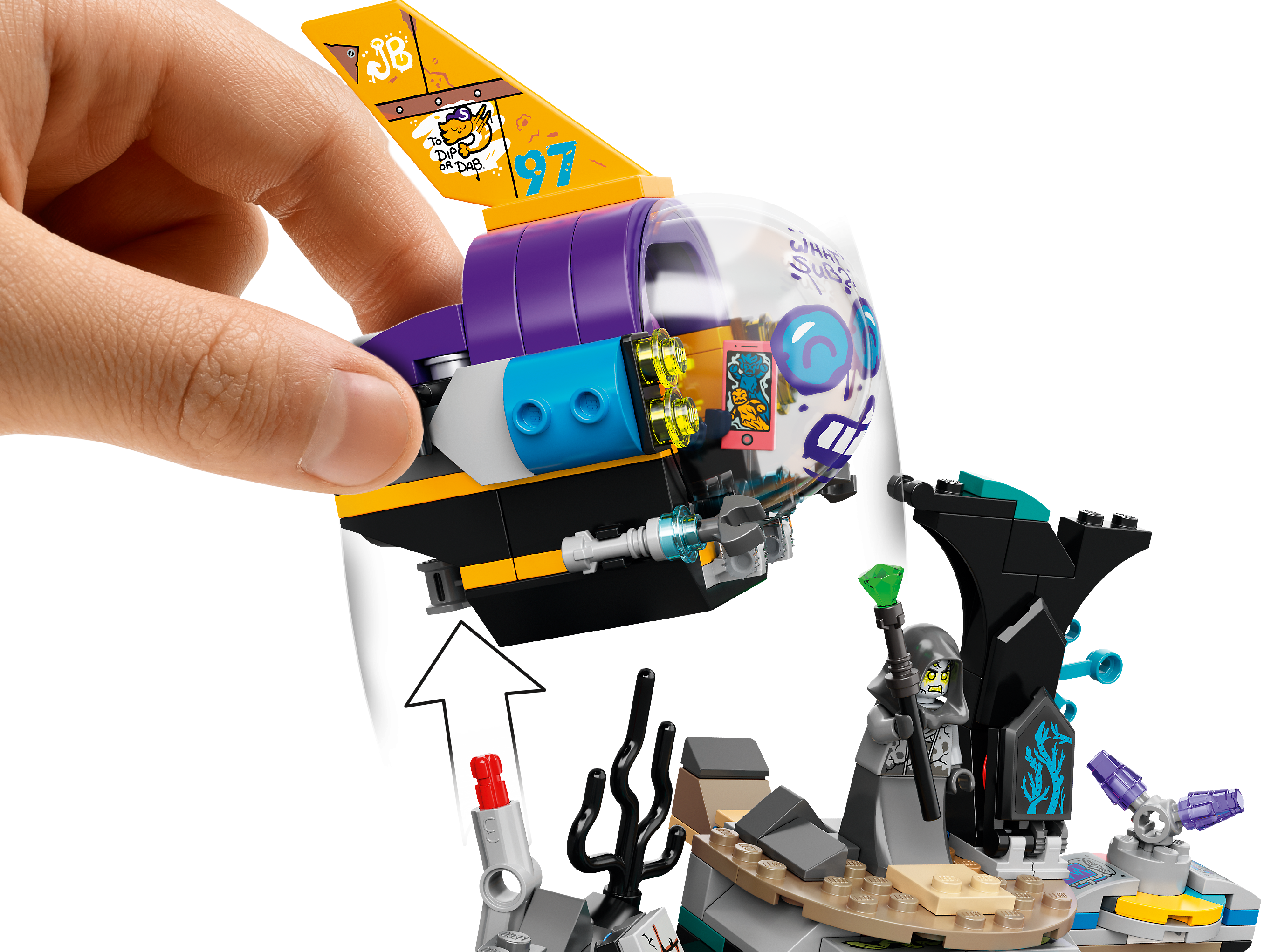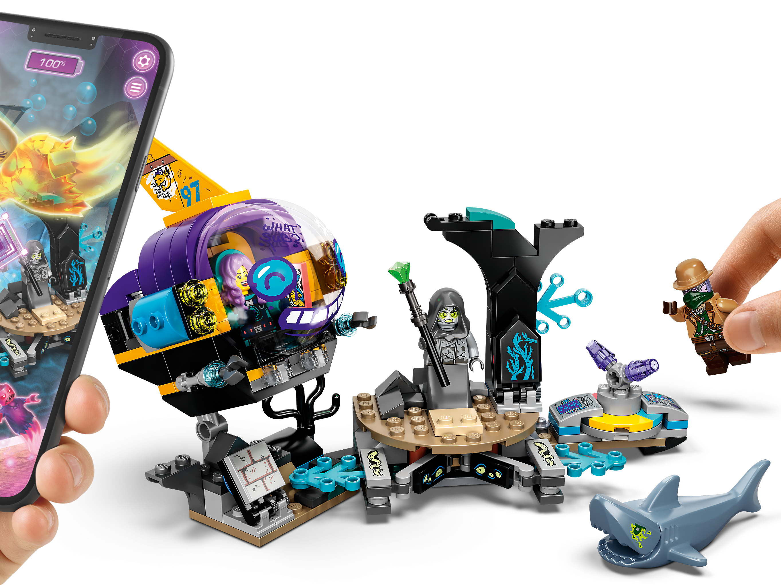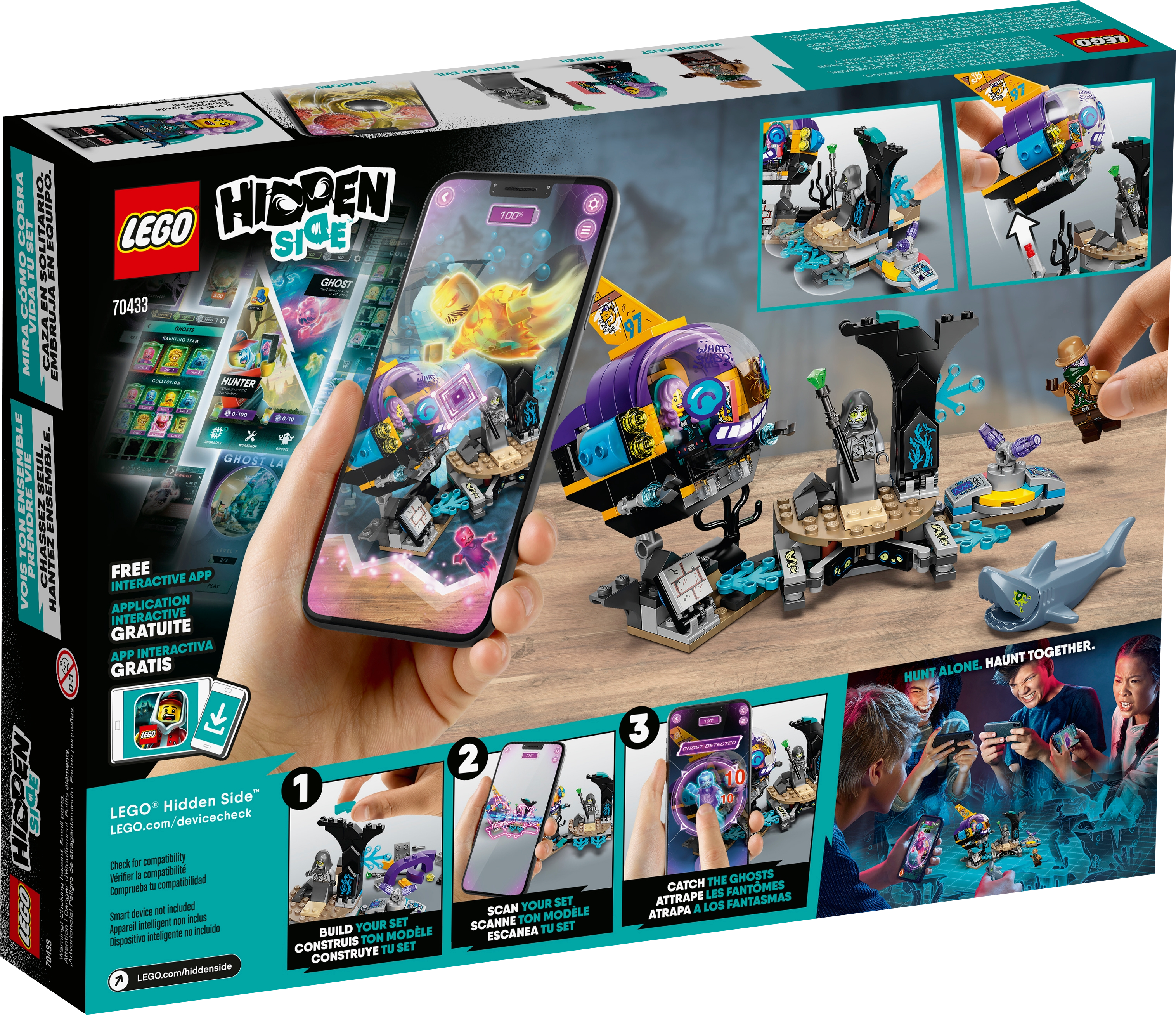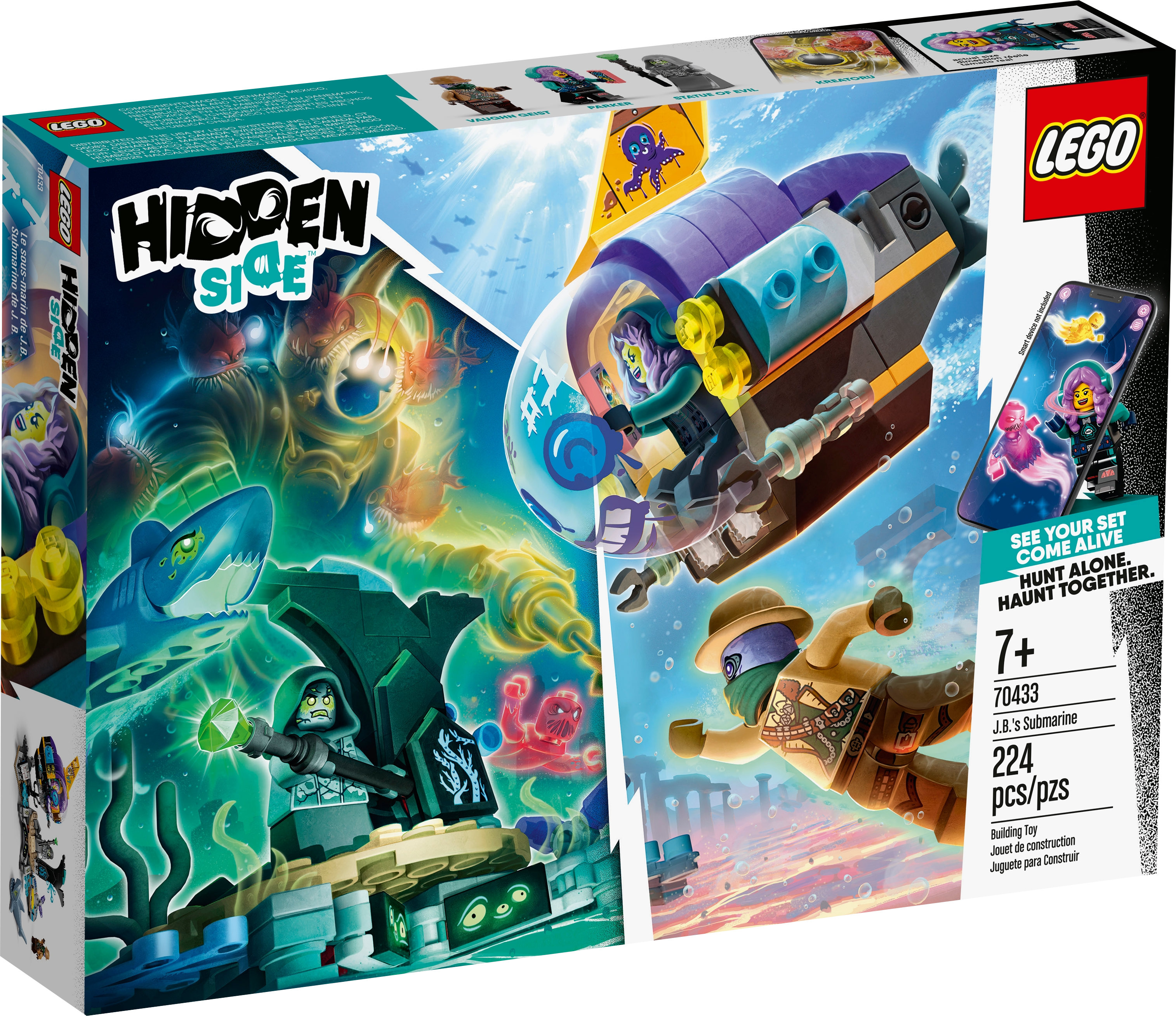 Welcome to the Hidden Side, where physical and digital worlds merge. This LEGO® Hidden Side J.B.’s Submarine (70433) playset combines a buildable submarine and seabed setting with advanced app technology for an incredible single or multiplayer augmented reality (AR) play experience.Amazing interactive building toyThis J.B.'s Submarine playset reveals a haunted deep-sea digital world when viewed through a smart device equipped with the free LEGO Hidden Side AR app. Kids then get to explore, hunt ghosts, solve mysteries and battle boss ghost Kreatoru. And with Parker, Vaughn Geist and Statue of Evil minifigures, plus a shark figure, kids can also dive into a world of creative hands-on play.An ever-changing LEGO Hidden Side experienceLEGO Hidden Side sets bring interactive AR play to LEGO models. This mixed-reality experience is constantly enhanced through new content, ghosts and special events. Install the free Hidden Side AR app for selected smartphones and tablets and scanthis model to bring it to life!Youngsters get to combine physical and digital play in an amazing, single or multiplayer, augmented reality (AR) experience with this LEGO® Hidden Side set, featuring J.B.’s submarine and a Bay of Souls seabed setting.What’s in the box? This augmented reality (AR) LEGO® playset includes a digitally interactive Hidden Side submarine toy and seabed setting, Parker, Vaughn Geist and Statue of Evil minifigures, plus a shark figure.The J.B.'s Submarine model reveals a haunted deep-sea digital world when viewed through a smart device equipped with the free LEGO® Hidden Side AR app. Kids then get to solve mysteries, find cool items and battle ghosts.This LEGO® Hidden Side J.B.’s Submarine playset makes a great Christmas, birthday or any-other-day gift for LEGO fans and kids aged 7 and up who love creative and digital play!When built, this LEGO® Hidden Side J.B.'s Submarine (70433) model measures over 8" (21cm) high, 7" (19cm) long and 3" (10cm) wide.Battery-free building toy. The Hidden Side AR app is compatible with selected iOS and Android devices. Please check compatibility at www.LEGO.com/devicecheck. Children should ask parents' permission before going online.This LEGO® Hidden Side augmented reality (AR) building kit comes with easy-to-follow building instructions that are also available online – so tear open the brick bags and dive to the depths of Newbury's Bay of Souls!The LEGO® Hidden Side universe is set in the fictional town of Newbury, where ghosts haunt people and buildings. The augmented reality play experience is constantly enhanced through new content, ghosts and events.LEGO® Hidden Side playsets are designed to the highest industry standards and criteria. This ensures that the LEGO bricks and pieces are consistent, compatible and connect and pull apart easily every time.At the LEGO Group, we put our LEGO® Hidden Side bricks and pieces through rigorous tests to ensure every one of our toy playsets meets the highest global safety and quality standards.
