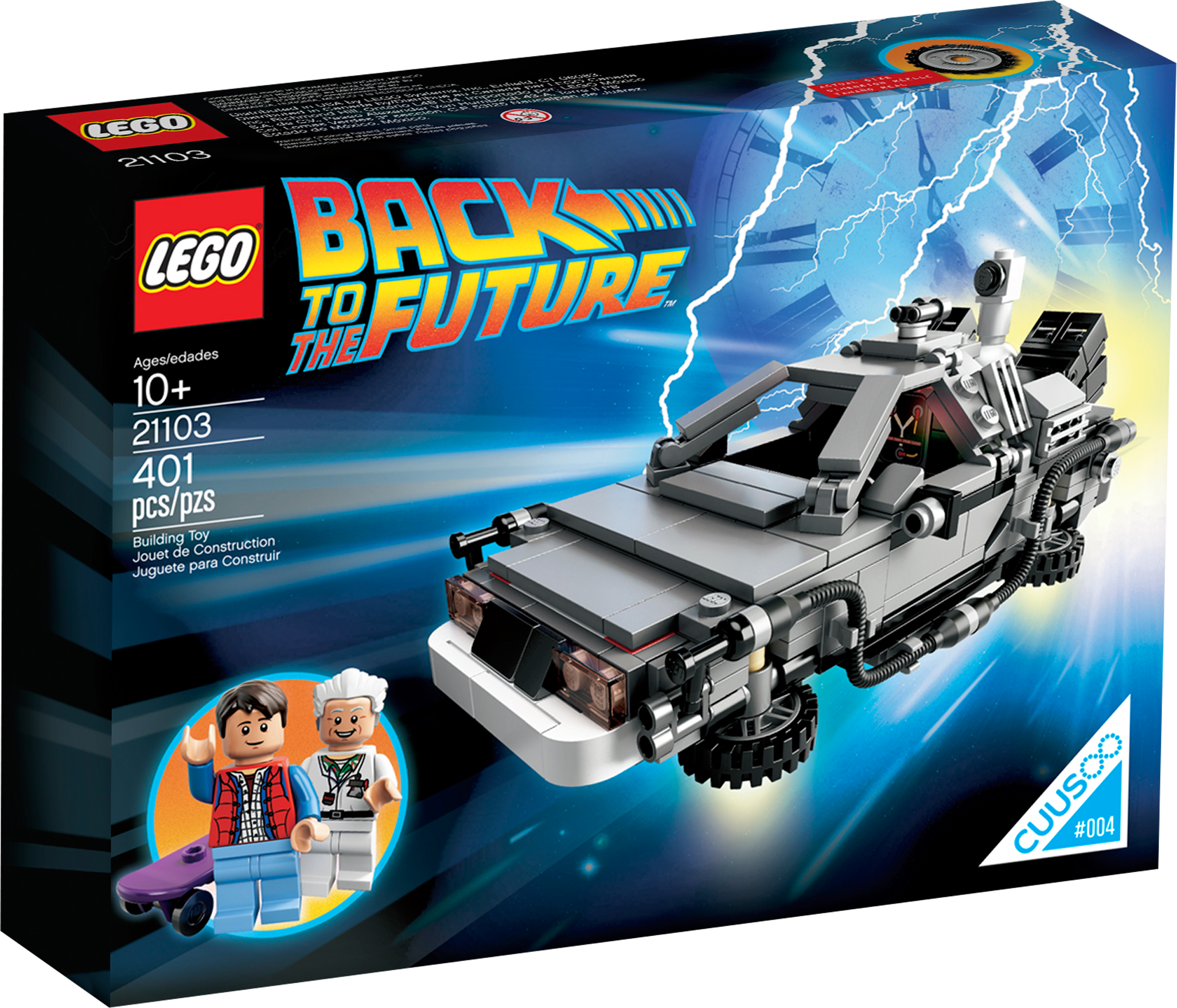Travel Back to the Future with the awesome DeLorean time machine! Build your very own miniature version of the iconic DeLorean time machine that Dr. Emmett ‘Doc’ Brown and Marty McFly famously used to travel Back to the Future! Selected by LEGO® CUUSOO members, this amazing model features lots of cool details, like opening gull-wing doors, fold-up wheels, flux capacitor, time travel display and 2 license plates. We’ve also included extra engines and wheels so you can recreate the different variants of the time-traveling car featured in the Back to the Future movies! Finally, this unique set also includes a fascinating booklet containing production notes, original images and fun details from the movies. Includes 2 minifigures: Marty McFly and Doc Brown.• Includes 2 minifigures: Marty McFly and Doc Brown• Features opening gull-wing doors, fold-up wheels, flux capacitor, time travel display and 2 license plates• Also includes Marty’s skateboard as well as extra engine and wheels• Customize the car to match the movie versions• Step on the gas and prepare to travel Back to the Future• Open the gull-wing doors, just like the real car!• Fold up the wheels and engage hover mode• Jump on the skateboard and pull some tricks• Build the model that LEGO® CUUSOO members requested!• Includes building instructions and exclusive Back to the Future information booklet• Car measures over 2” (6cm) high, 5” (15cm) long and 3” (8cm) wide