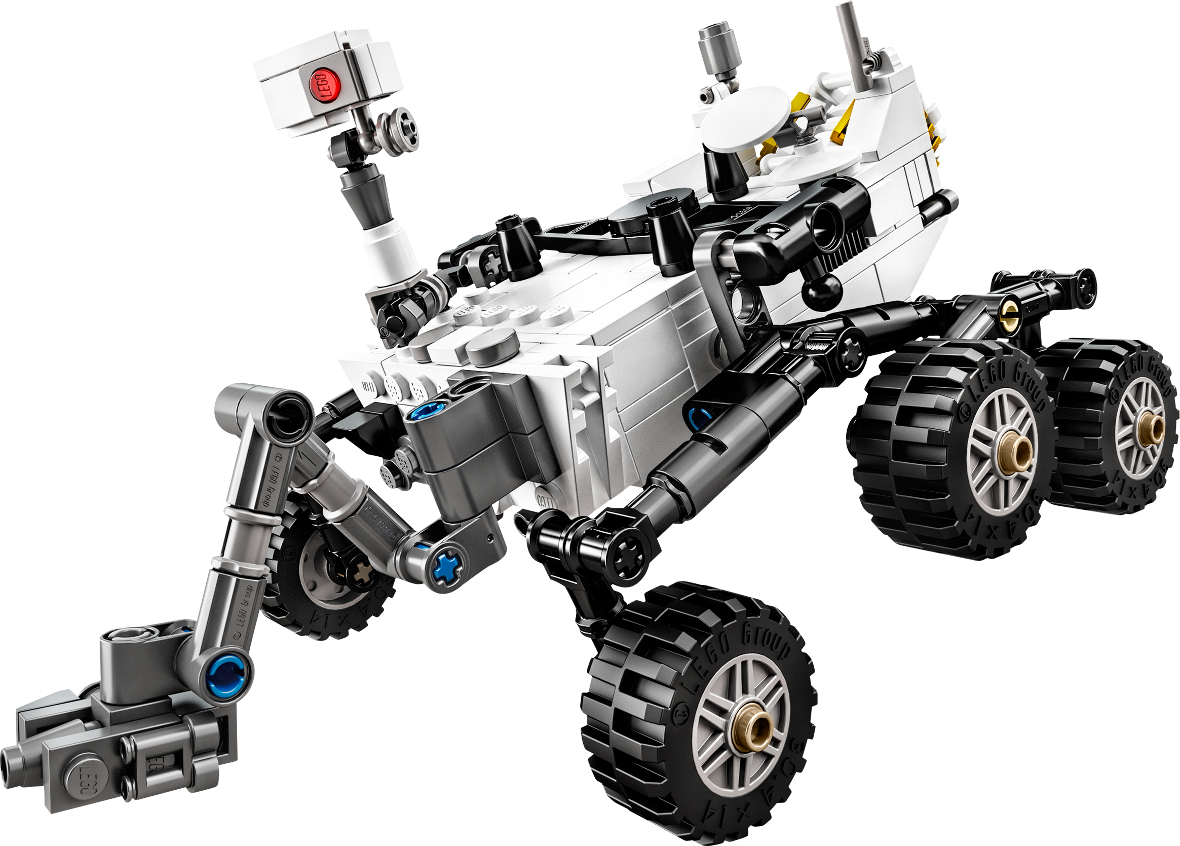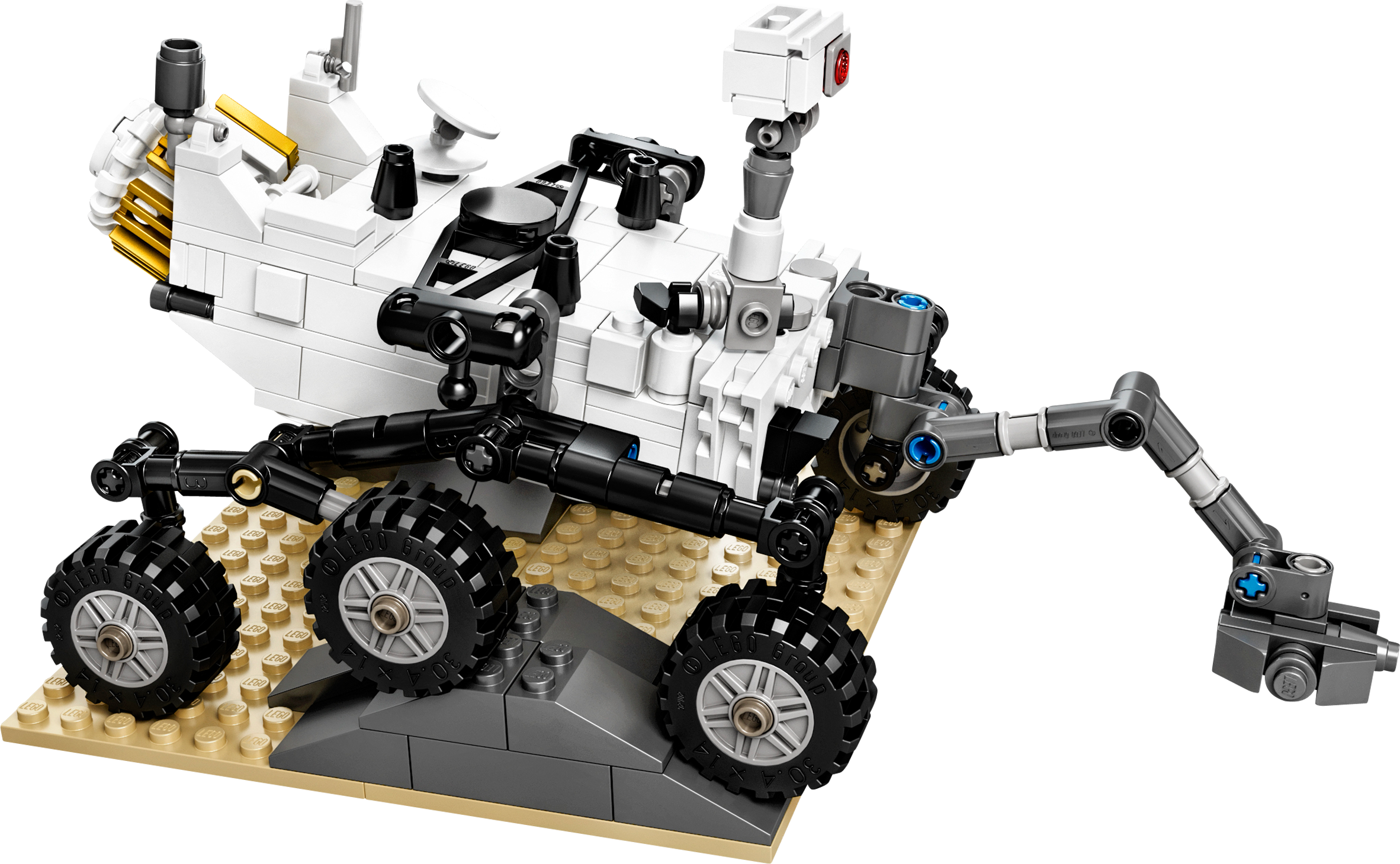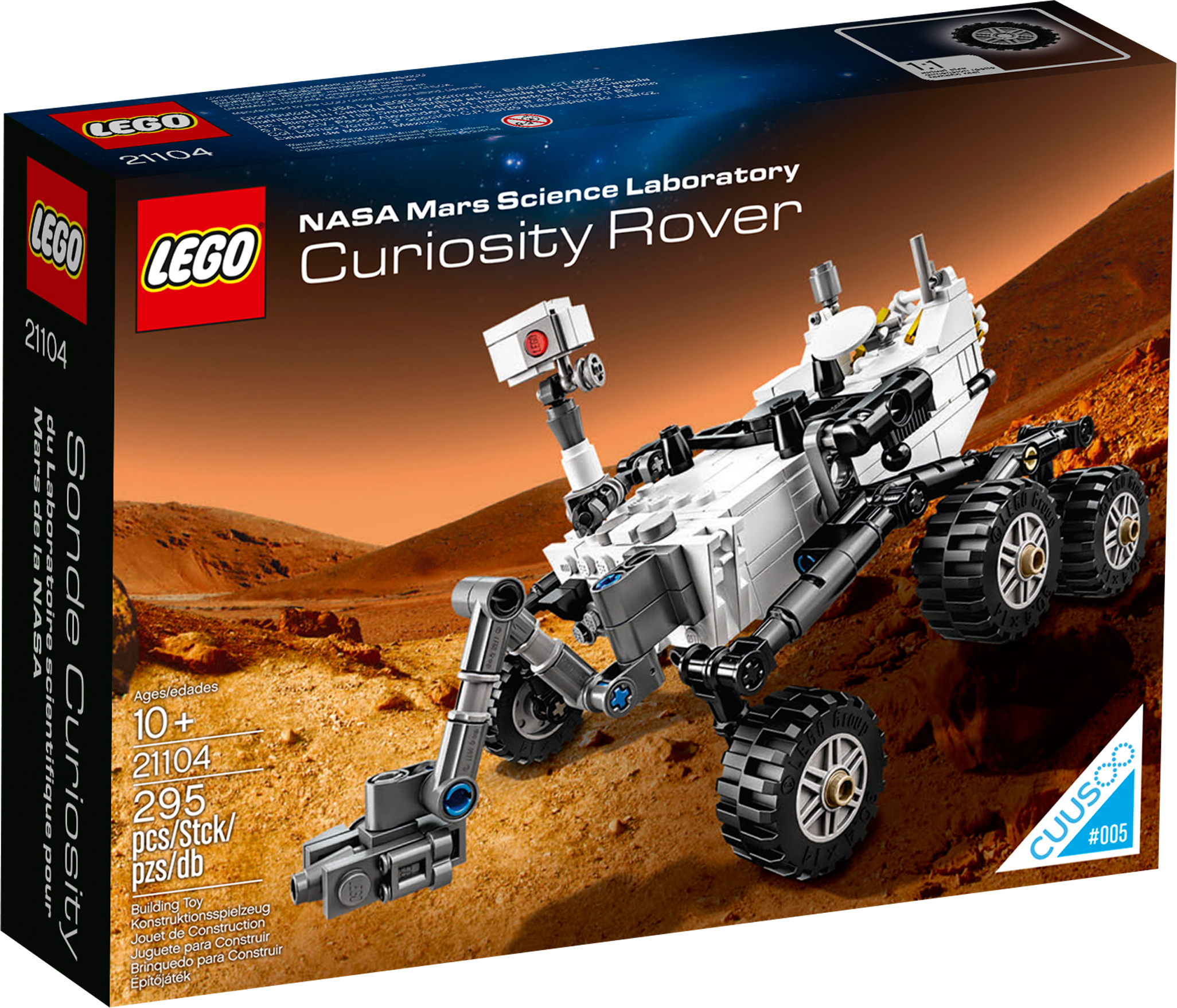 Explore Martian landscapes with the amazing NASA Mars Science Laboratory Curiosity Rover! The LEGO® NASA Mars Science Laboratory Curiosity Rover has landed! Designed by real Curiosity Rover engineer, Stephen Pakbaz, and chosen by LEGO CUUSOO members, this amazing LEGO version of the highly advanced mobile laboratory features lots of great details, such as 6-wheel rocker-bogie suspension, articulated robotic arm and multiple camera sets. This great model also comes with a fascinating booklet with building instructions and information about the history of Mars exploration and the Curiosity Rover, plus a display plate complete with LEGO brick Martian rocks – perfect for testing out the rover’s go-anywhere suspension!Features 6-wheel suspension, articulated robotic arm and multiple camera setsBuild the model that LEGO® CUUSOO members requested!Drive over tough obstacles with the 6-wheel suspensionPlay out your very own Martian science missions!Reach out for samples with the robotic armIncludes white, grey and black bricks for a metallic lookIncludes building instructions and exclusive information bookletDesigned by a real Curiosity Rover engineer!Rover measures over 3” (10cm) high, 5” (15cm) long and 4” (12cm) wideRobotic arm extends over 2” (7cm)