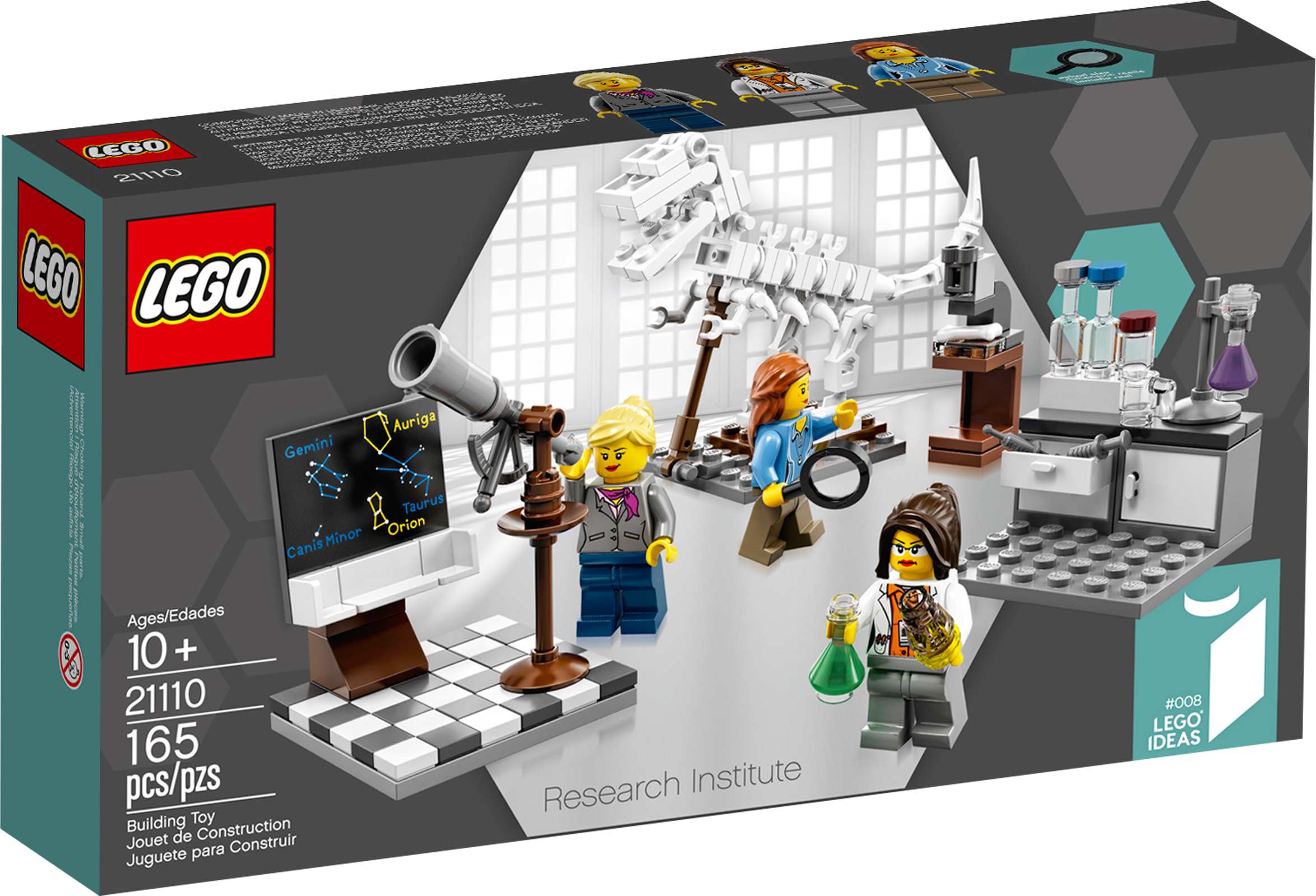Explore the world and beyond at the Research Institute! The Research Institute has everything that you need to explore the world below, around and above us! Created by real-life geoscientist, Ellen Kooijman (alias:Alatariel), and selected by LEGO® Ideas members (formerly known as CUUSOO), this collection of scenes depicts three varied professions within the world of natural science. Help the paleontologist study the origin of dinosaurs with the magnifying glass, map the skies with the astronomer and her telescope, and assist the chemist as she carries out experiments in her lab. This set also includes building instructions, as well as a booklet containing information about the creator and an introduction to each of the professions featured in the set. There’s a whole world of exciting professions out there to explore – build and role play them to see if they suit you! Includes 3 minifigures: paleontologist, astronomer and a chemist.Includes paleontologist, astronomer and chemist minifiguresFeatures paleontology, astronomy, and chemistry scenes on a 6x6 baseplatePaleontology scene features a dinosaur skeleton, microscope and a magnifying glassAstronomy scene features a telescope and a sky chartChemistry scene features a cabinet, tools, bottles and flasksDiscover new stars and planets through the telescopeStudy the dinosaur skeleton up closeConcoct new formulas in the chemist’s labGives a great insight into the world of natural scienceBuild the model voted for by LEGO® Ideas membersIncludes building instructions and booklet with information about the creator and professions featured in the setEach scene measures over 1” (5cm) high, 1” (4cm) wide and 1” (4cm) deep