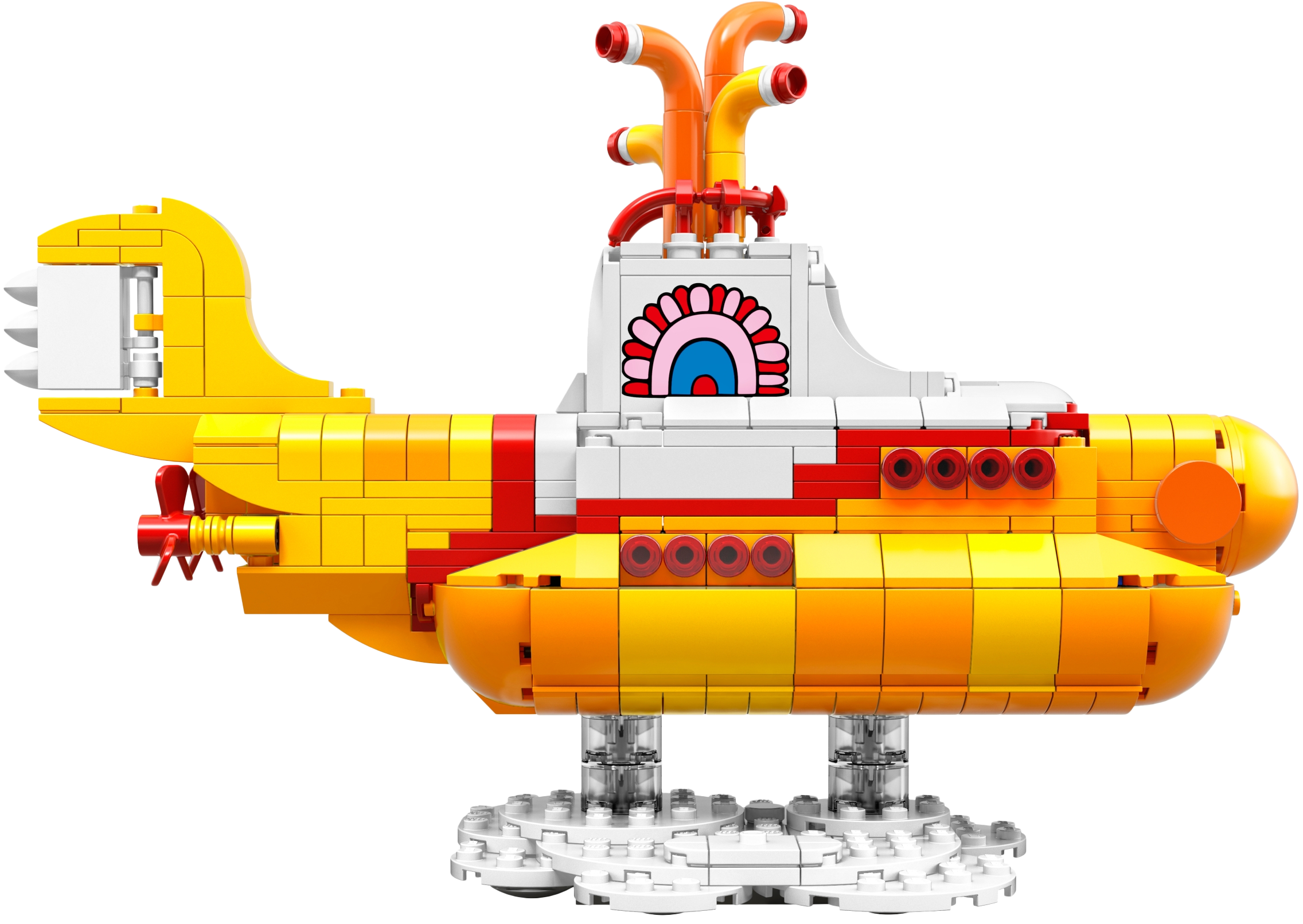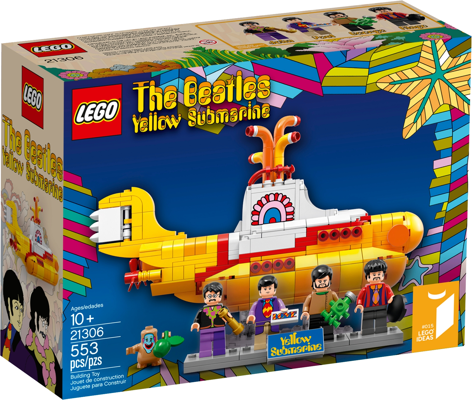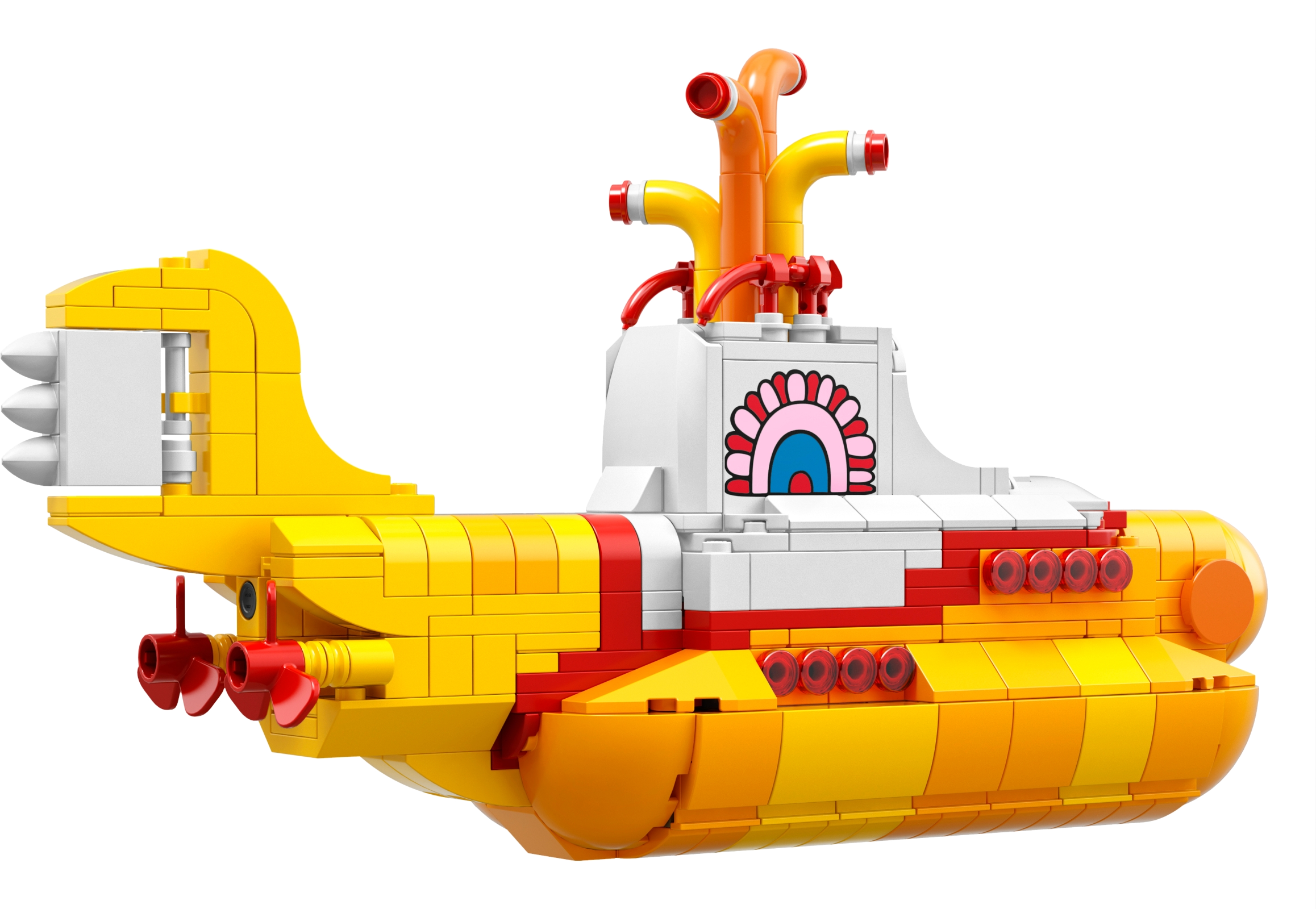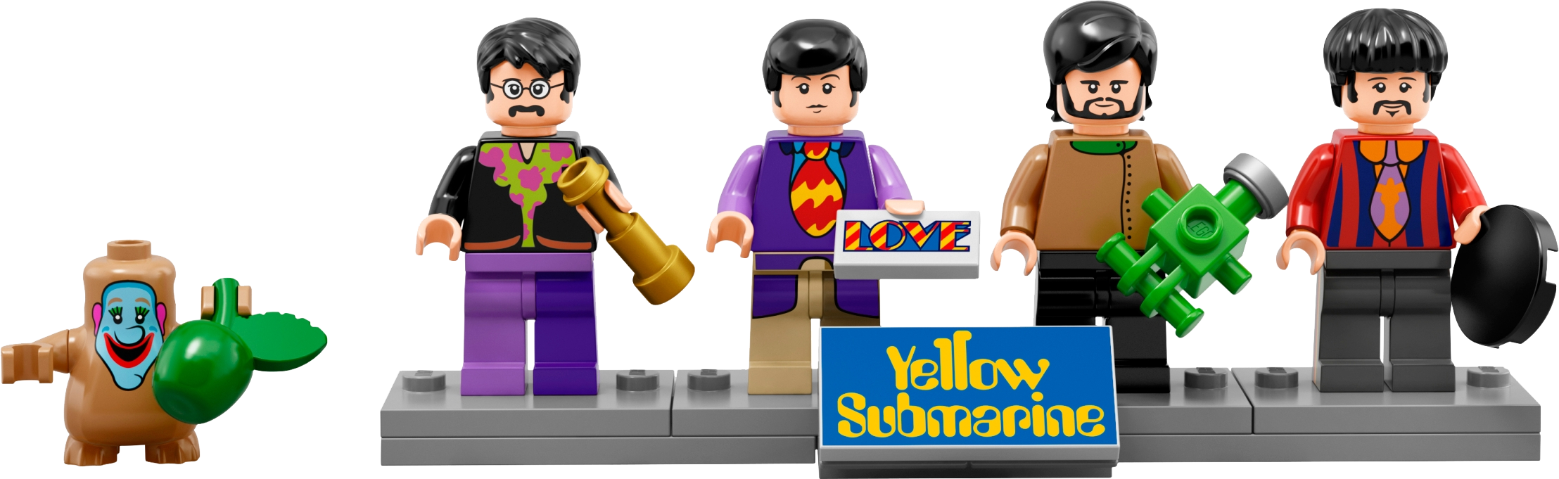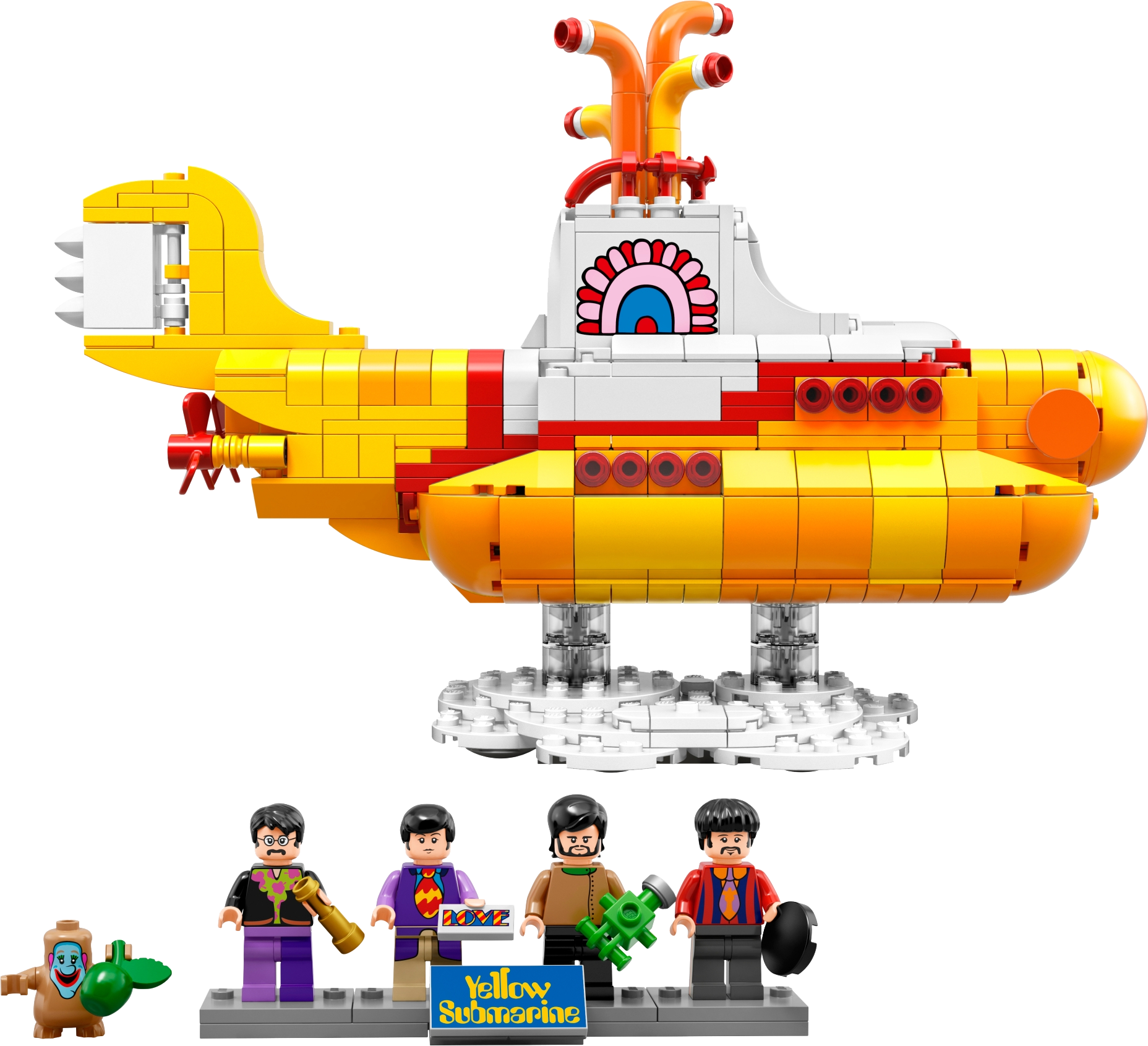 Build this LEGO® version of the iconic Yellow Submarine from the famous 1968 film, and journey back to Pepperland with the Fab Four! The submarine features a removable top for easy play, a cockpit that accommodates the included John, Paul, George and Ringo minifigures, two rotating propellers, four periscopes, an adjustable rudder, plus assorted accessory elements that The Beatles have collected on their journey. The set also includes a Jeremy figure. An ideal gift for fans of LEGO® and The Beatles, it’s great for role-play or to create a colorful retro display. Includes 4 minifigures: John Lennon, Paul McCartney, George Harrison and Ringo Starr, plus a Jeremy figure. Yellow Submarine features a removable top, cockpit that fits all four Beatles minifigures, four rotating periscopes, two rotating propellers and an adjustable rudder, plus a removable display stand. Also includes a minifigure display stand. Accessory elements include John's telescope, Paul's 1x2 ‘Love' tile, Ringo's round 2x2 ‘half a hole' tile, George's submarine motor and Jeremy's apple. Build an authentic replica of the Yellow Submarine in LEGO® bricks. Great for display or role-playing scenes from the iconic 1968 film. Includes a booklet about the LEGO® fan/designer and the Yellow Submarine. This set includes over 550 pieces and offers an age-appropriate build and play experience for ages 10+. Yellow submarine measures over 5” (13cm) high, 9” (25cm) long and 2” (6cm) wide. Submarine display stand measures over 1” (3cm) high, 4” (11cm) wide and 3”(10cm) deep. Minifigure display stand measures over 4” (12cm) wide, 1” (4cm) deep and under 1” (1.6cm) high.