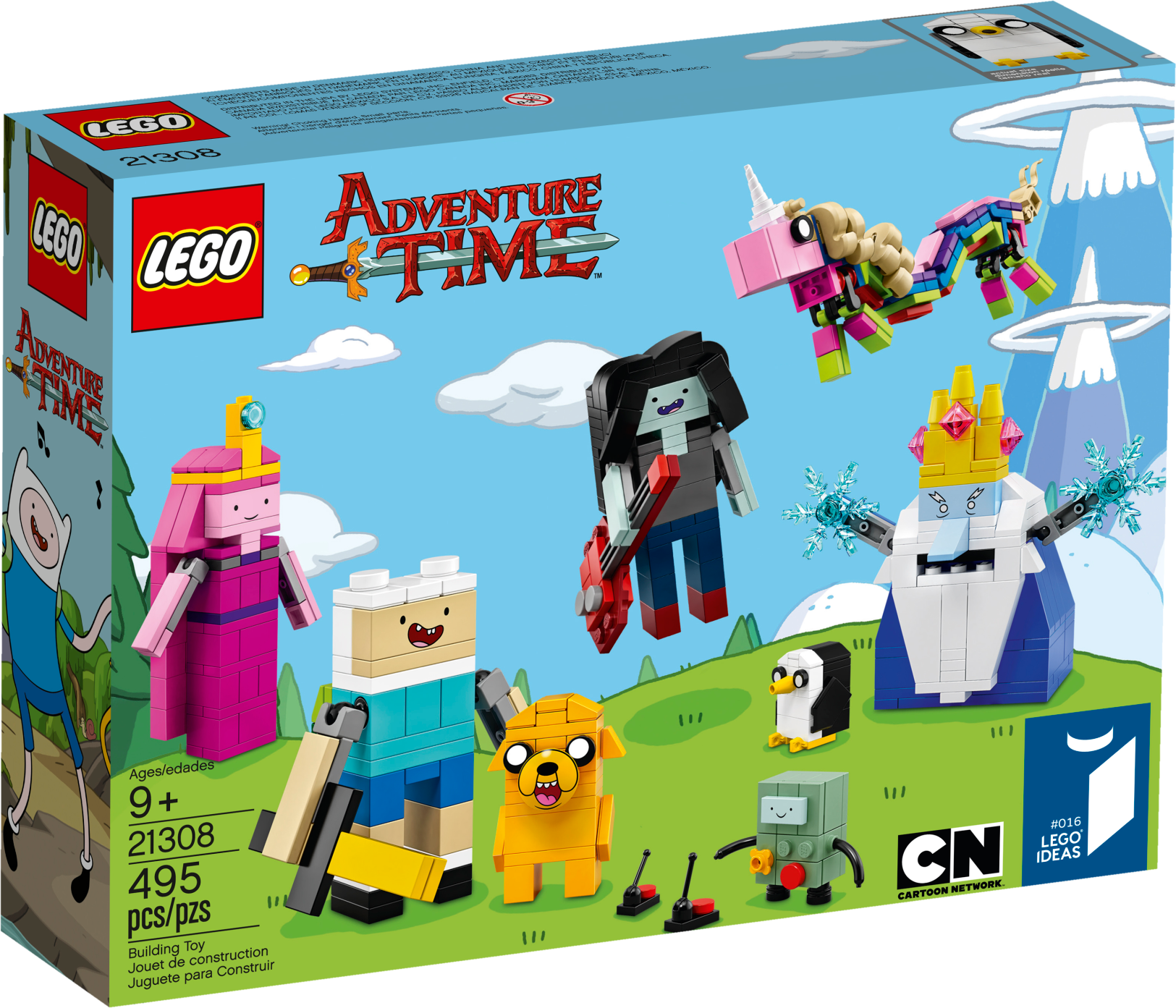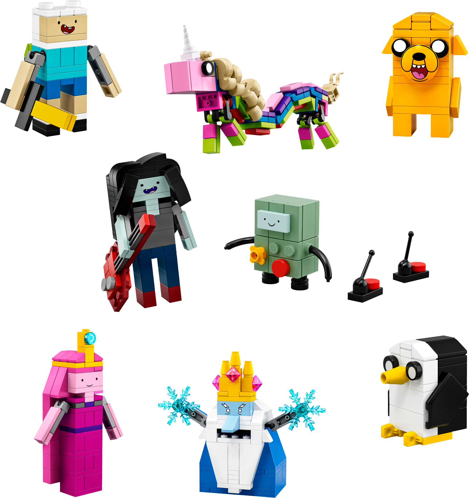 Display and role-play with this LEGO® Adventure Time™ set, featuring eight buildable Adventure Time characters with an assortment of play-starting accessory elements. An ideal gift for fans of the popular Cartoon Network animated TV series. Features eight buildable LEGO® brick Adventure Time™ characters: Finn, Jake, Princess Bubblegum, Lady Rainicorn, Marceline, BMO, Ice King and Gunter. Finn, Princess Bubblegum, Marceline and Ice King each have movable arms. Includes Finn’s sword. Accessory elements include Marceline's axe-bass, BMO's joysticks and Ice King's translucent-blue stars. Great for display or role-playing funny scenes from Cartoon Network's Adventure Time™ series. Includes a booklet about the animated TV series and the fan designer of this set. This set includes over 495 pieces. Finn stands over 2” (6cm) tall. Jake stands over 1” (5cm) tall. Princess Bubblegum stands over 3” (10cm) tall. Lady Rainicorn measures over 2” (7cm) tall and 7” (20cm) long. Marceline stands over 3” (8cm) tall. BMO stands over 1” (3cm) tall. Gunter stands over 1” (4cm) tall. Ice King stands over 4” (11cm) tall.
