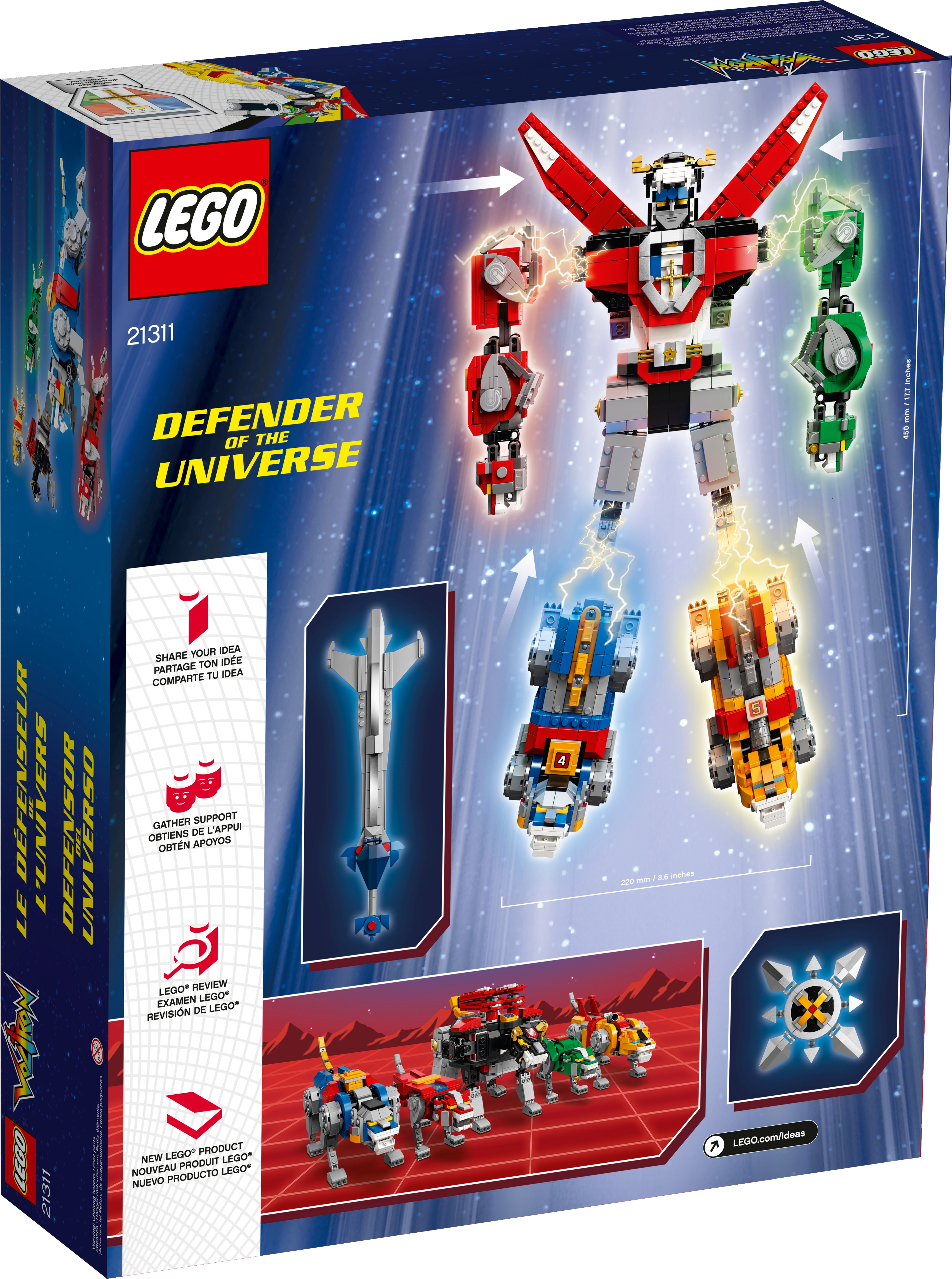 Features 5 buildable and posable lions that can be transformed and combined to create the giant Voltron super robot.