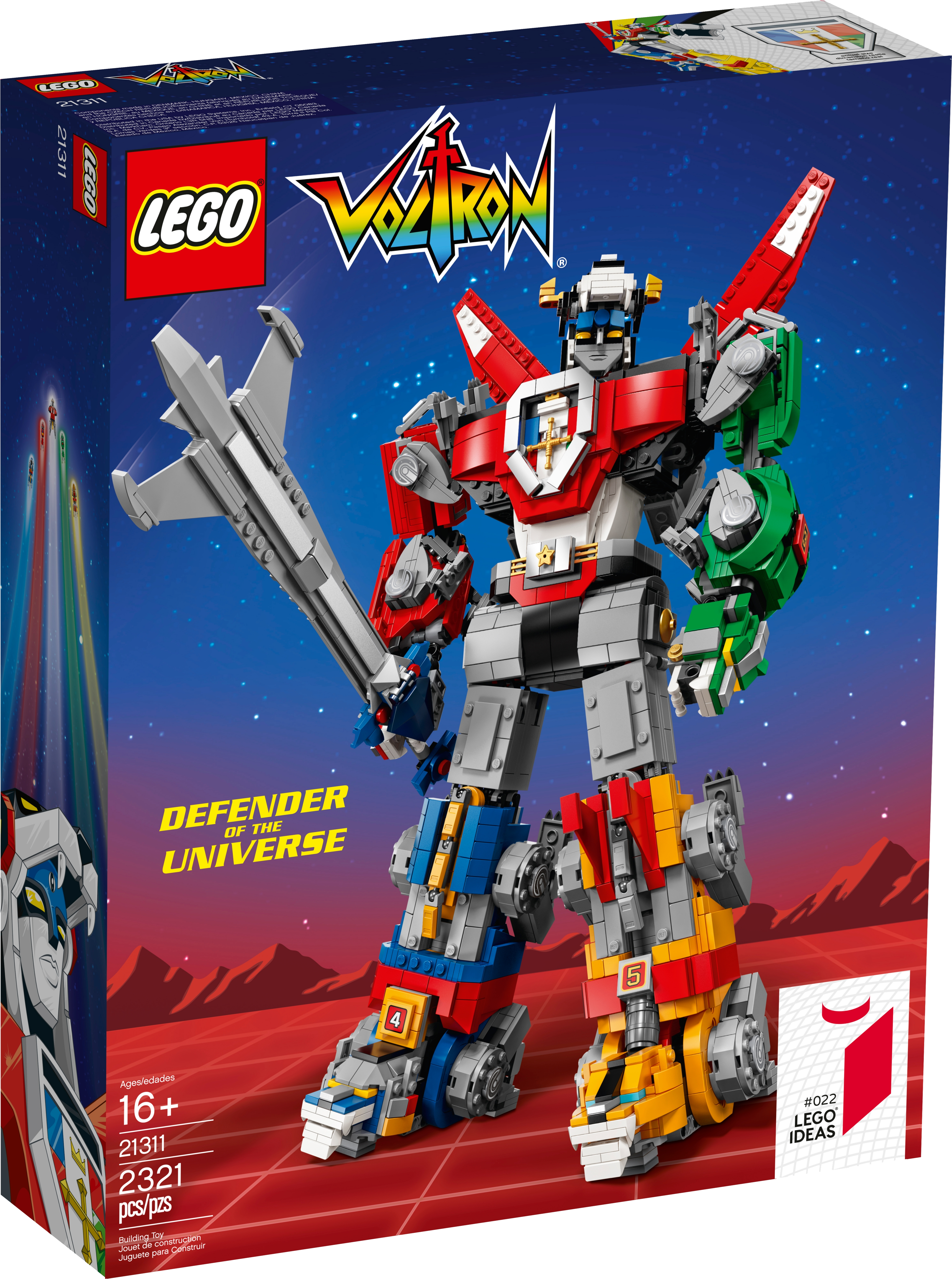 It’s time to defend the universe so get ready to form LEGO® Ideas 21311 Voltron, the biggest buildable LEGO mech ever! This awesome set features buildable and highly posable black, blue, yellow, red and green lions with specially designed, extra-strong joints to combine them all and create the Voltron super robot, plus a huge sword and shield that attach firmly to Voltron's hands. Ideal for display or to recreate thrilling action from the original 1980s animated Voltron TV series and the modern DreamWorks Voltron: Legendary Defender series.