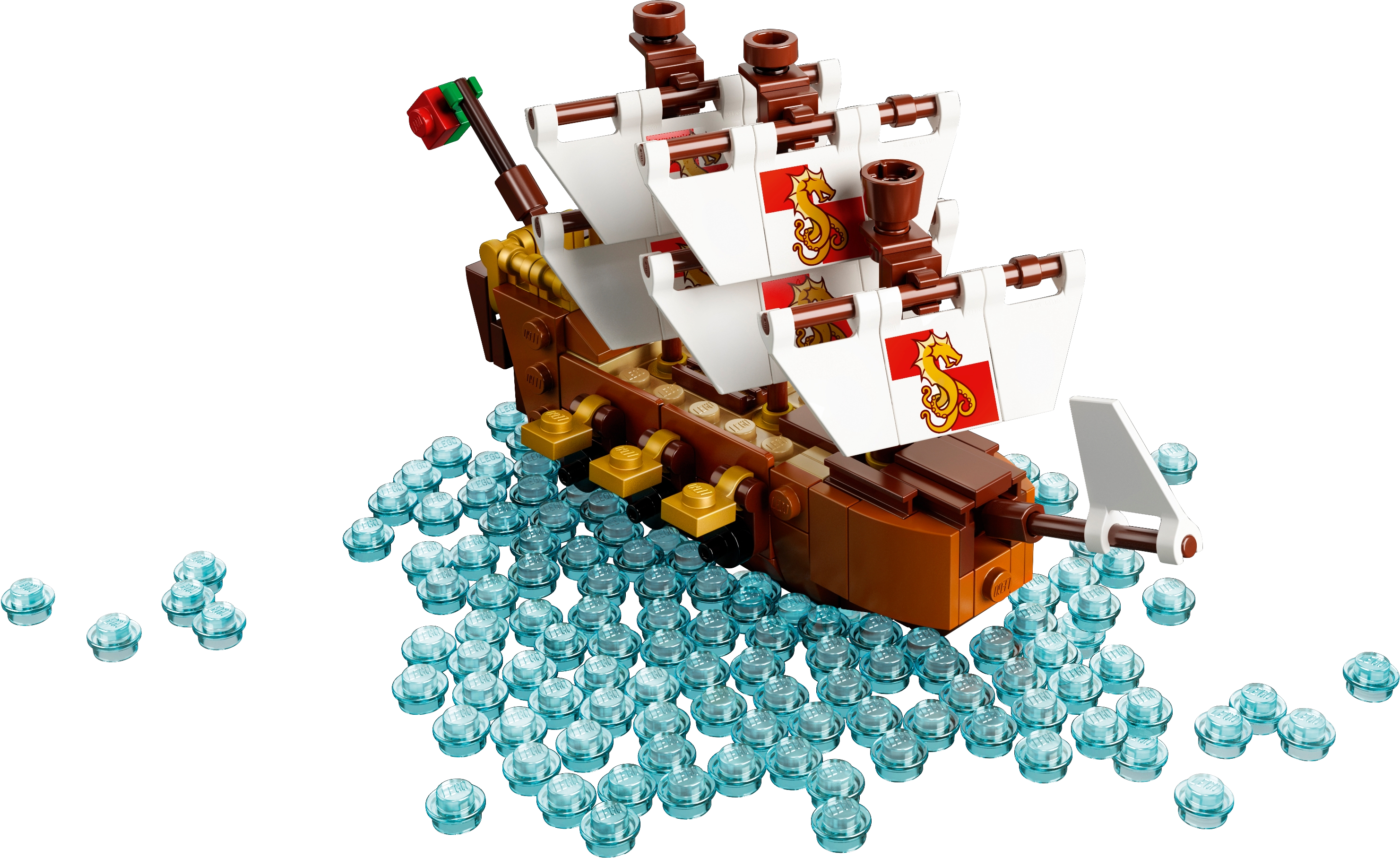 Continue a nautical tradition when you build the LEGO® Ideas Ship in a Bottle, featuring a highly detailed ship with the captain’s quarters, cannons, masts, crow’s nest and printed sail elements. Fan creator, Jake Sadovich, was inspired by an actual ship in a bottle that he had built a few years earlier when he decided to build a replica in LEGO brick form. His creation reached the qualifying 10,000 votes with LEGO Ideas.