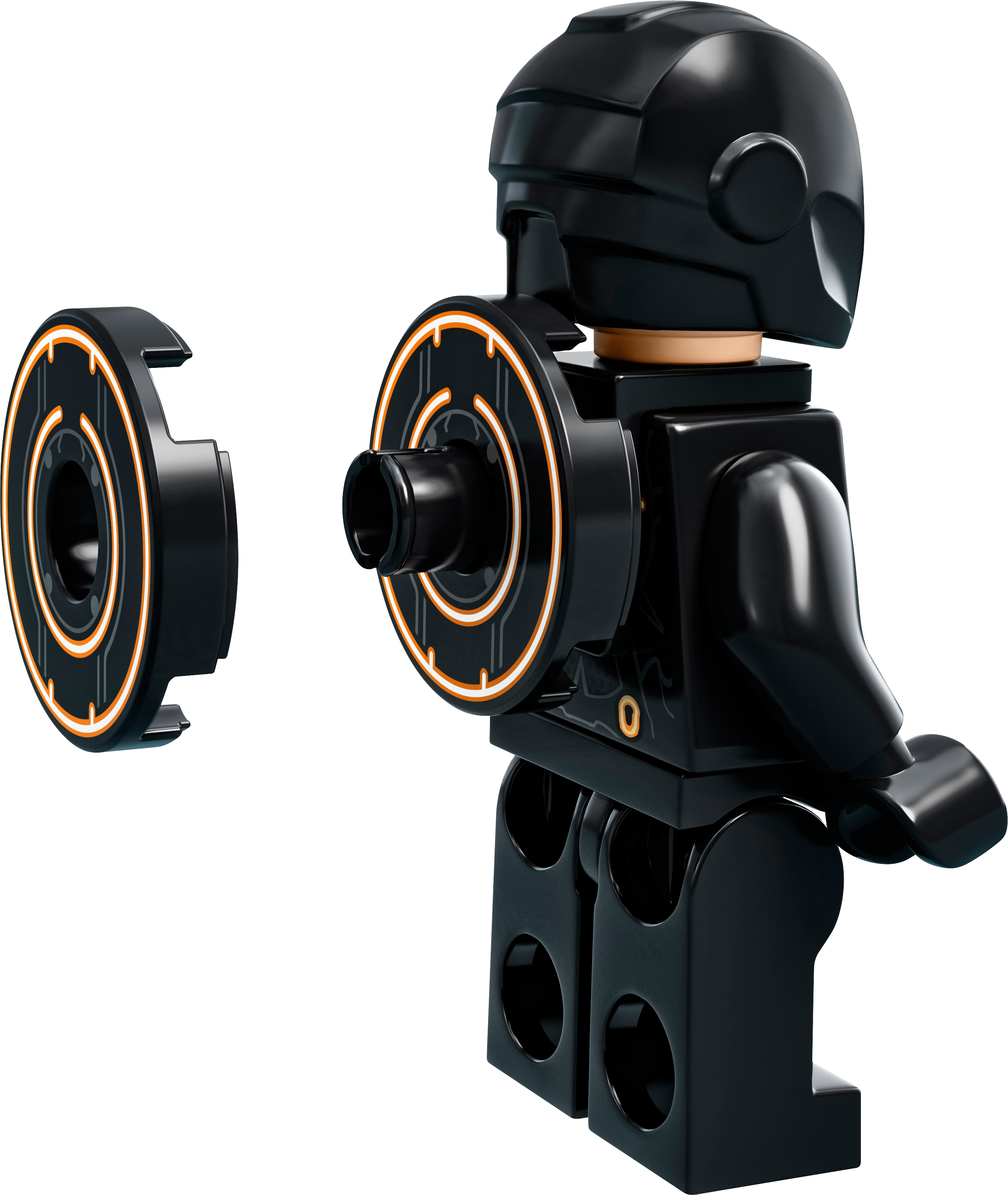 Accessory elements include Sam Flynn and Quorra's blue Identity Discs, and Rinzler's 2 orange Identity Discs.