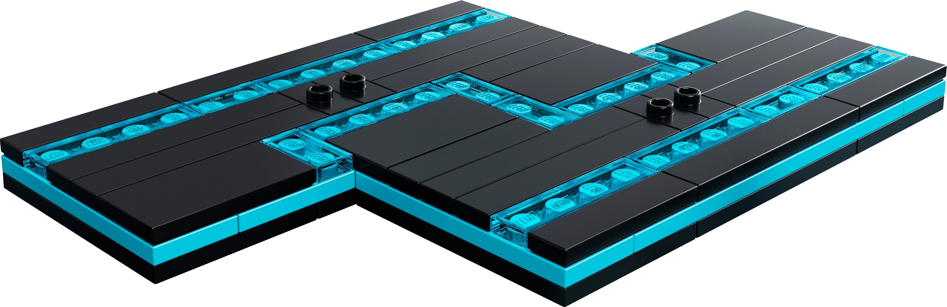 Divide the grid to recreate the Light Cycle chase scene from Disney’s TRON: Legacy movie, or use it to role-play the disc battle scene with the minifigures.