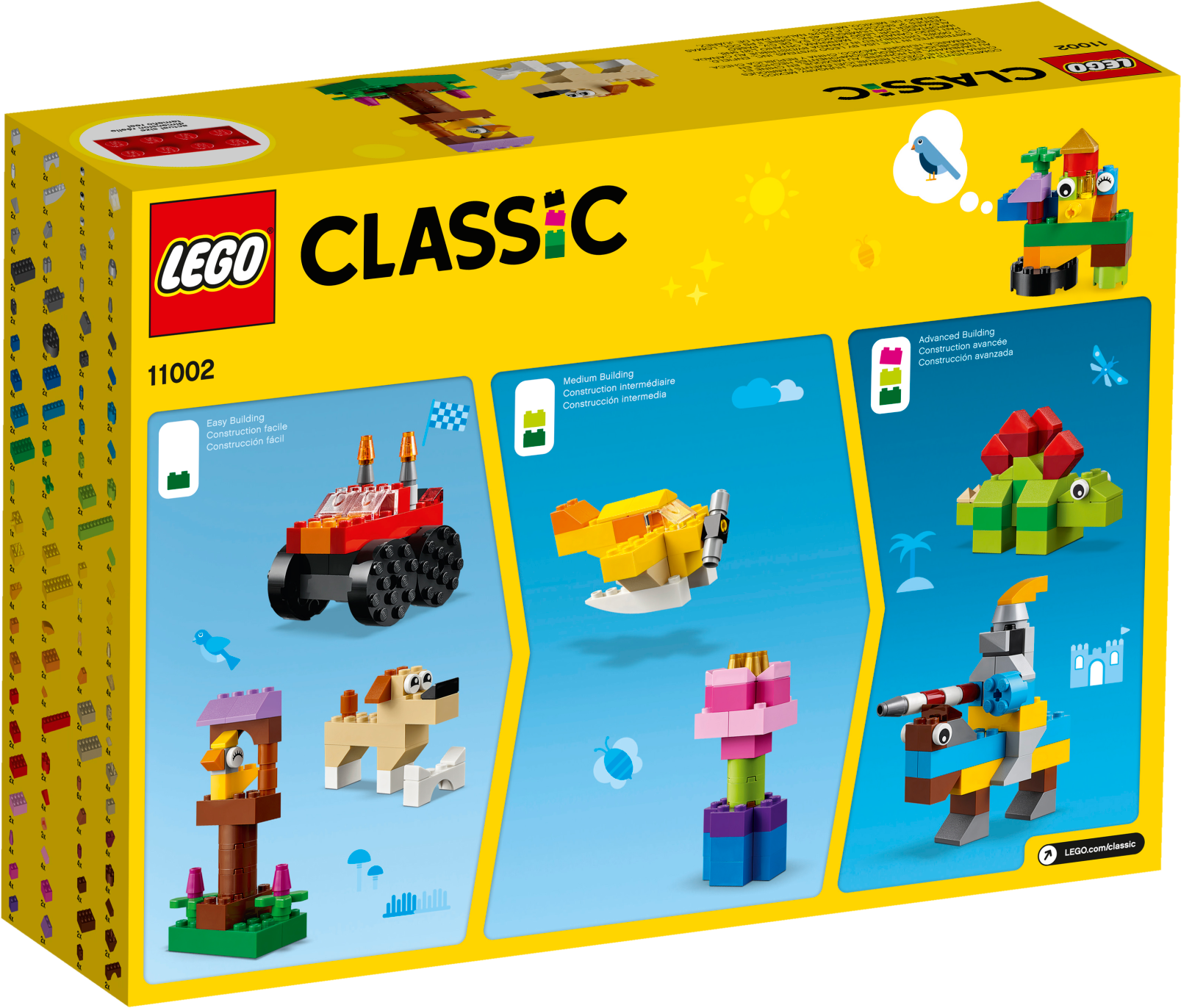 Discover timeless creative fun with this charming LEGO® Classic 11002 Basic Brick Set. Choose from a selection of bright and colorful LEGO bricks, wheels and eyes to create a wide variety of iconic LEGO models, from a knight on horseback to a cool monster truck. This building set offers 3 levels of complexity and makes an excellent starter kit for budding LEGO builders. Includes age-appropriate instructions to help children discover their creative building skills, with further building instructions and inspiration available online. Includes LEGO® bricks, wheels and eyes for creating classic LEGO models. Features bright and colorful LEGO® bricks for open-ended creative play. Create a LEGO dinosaur toy, monster truck, propeller plane or whatever you can imagine! Provides 3 levels of building complexity for budding builders. Visit LEGO.com/classic for additional building instructions, fun videos, ideas and inspiration. Let creativity grow with LEGO® Classic sets! This set includes 300 pieces. This set offers an age-appropriate build and play experience for ages 4+.