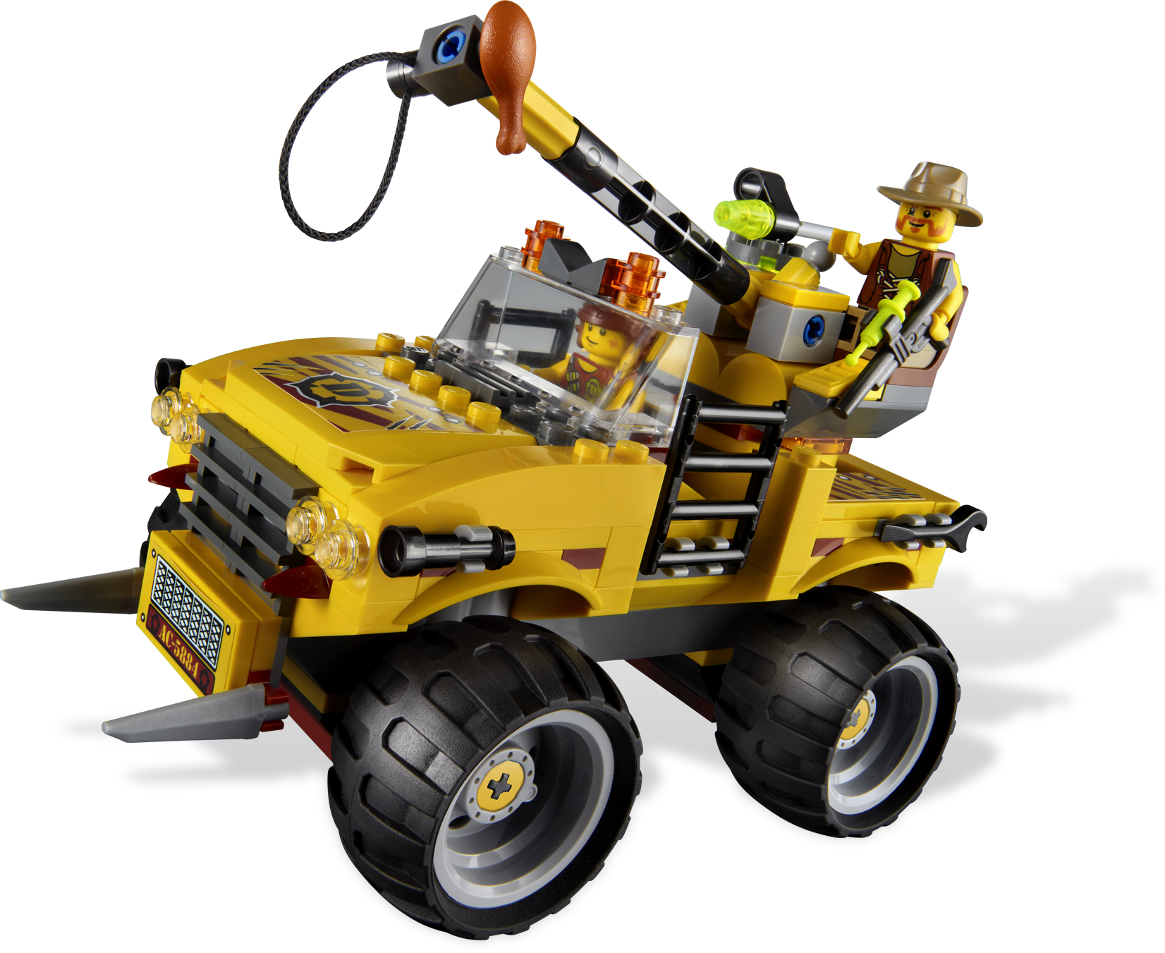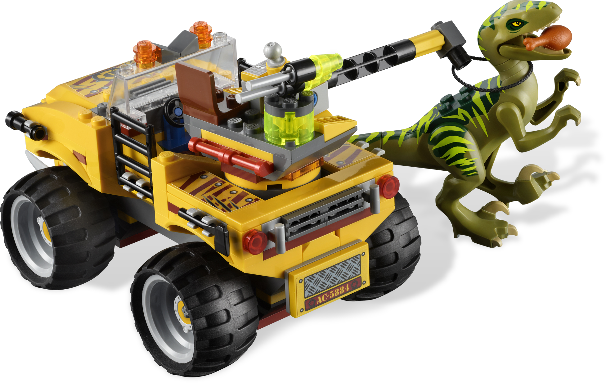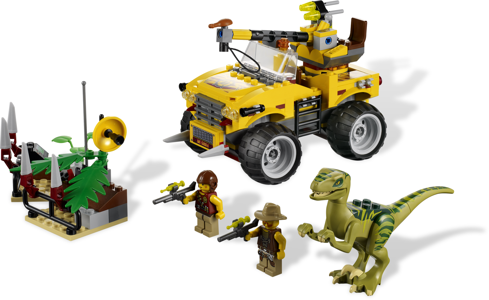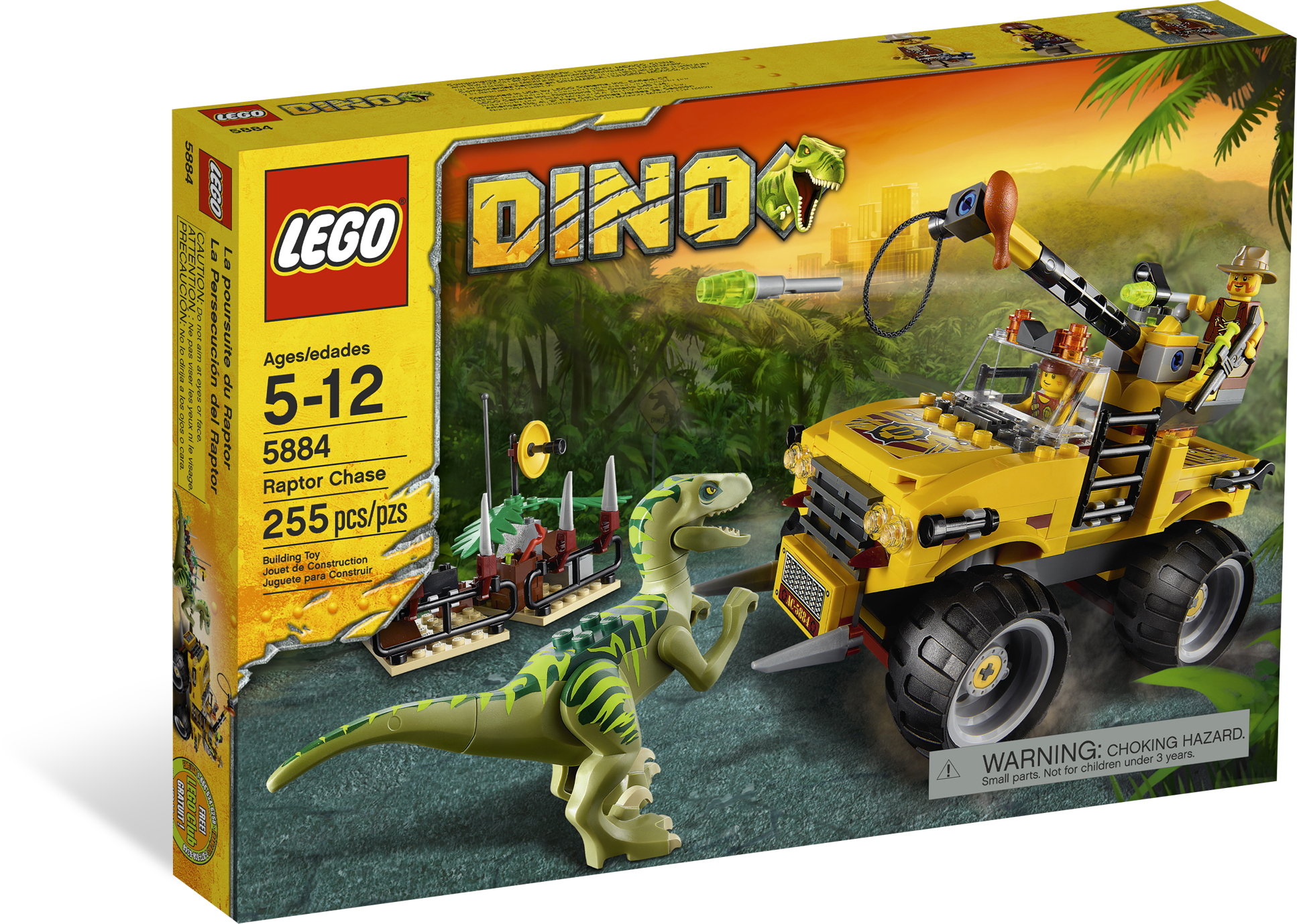 Stop the Raptor in its tracks with the lasso! Hurry! The raging Raptor is heading towards the city and must be stopped at all costs. Chase down the dashing dino in the big-wheeled off-roader! Then fire the tranquilizer gun and capture it with the lasso! Includes Raptor dinosaur and 2 minifigures.Includes 2 hero minifigures and Raptor dinosaurFeatures off-roader with large wheels and lassoAccessories include tranquilizer gun and 2 flick missilesLasso the Raptor!Shoot the tranquilizer gun!Off-roader measures over 6” (15cm) longRaptor measures 3” (7cm) tall