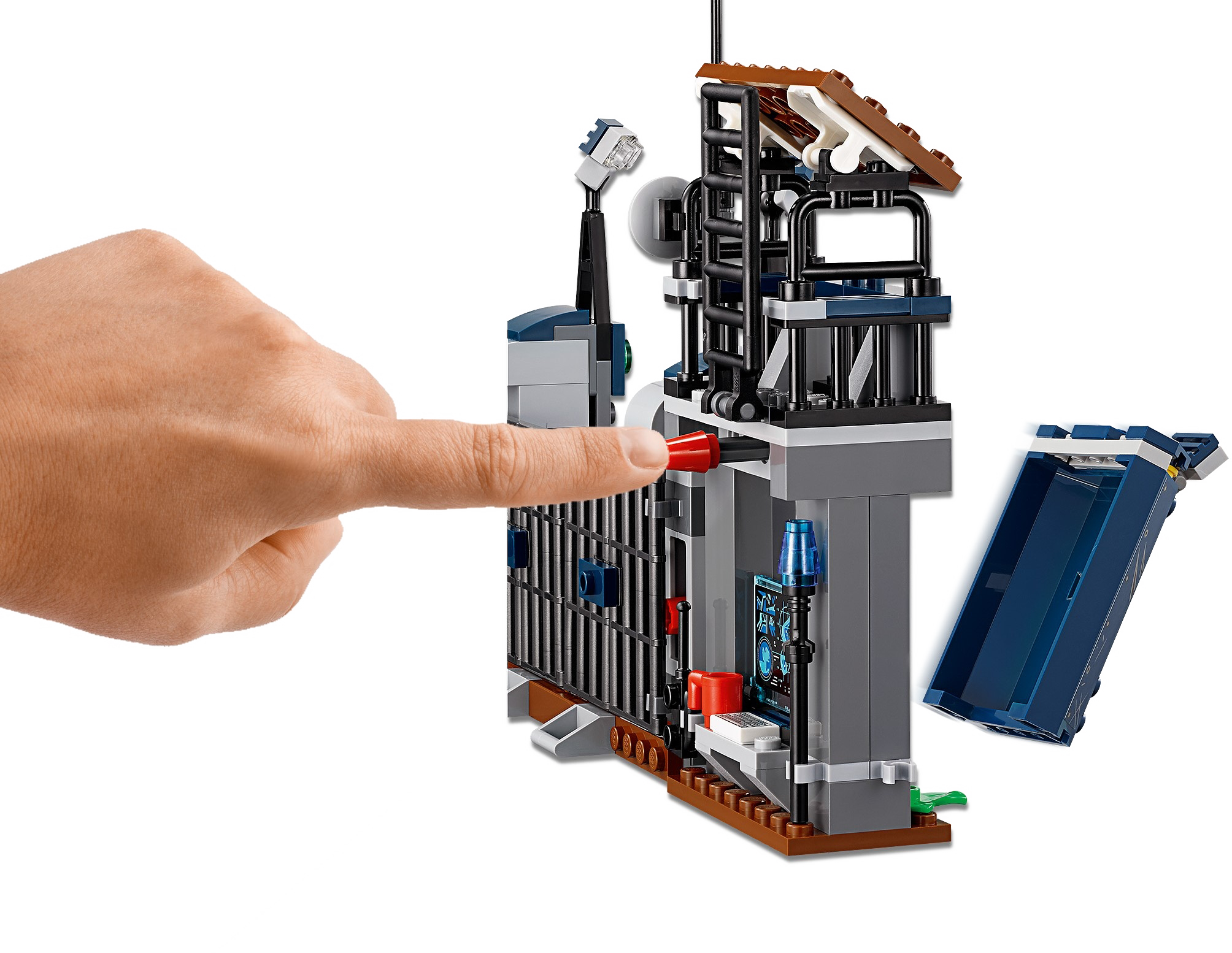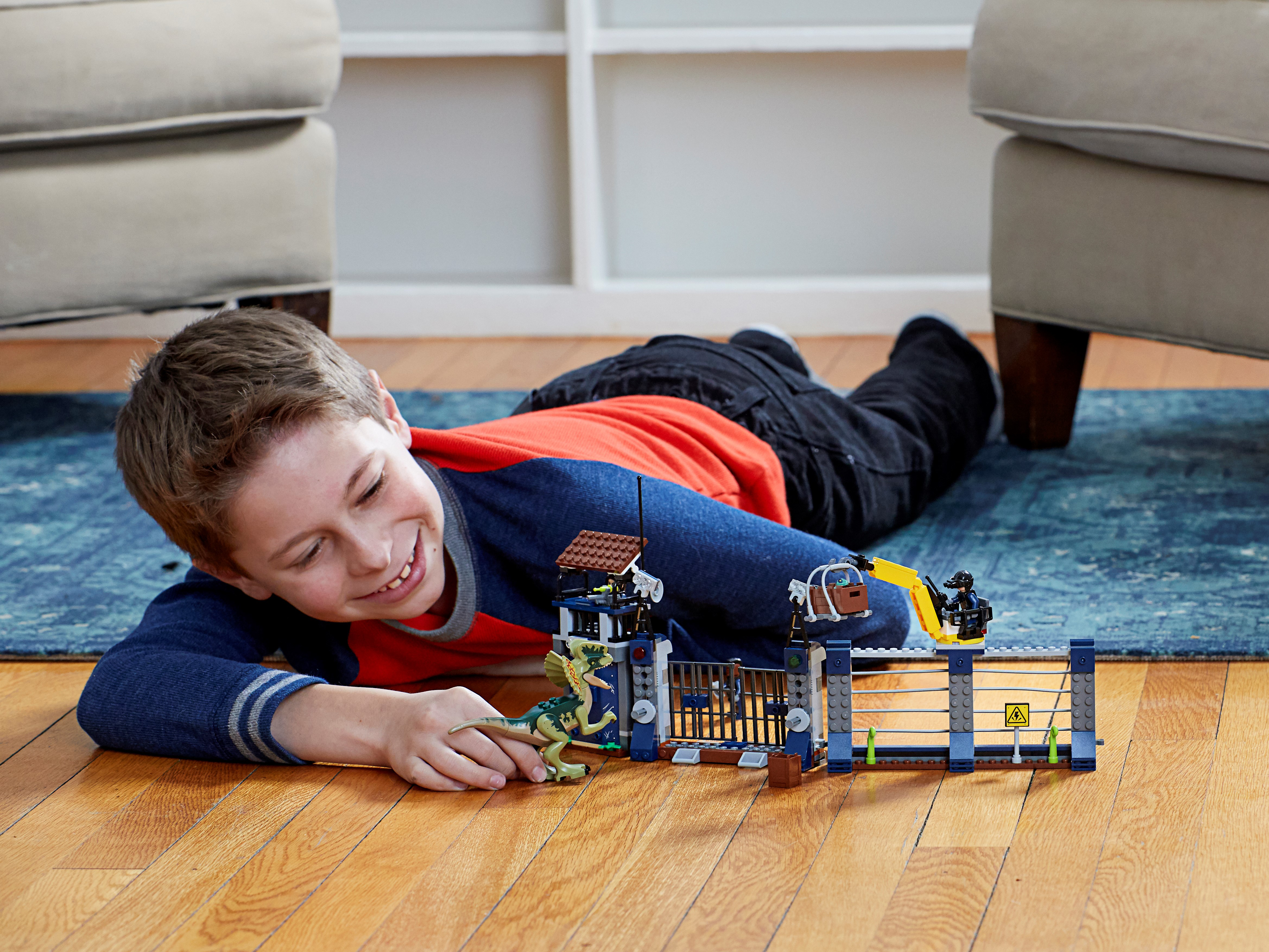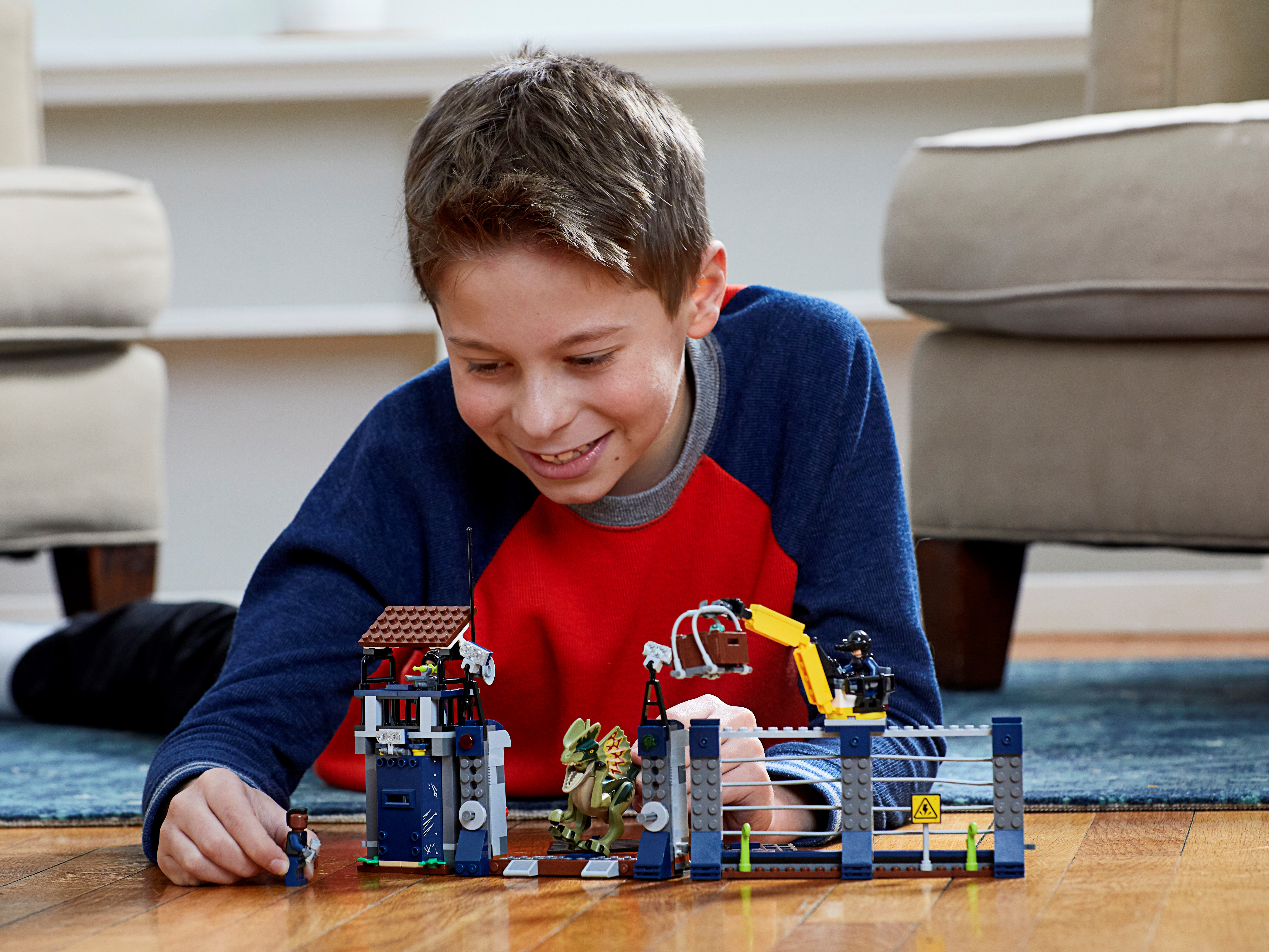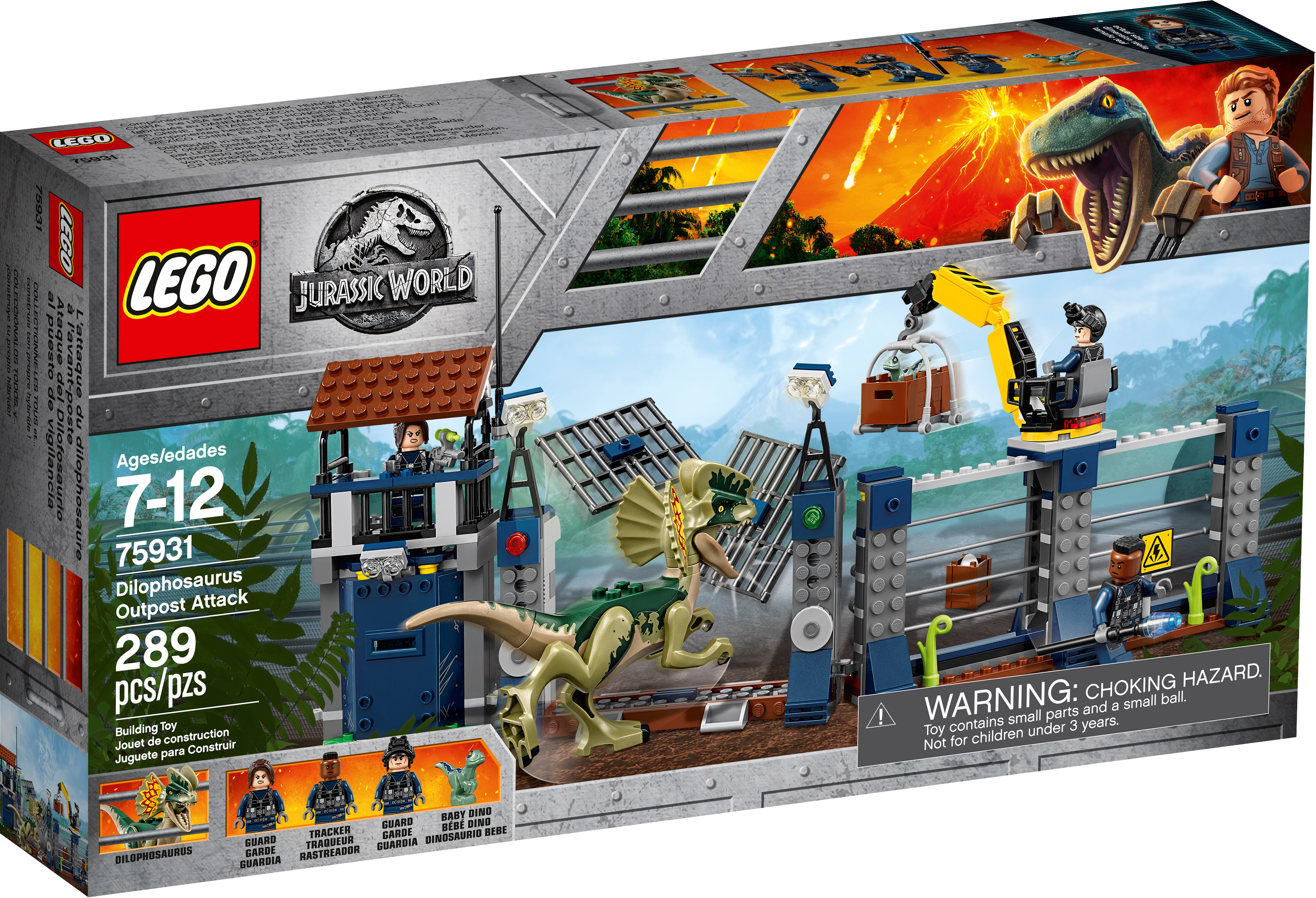 Brace the hunters for a fierce Dilophosaurus Outpost Attack in this fun play set inspired by Jurassic World™. Step down from the lookout tower and crane, featuring exploding gate and wall functions, crate and baby Dilophosaurus, and use the tranquilizer gun to stop the Dilophosaurus breaking through the fences. This dinosaur set includes 3 minifigures and 2 dinosaur figures. Includes 3 minifigures and 2 dinosaur figures. Features an outpost fence with a watchtower, movable crane and exploding gate and wall functions. Dilophosaurus features posable limbs, head and snapping jaws. Activate the exploding gate and wall functions to stage a dinosaur breakthrough! Also includes a tranquilizer gun. Accessory elements include 2 crates, a dinosaur egg and binoculars. This dinosaur set is suitable for ages 7-12. Outpost measures over 5” (14cm) high, 14” (37cm) wide and 2” (6cm) deep. Dilophosaurus stands over 2” (7cm) high.