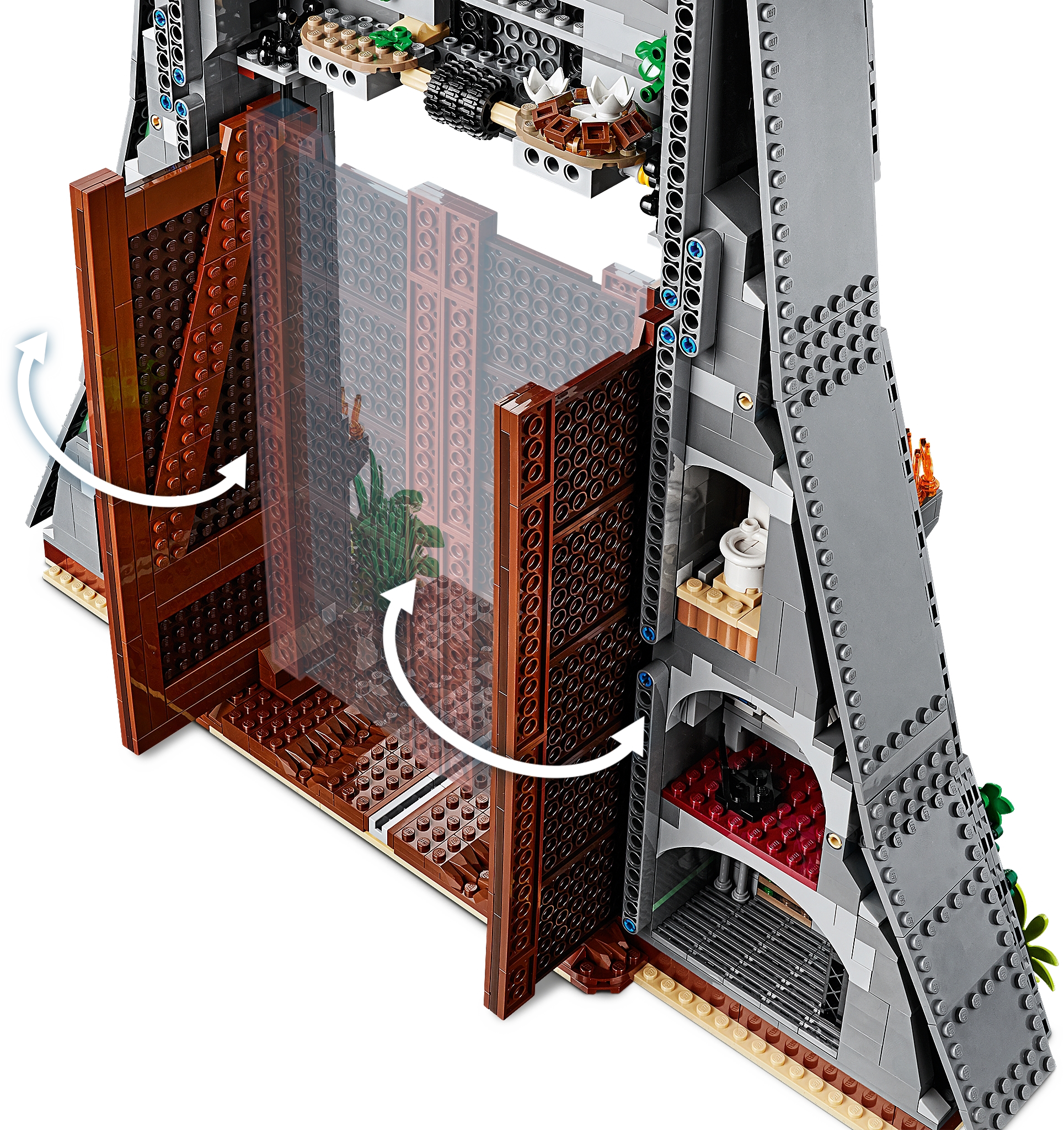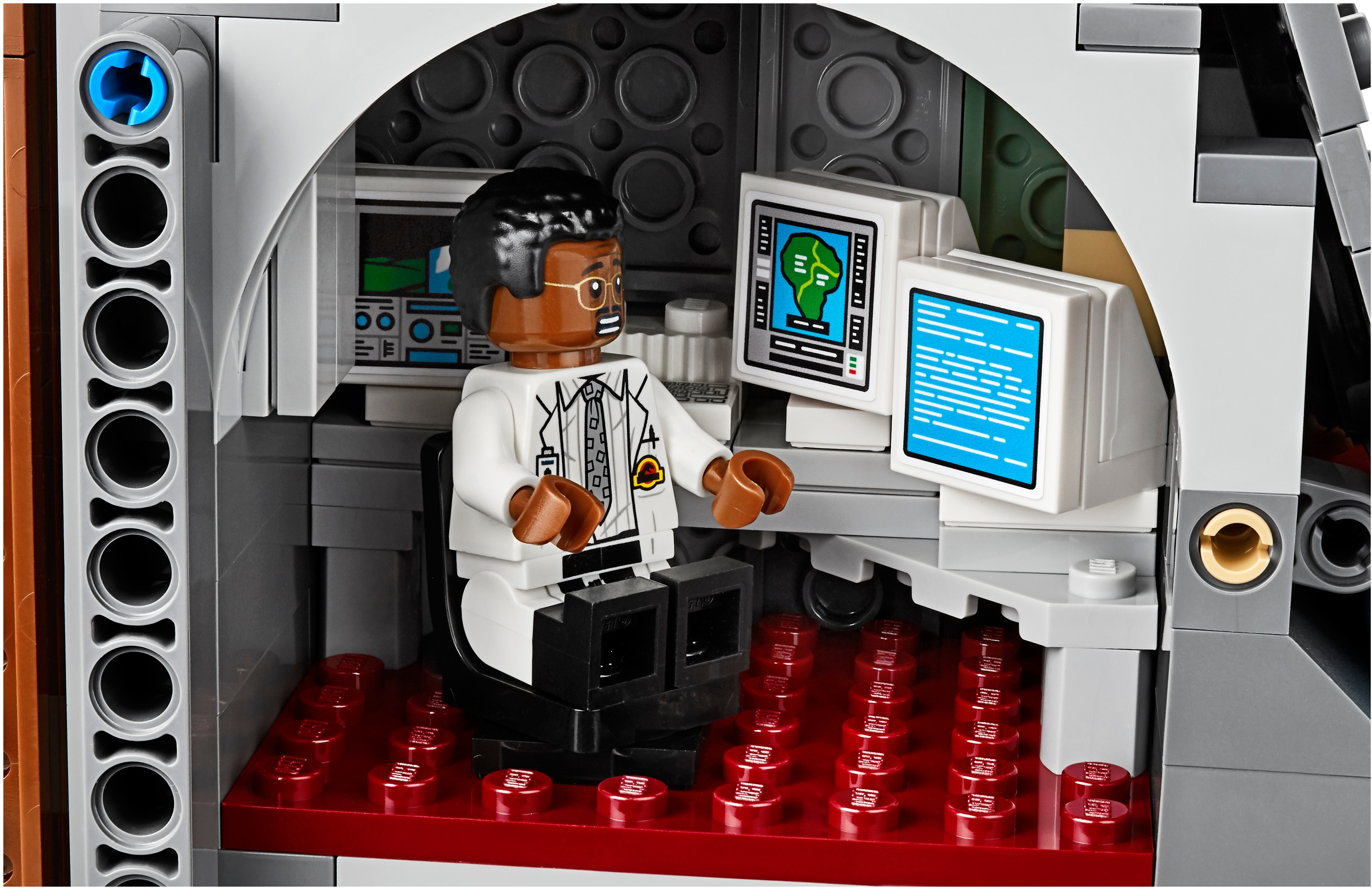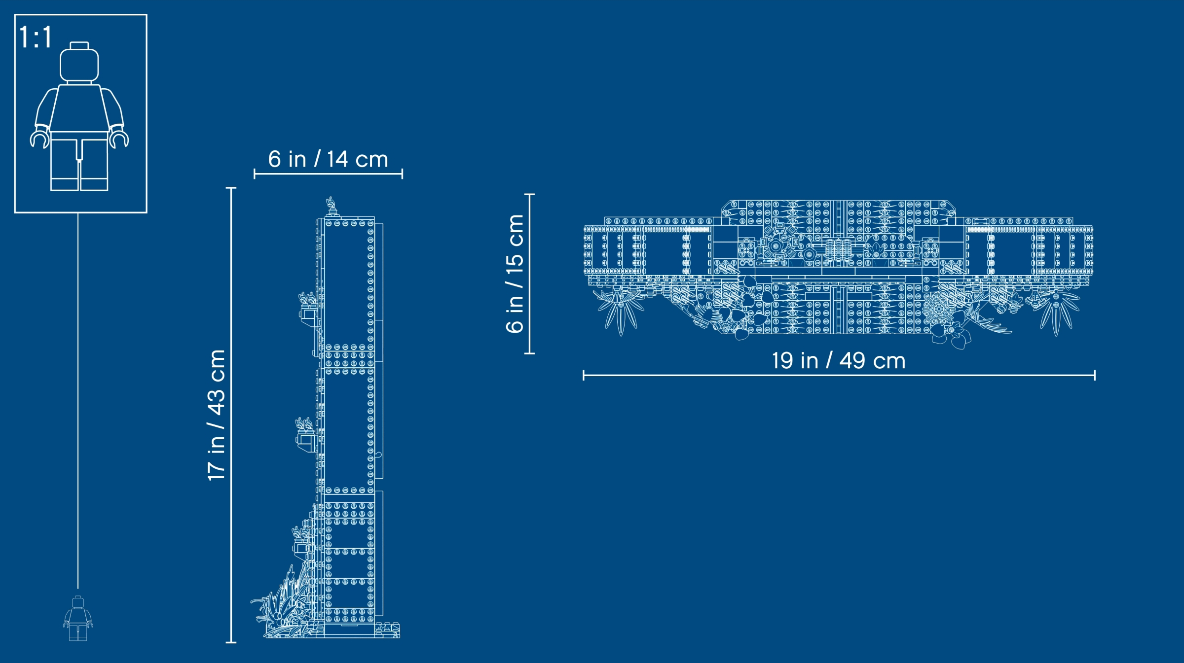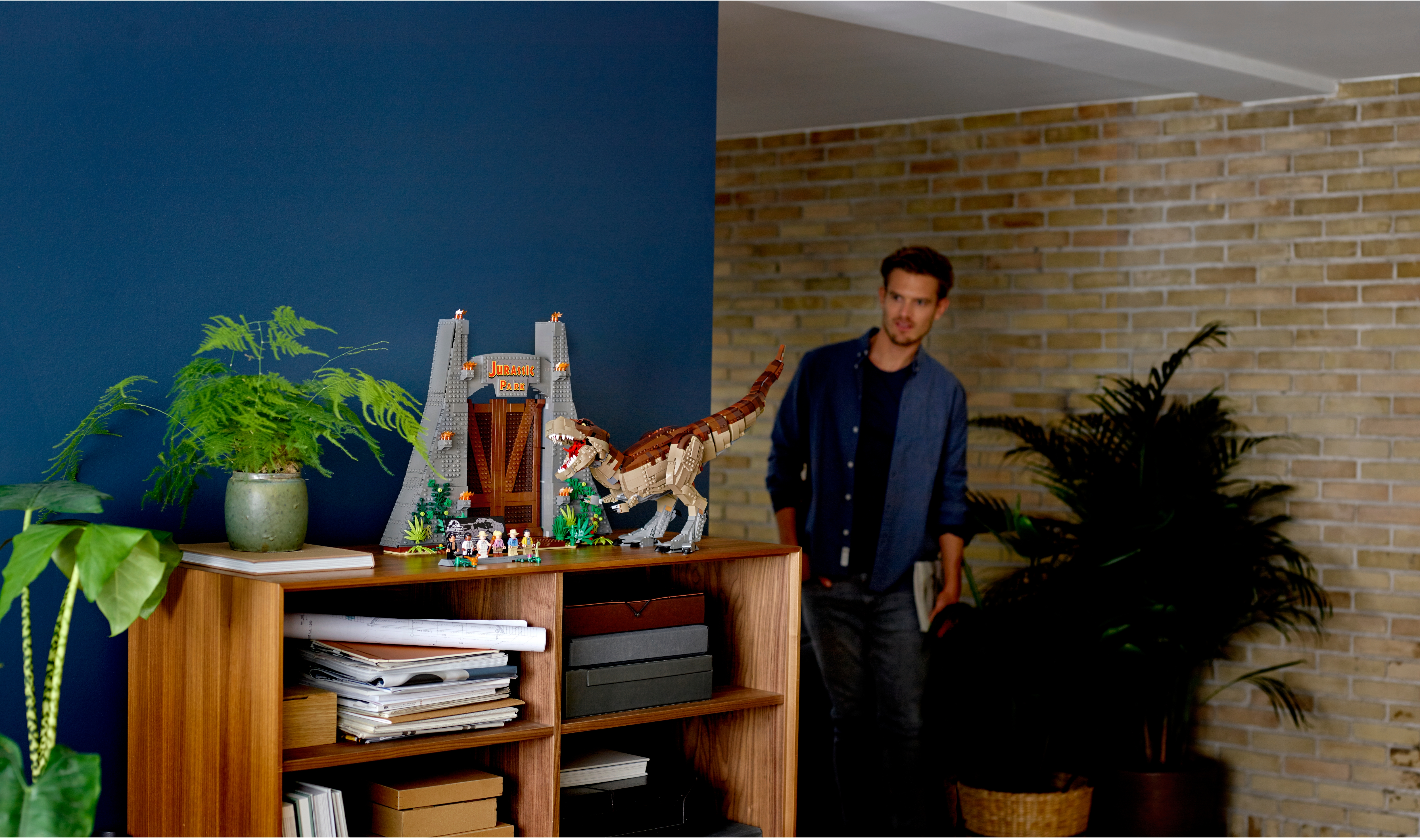 This dinosaur toy set includes 6 minifigures: John Hammond, Ian Malcolm, Ellie Sattler, Alan Grant, Ray Arnold and Dennis Nedry, plus a baby dinosaur figure. Brick-built LEGO® T. rex dinosaur toy features snapping jaws, posable head, arms, legs and tail. The brick-built LEGO® version of the original Jurassic Park's iconic gate has an opening function, jungle leaves and flame elements. The wall framing the gate features a buildable dinosaur nest with 2 cracked egg elements at the top and other brick-built scenes inspired by the movie, including: a bunker with a buildable bed for Ian Malcolm, flashlight and fire extinguisher, plus ladder and display case elements; power shed for scene with Ellie Sattler; John Hammond’s dining room with table and minifigure chair, plus ice cream, spoon and 3 cookie elements; Ray Arnold's control room with a buildable desk, 3 computers and a minifigure chair; scene with a buildable bathroom; scene for Dennis Nedry with a buildable mud slide and shaving cream can. This display toy model also includes a buildable minifigure display stand with T. rex facts plate. Accessory elements include John Hammond’s hat and cane, and Alan Grant’s hat and dinosaur claw. John Hammond, Ray Arnold and Dennis Nedry minifigures are new for June 2019. This collectible toy building set includes over 3,120 pieces and makes a great dinosaur gift for adults. Jurassic Park gate measures over 16” (42cm) high, 18” (48cm) wide and 5” (14cm) deep. T. rex dinosaur measures over 8” (22cm) high, 27” (69cm) long and 6” (17cm) wide.