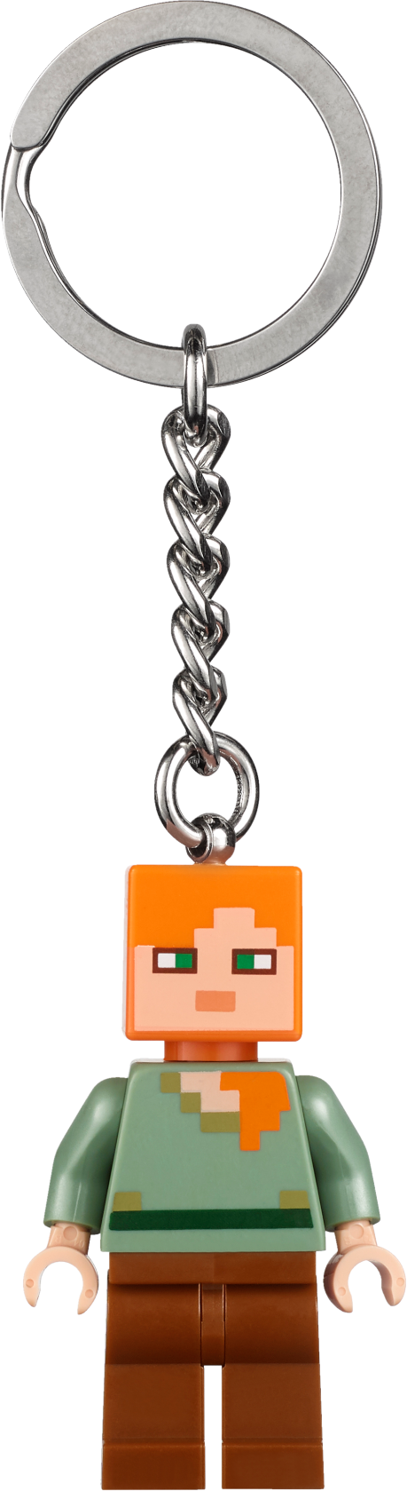 Put your keys in safe hands with this LEGO® Minecraft™ Alex Key Chain. Attach the Alex minifigure on a durable metal ring and chain to your keys or backpack and enjoy her company wherever you venture. Features a LEGO® Minecraft™ Alex minifigure attached to a durable metal ring and chain. Attach it to your keys or backpack. Minifigure is not detachable from metal chain.