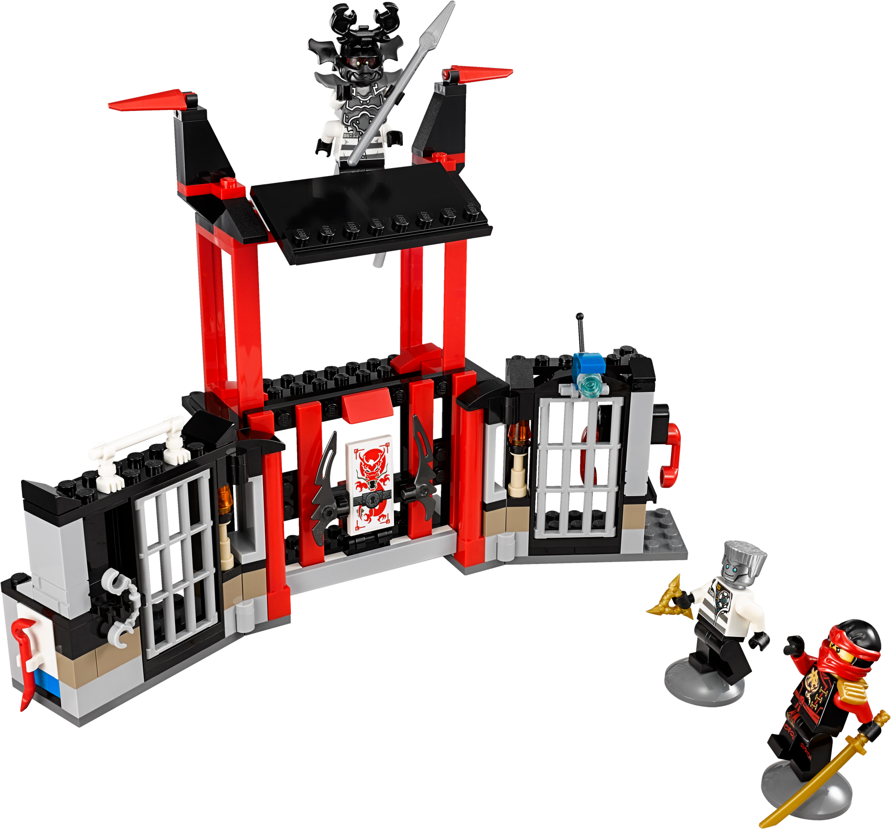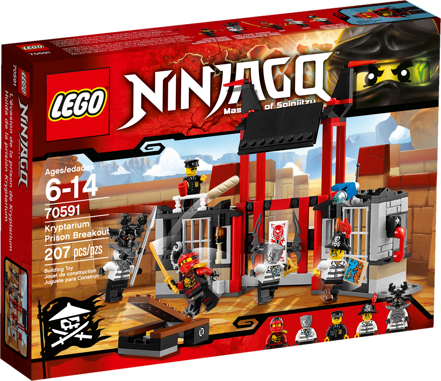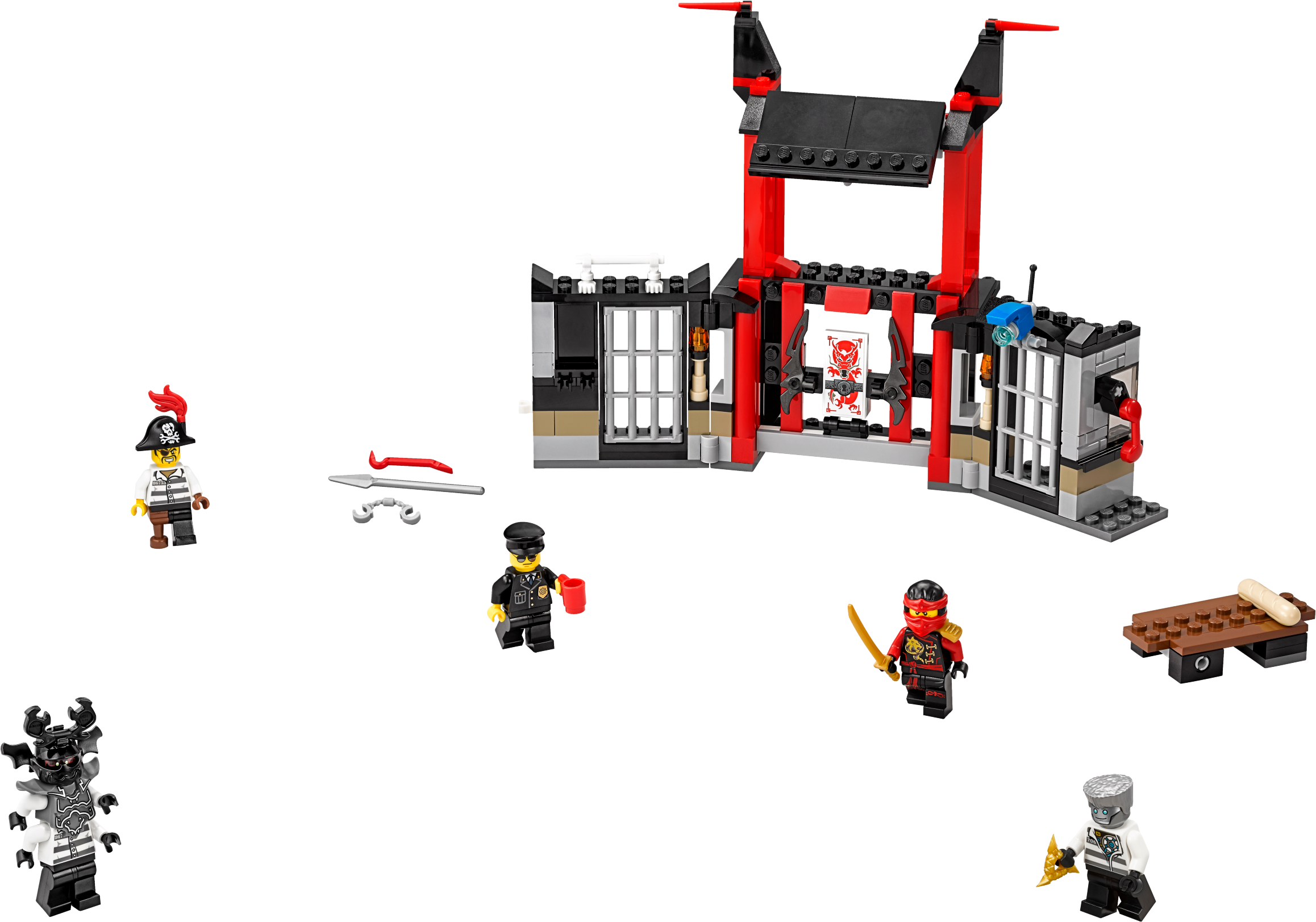 Rush to rescue Zane from Kryptarium Prison with Kai! Zane has been unfairly arrested and imprisoned along with real bad guys Captain Soto and the Giant Stone Warrior. Sneak past the prison guard and the security camera to enter Kryptarium Prison. Launch the bread roll with the table catapult to start a food fight—and look out for the hidden treasure map and shuriken! Overpower the 4-armed Giant Stone Warrior and then it's time make a quick escape. Turn the telephone to explode a cell door or shift the toilet to bust out through the other cell! Includes 5 minifigures: Zane in prison outfit, Kai in Skybound outfit, Giant Stone Warrior with 4 arms and prison outfit, Captain Soto with prison outfit and a prison guard. Kryptarium Prison Breakout features a drop-down main entrance gate, 2 prison cells (1 with an explode-function door that is activated by turning the red telephone), a toilet escape route, and a security camera-style element. Pull or push the toilet through the wall to create a hole for the Titanium Ninja to escape. Also includes a buildable table catapult with a bread roll element to launch and start a food fight, plus a hidden treasure map and shuriken weapon. Weapons include Kai's golden sword, 2 golden shurikens, plus a spear and a red crowbar attached to the back of the toilet. Accessory elements include the prison guard's mug and handcuffs. Recreate and role-play epic scenes from the NINJAGO™: Masters of Spinjitzu TV show. This set offers an age-appropriate building experience for ages 7-14. Kryptarium Prison Breakout measures over 5” (15cm) high, 9” (23cm) wide and 3” (9cm) deep.