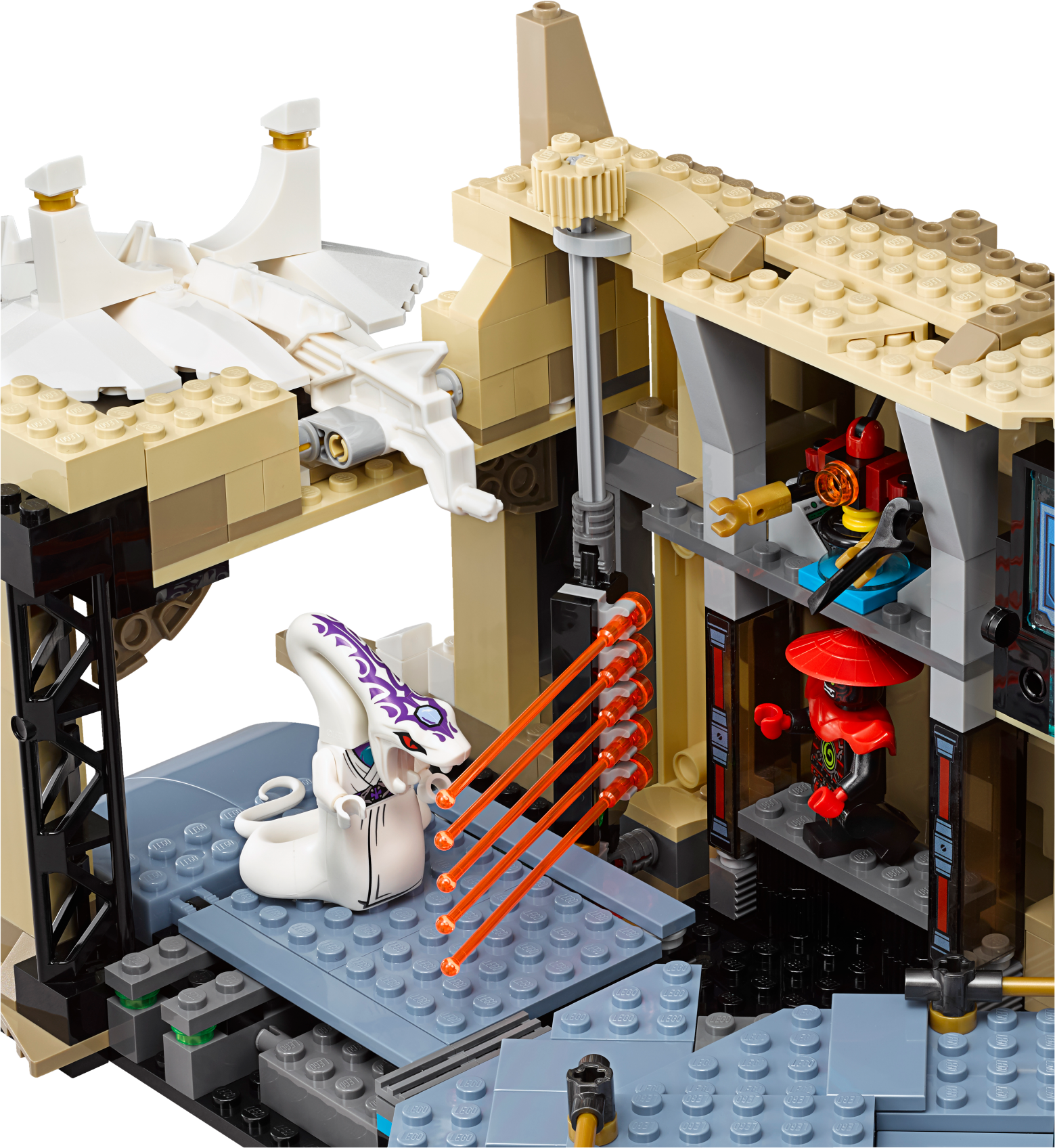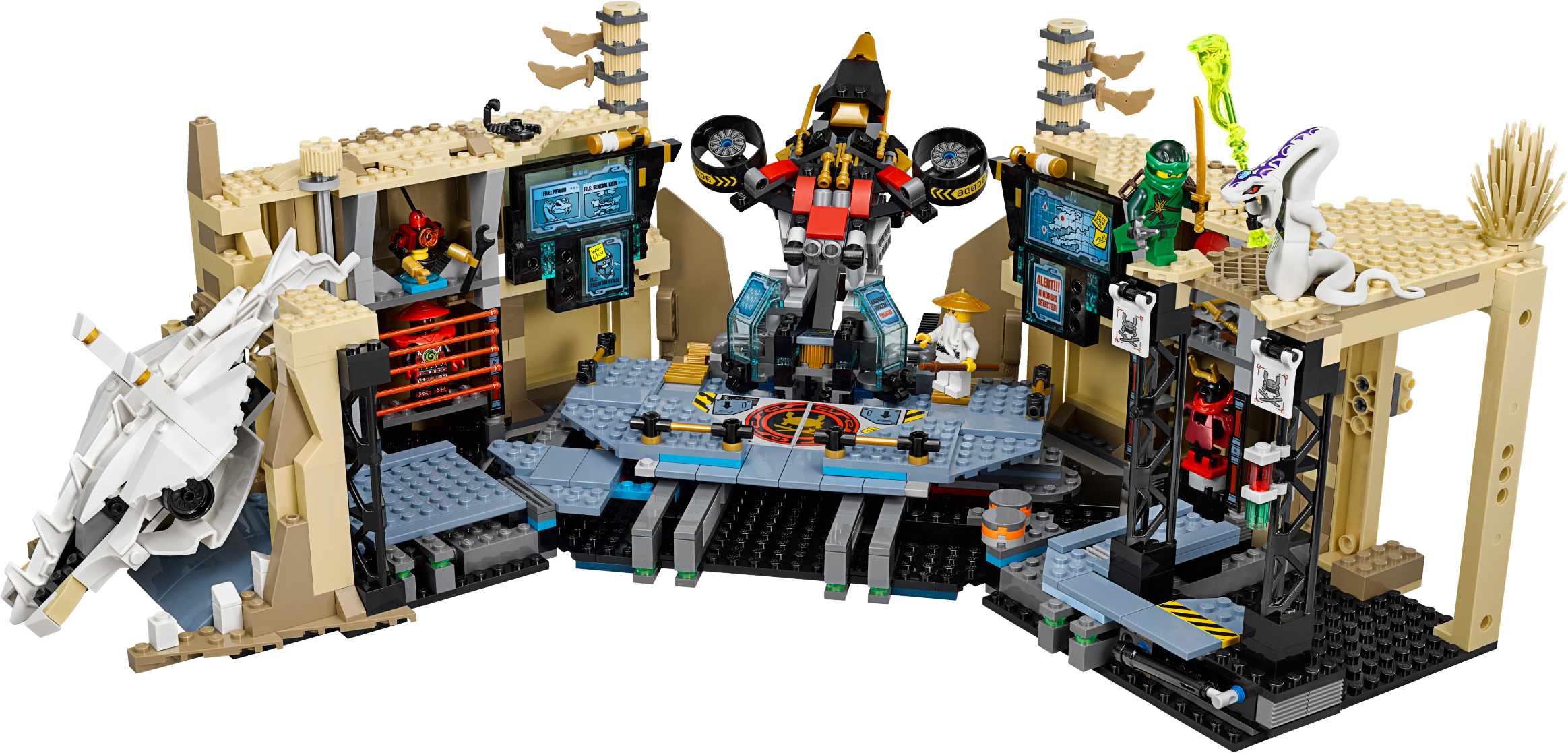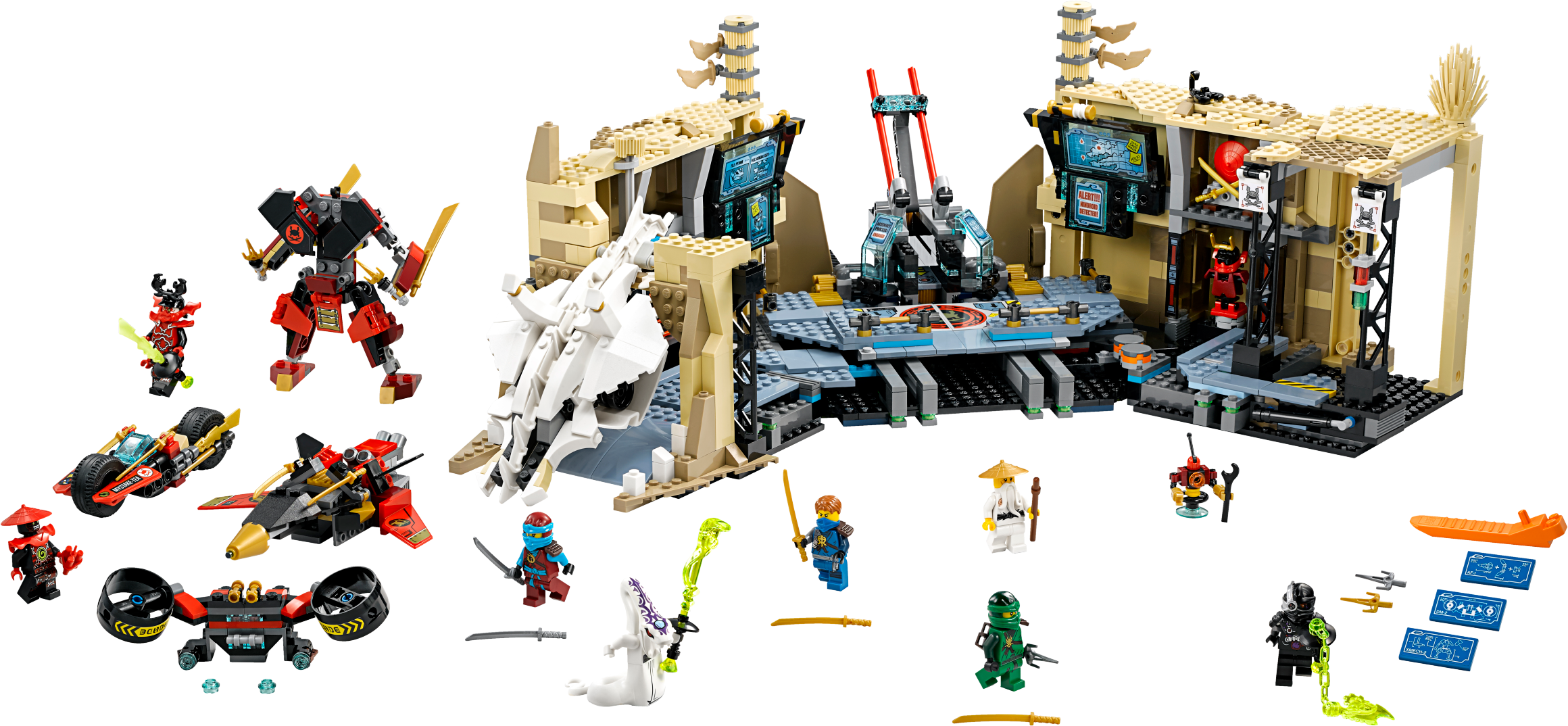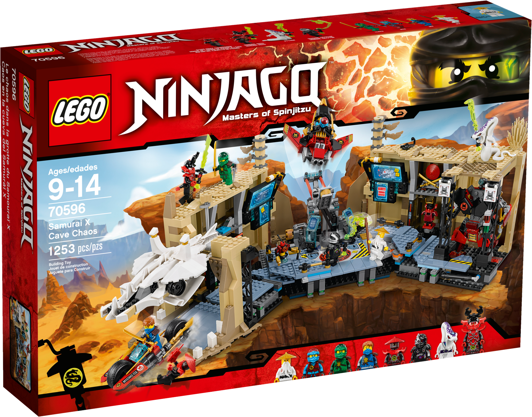 Gear up for battle at the ninja’s underground desert hideout! Build a jet plane at the hi-tech inventor launchpad, but beware—old enemies Pythor, General Kozu, a Stone Army Swordsman and General Cryptor are breaking in and trying to steal all the samurai vehicles! Attack with the Samurai X mech and trap the invaders in the laser prison. Then zoom off on the powerful Samurai X bike or in the awesome jet that you’ve built! Includes 8 minifigures: Nya, Lloyd, Jay, Master Wu, Pythor, General Kozu, a Stone Army Swordsman and General Cryptor. The Samurai X Cave features an opening skull entrance, inventor launchpad with 3 modules to assemble a jet (plus 2 extra modules to give either the Samurai X mech or jet a boost), laser prison with an opening ‘door’ of translucent laser-beam elements, functioning elevator for the minifigures, movable floor function, and a Samurai X bike, parking space and exit ramp. Press a brick button on the inventor launchpad and attach different modules to build a jet. Samurai X bike features a minifigure seat, rubber tires, 2 detachable golden swords, and golden ninja blade details. Samurai X mech has a minifigure cockpit, posable joints and arms with large golden blades. Weapons include Nya’s 2 silver katanas, Lloyd’s golden katana and silver sai, Jay’s 2 golden katanas, Nya’s golden swords, General Cryptor’s Techno Blade, Pythor’s Snake Staff, General Kozu’s Element al Blade and 2 extra Samurai X golden katanas. Accessory elements include Nya’s samurai armor and hat. Recreate and role-play epic scenes from the NINJAGO™: Masters of Spinjitzu TV show. This set offers an age-appropriate building experience for ages 9-14. Samurai X Cave measures over 7” (19cm) high, 21” (55cm) wide and 14” (37cm) deep. Samurai X bike measures over 1” (3cm) high, 4” (11cm) long and 1” (4cm) wide. Samurai X mech measures over 4” (11cm) high, 1” (4cm) long and 3” (9cm) wide. Buildable jet measures over 1” (3cm) high, 5” (14cm) long and 4” (12cm) wide.