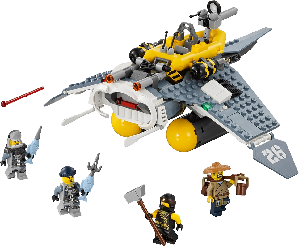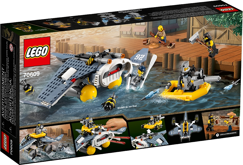 Help Cole save Shen-Li in this cool THE LEGO® NINJAGO® MOVIE™ set, featuring the Manta Ray Bomber with 2 spring-loaded shooters, 2 bomb elements and a detachable boat. Includes 4 minifigures with assorted weapons and accessories to ramp up the role-play action possibilities. Includes 4 minifigures: Cole, Shen-Li, Great White and Shark Army Gunner. Manta Ray Bomber features 2 spring-loaded shooters, 2 bomb elements and a detachable boat with 2 minifigure seats. Weapons include Cole’s hammer, Shen-Li’s carrying pole with 2 buckets, Great White's fish drill and Shark Army Gunner's fish sai. Recreate and role-play exciting THE LEGO® NINJAGO® MOVIE™ scenes. Manta Ray Bomber measures over 4” (12cm) high, 9” (25cm) long and 12” (31cm) wide. Detachable boatmeasures over 1” (5cm) high, 3” (10cm) long and 3” (9cm) wide.