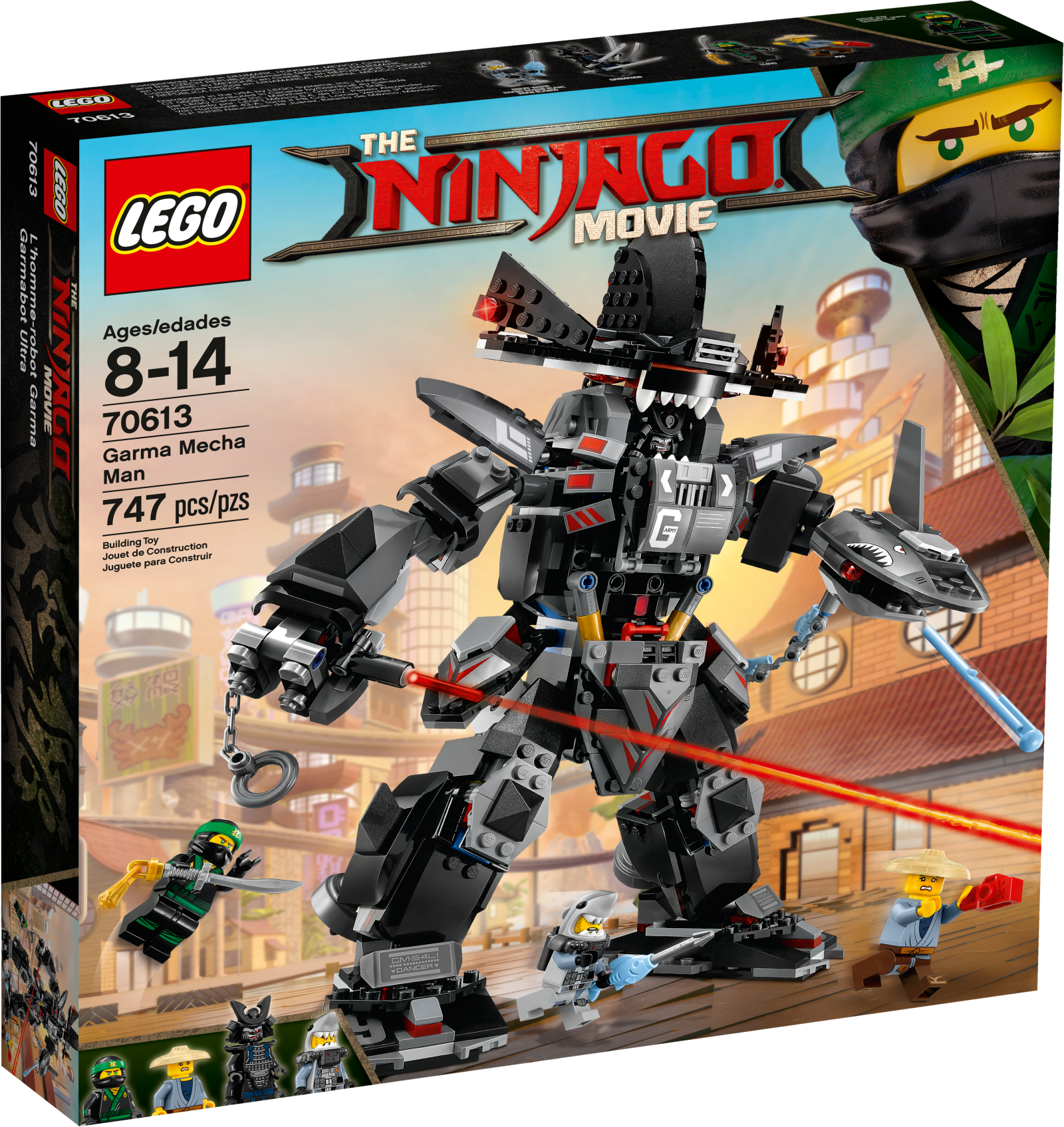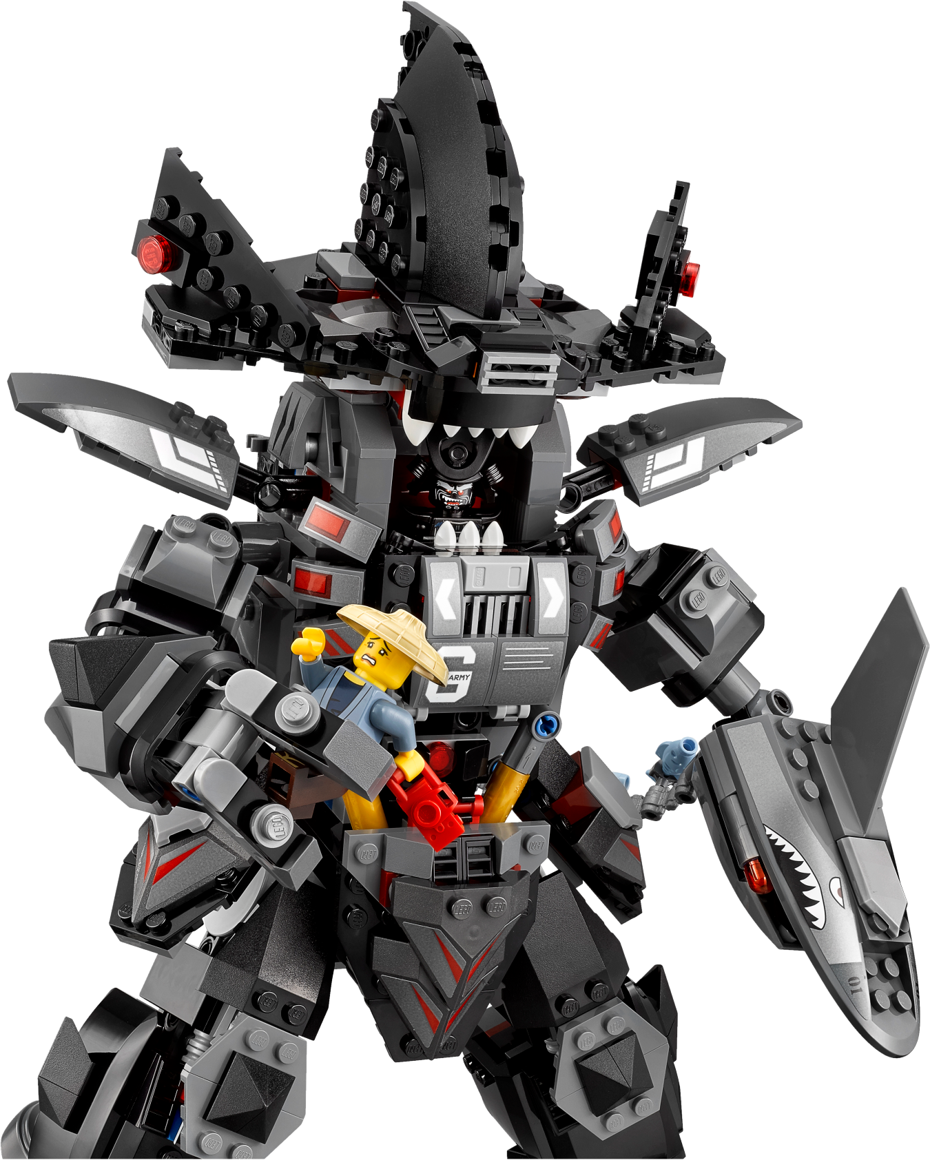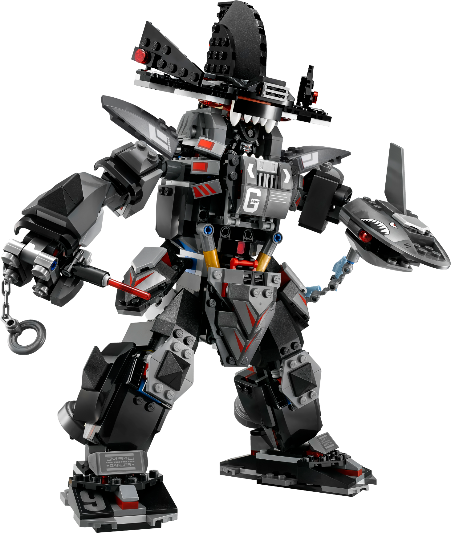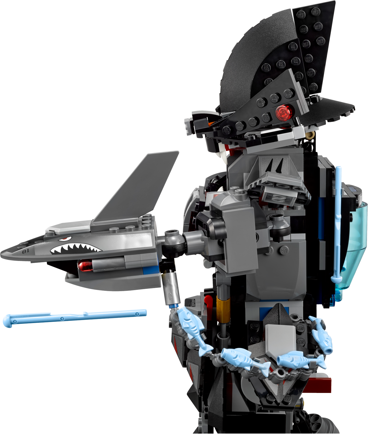 Help Lloyd protect civilian Pat from attack by Garma Mecha Man with this awesome THE LEGO® NINJAGO® MOVIE™ set. This huge and highly posable mech features an opening minifigure cockpit for Garmadon, spring-loaded shark blaster, ammo belt and a fish tank. Includes 4 minifigures with assorted weapons—including Garmadon’s laser-style pointer and Lloyd’s tasseled sword—to bolster the battle role-play possibilities. Includes 4 minifigures: Garmadon, Great White, Lloyd and Pat. Garma Mecha Man features an opening minifigure cockpit, posable head, arms and legs, spring-loaded shark blaster, ammo belt with shark-shaped ammo elements, and an opening translucent-blue fish tank with mini-shark elements. Weapons include Garmadon's laser-style pointer and 4 katanas, Great White's fish spear and Lloyd's tasseled sword. Also includes Pat's camera. Recreate and role-play exciting THE LEGO® NINJAGO® MOVIE™ scenes. Garma Mecha Man measures over 11” (30cm) high, 5” (14cm) long and 9” (24cm) wide.