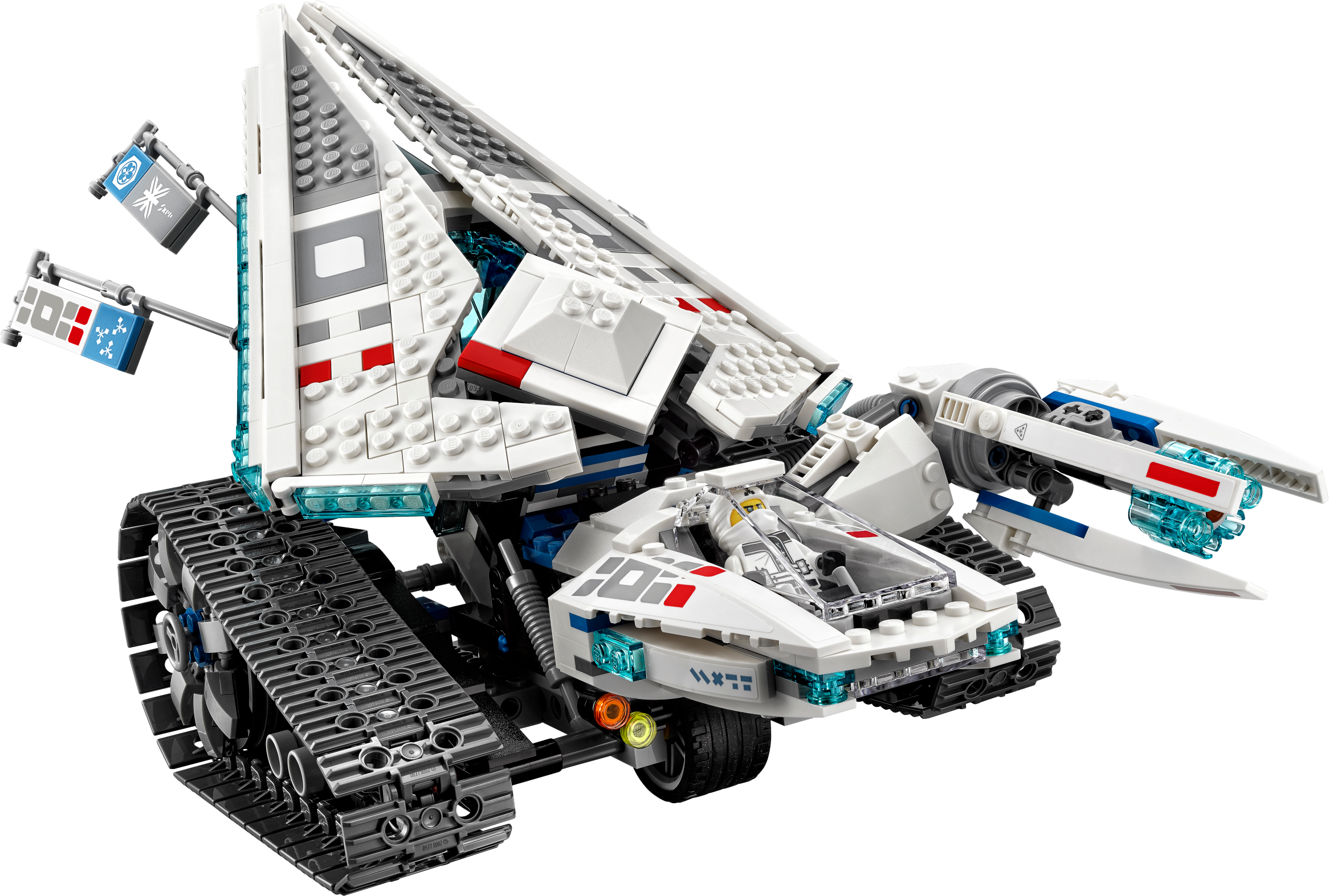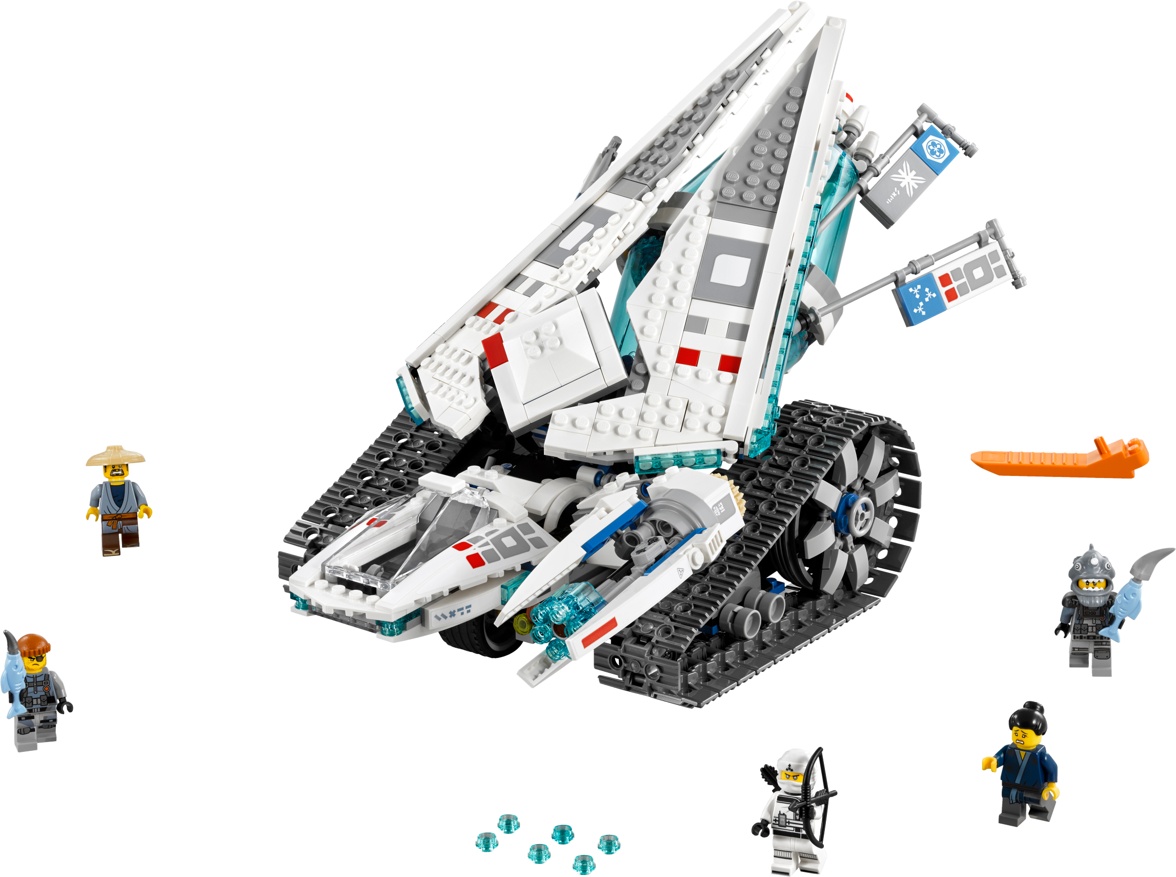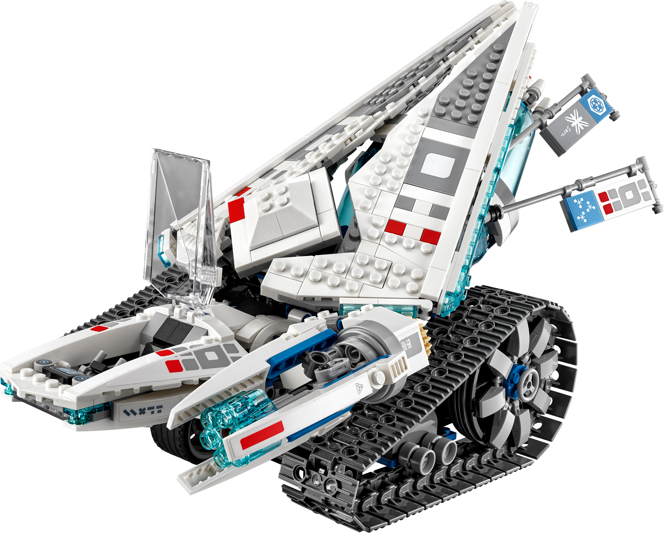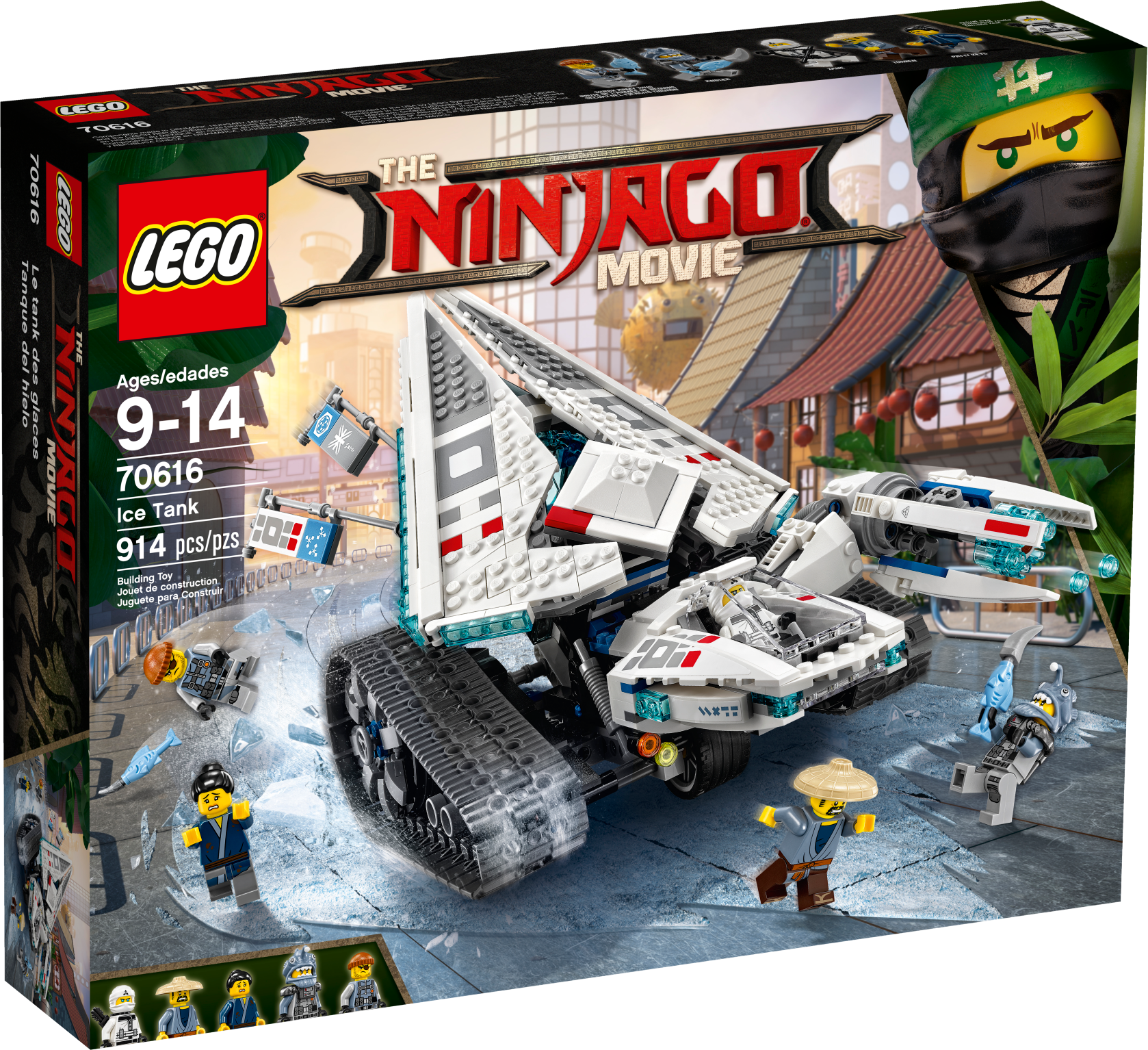 Help Zane save Patty Keys and Torben from the shark soldiers with this action-packed THE LEGO® NINJAGO® MOVIE™ Ice Tank set. This cool vehicle features an opening minifigure cockpit, big tracks, ice cannon with 6-stud rapid shooter, and a rotating ice container. The set also includes 5 minifigures with assorted weapons—including Zane’s bow and arrow and Shark Army Thug’s fish spike dagger—to add to the exciting role-play possibilities. Includes 5 minifigures: Zane, Shark Army Thug, Angler, Patty Keys and Torben. Ice Tank features an opening minifigure cockpit, big tracks, ice cannon with 6-stud rapid shooter and a rotating translucent-blue ice container with extra ice ammo elements for the rapid shooter. Drive the tank to make the ice container spin. Weapons include Zane's bow and arrow, Shark Army Thug's fish spike dagger and Angler's bladed fish sword. Accessory elements include Zane's quiver and Angler's scuba diving tank. Recreate and role-play exciting THE LEGO® NINJAGO® MOVIE™ scenes. Ice Tank measures over 8” (21cm) high, 12” (31cm) long and 9” (23cm) wide.