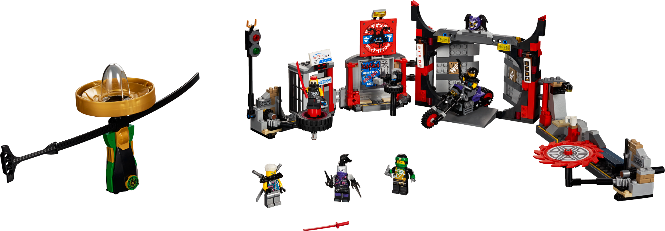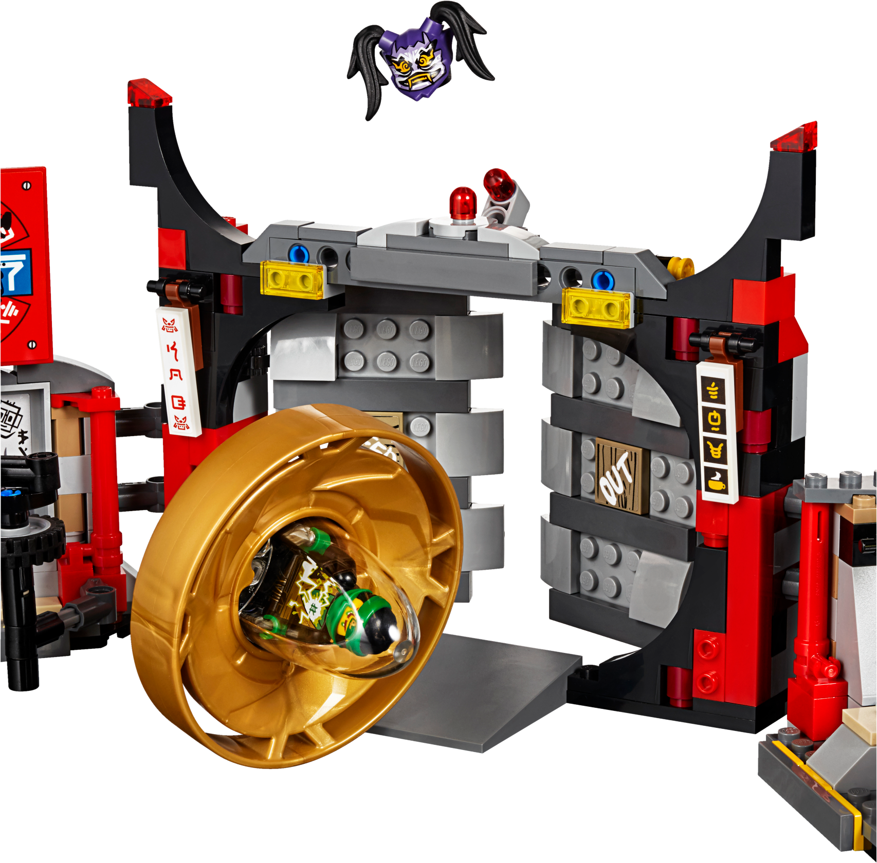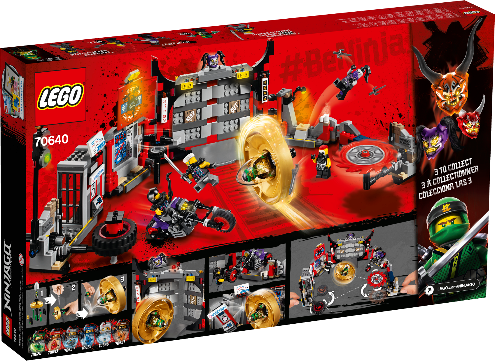 Crash into the S.O.G. Headquarters with the Lloyd Spinjitzu spinner and claim the Oni Mask of Hatred, with this action-packed LEGO® NINJAGO® set. The dojo features spinning weapons, movable sides and an Oni Bike to attack the spinner. Unleash the spinner to knock over rivals or the ATM and to smash through the dojo entrance to release the Oni Mask of Hatred element. This building toy also has 5 minifigures, including Zane as his undercover persona, Snake Jaguar.