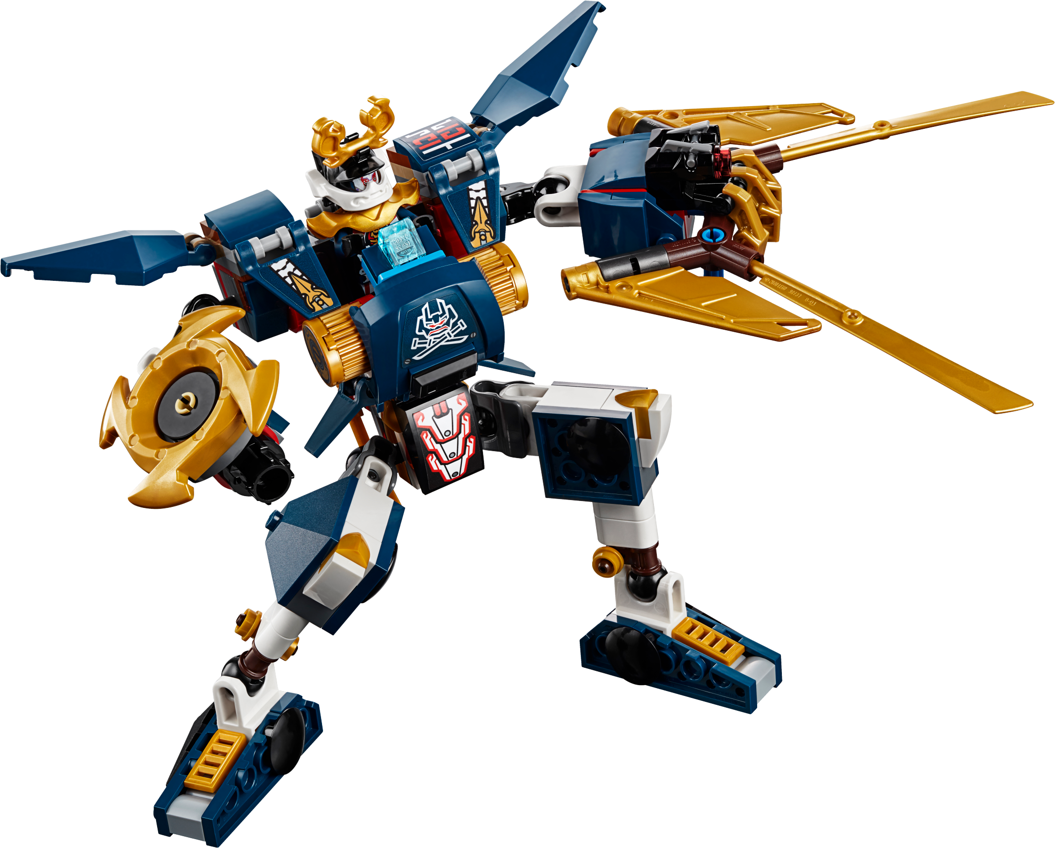 Samurai X Mech features an opening minifigure cockpit, posable arms and legs, gripping hands, dual stud shooter, spinning blade and a detachable Samurai X blade.