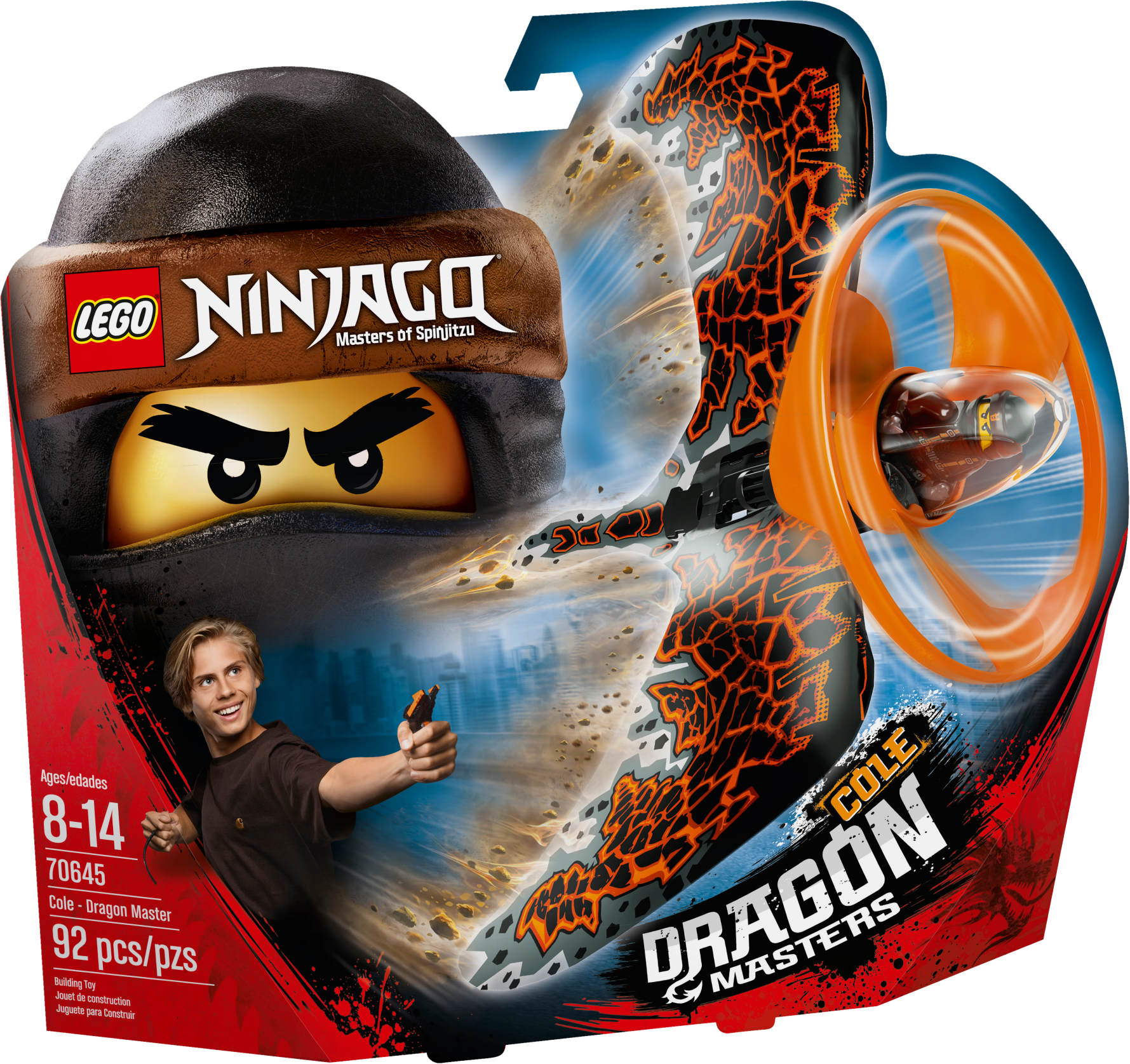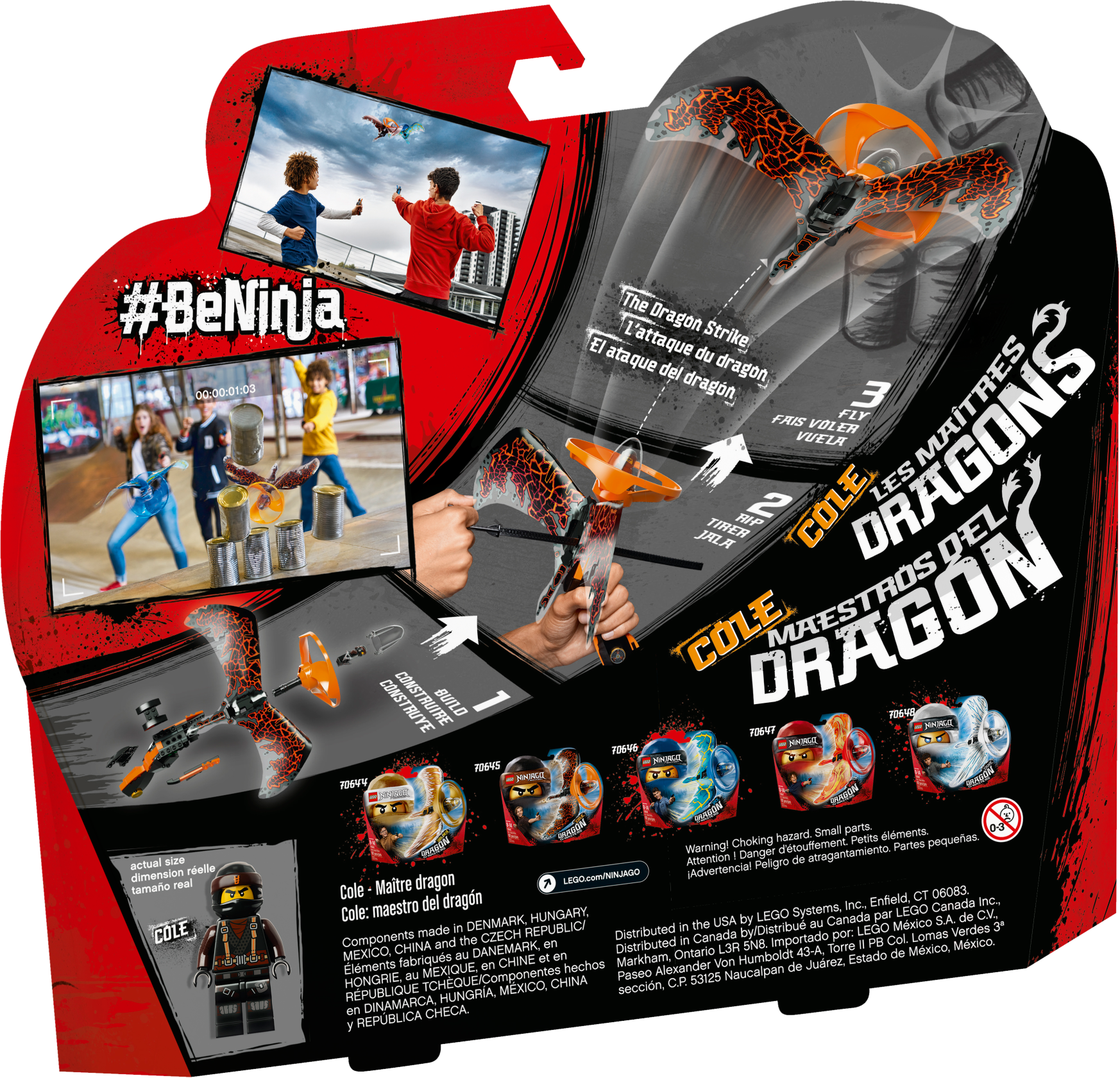 Learn how to master the dragons with the LEGO® NINJAGO® 70645 Cole - Dragon Master flyer, featuring a buildable LEGO brick handle, minifigure capsule, blade element, foil dragon wings and rip cord. Perform solo tricks, compete against friends, and use your environment to create countless cool ninja challenges. This LEGO NINJAGO toy includes a Cole minifigure. Includes a LEGO® NINJAGO Cole minifigure. Features a buildable LEGO® brick handle, minifigure capsule, blade element, foil dragon wings, rip cord and a 2x2 round LEGO tile with Cole logo. Perform The Dragon Strike, The Dragon Flip, The Dragon Nest, The Eye of The Dragon, The Nosediving Dragon and other masterful moves. Compete against your friends in The Dragon Duel, Dragon Darts, The Flight of the Dragon, The Dragon Switch and The Dragon Hunter. Use your environment to create your own fantastic flyer challenges. Go online for even more Dragon Masters tricks and inspiring videos. Add 70644 Golden Dragon Master, 70646 Jay - Dragon Master, 70647 Kai - Dragon Master and 70648 Zane - Dragon Master for even more aerial ninja action. Flyer (without rip cord) measures over 7” (19cm) high, 8” (22cm) wide and 6” (17cm) deep.